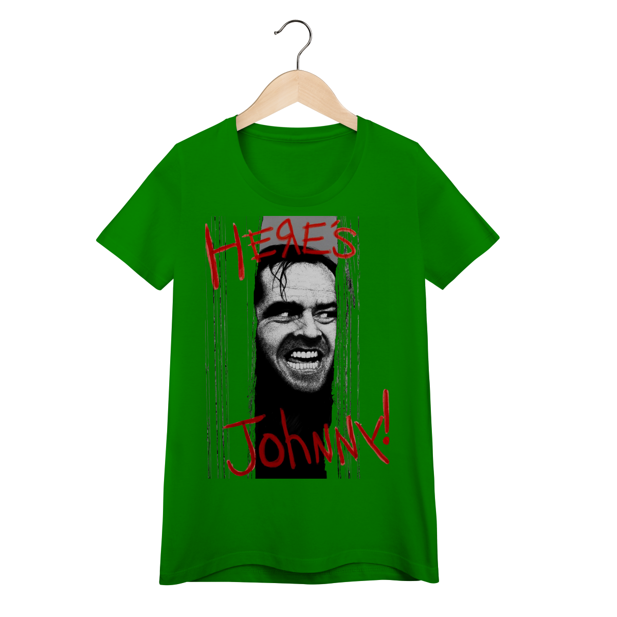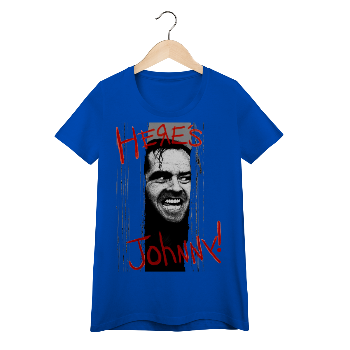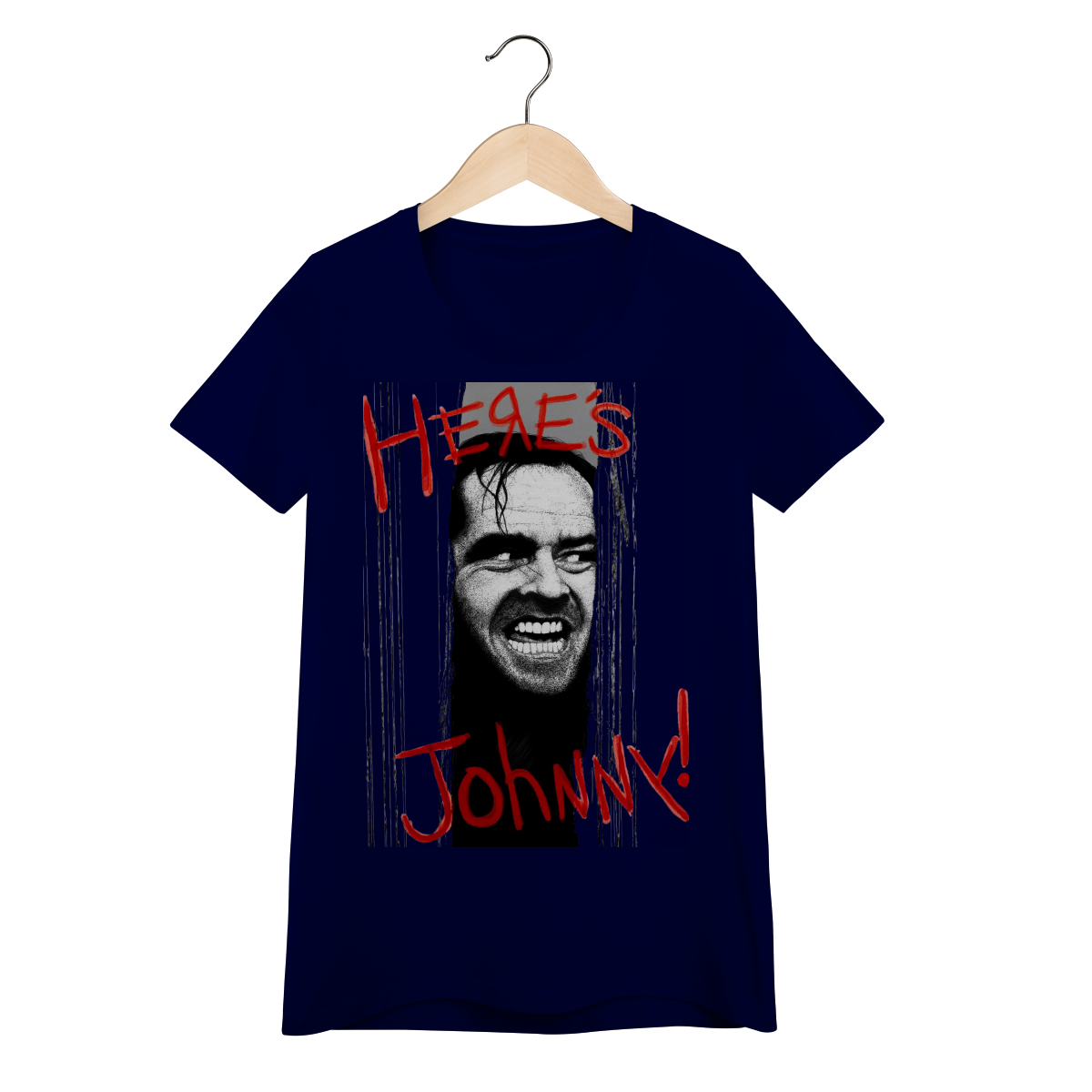 Reviva uma das cenas mais icônicas do cinema de terror com esta camiseta inspirada no clássico "O Iluminado" (1980), dirigido por Stanley Kubrick. Estampada com a imagem assustadora de Jack Nicholson (Jack Torrance) quebrando a porta e a frase lendária "Here's Johnny!", essa Baby Long