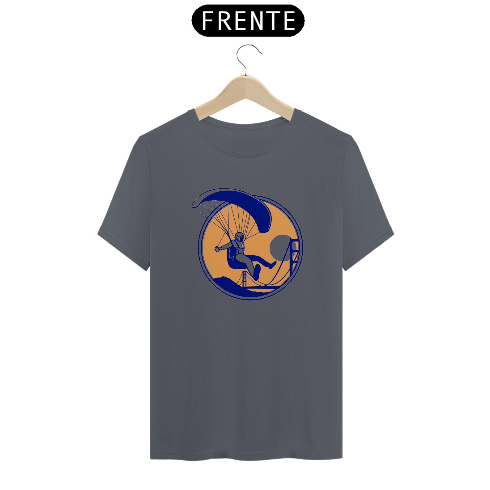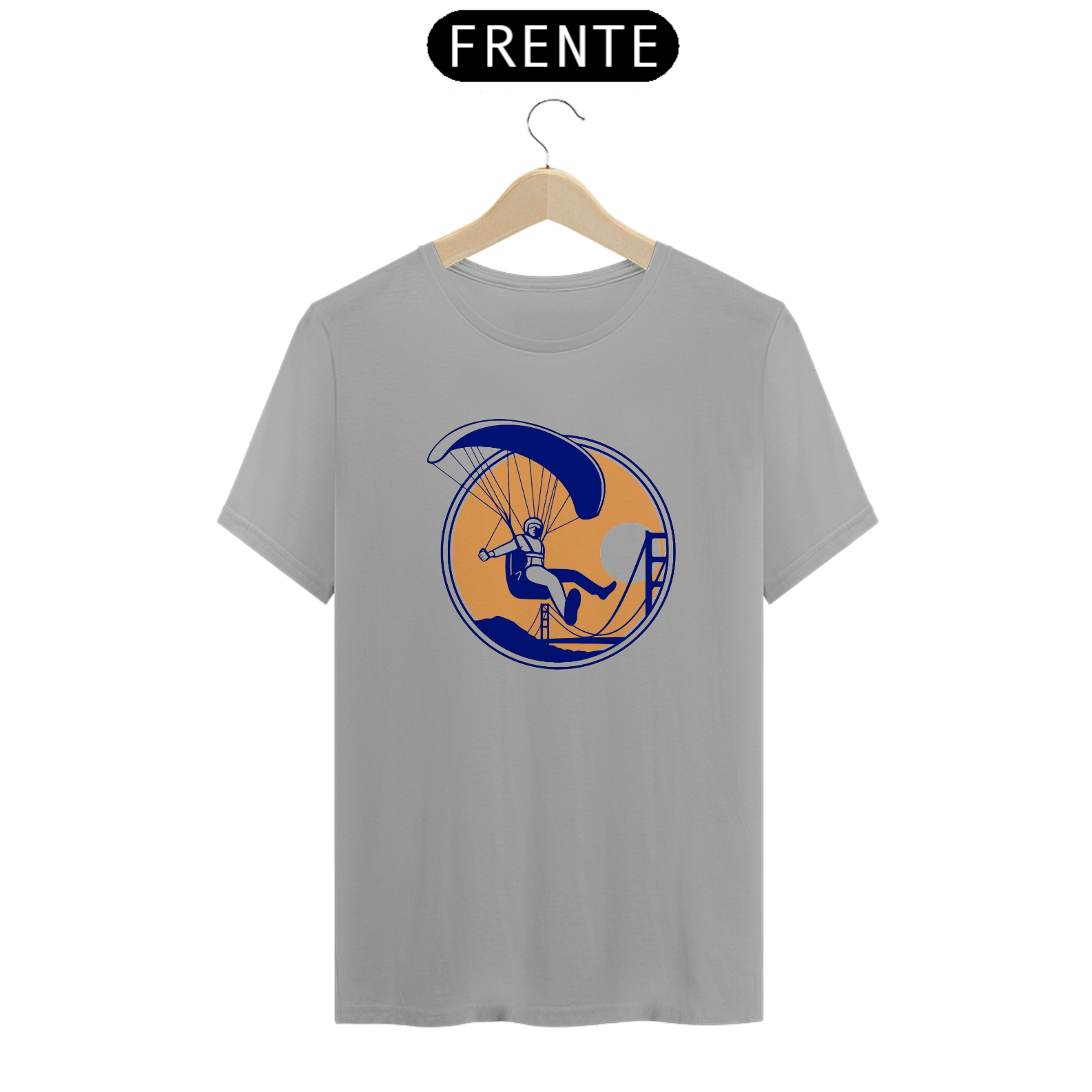 Acelere com a camiseta "Alta Performance". Este design dinâmico mostra um parapente em movimento rápido, capturando a intensidade e a adrenalina do voo de alta performance. Confeccionada com tecido resistente e confortável, é perfeita para os apaixonados por esportes aéreos e aventuras radicais.
