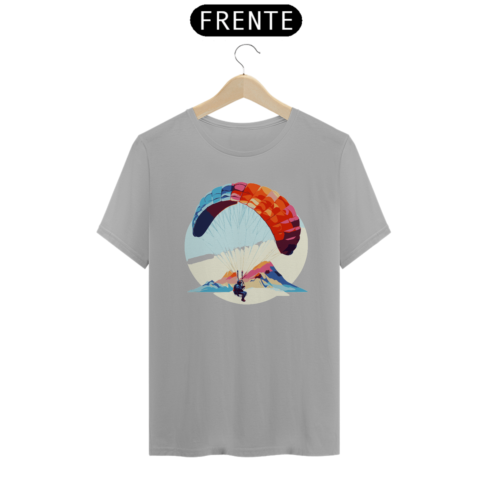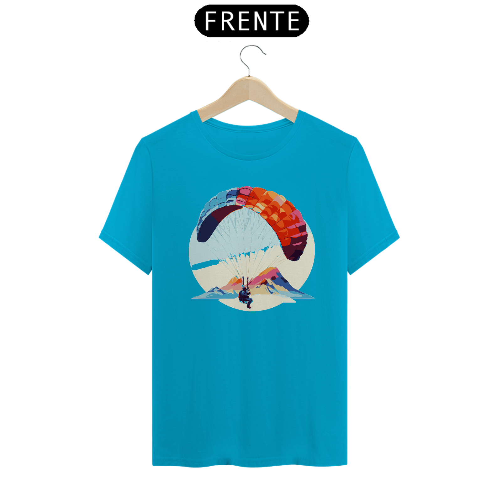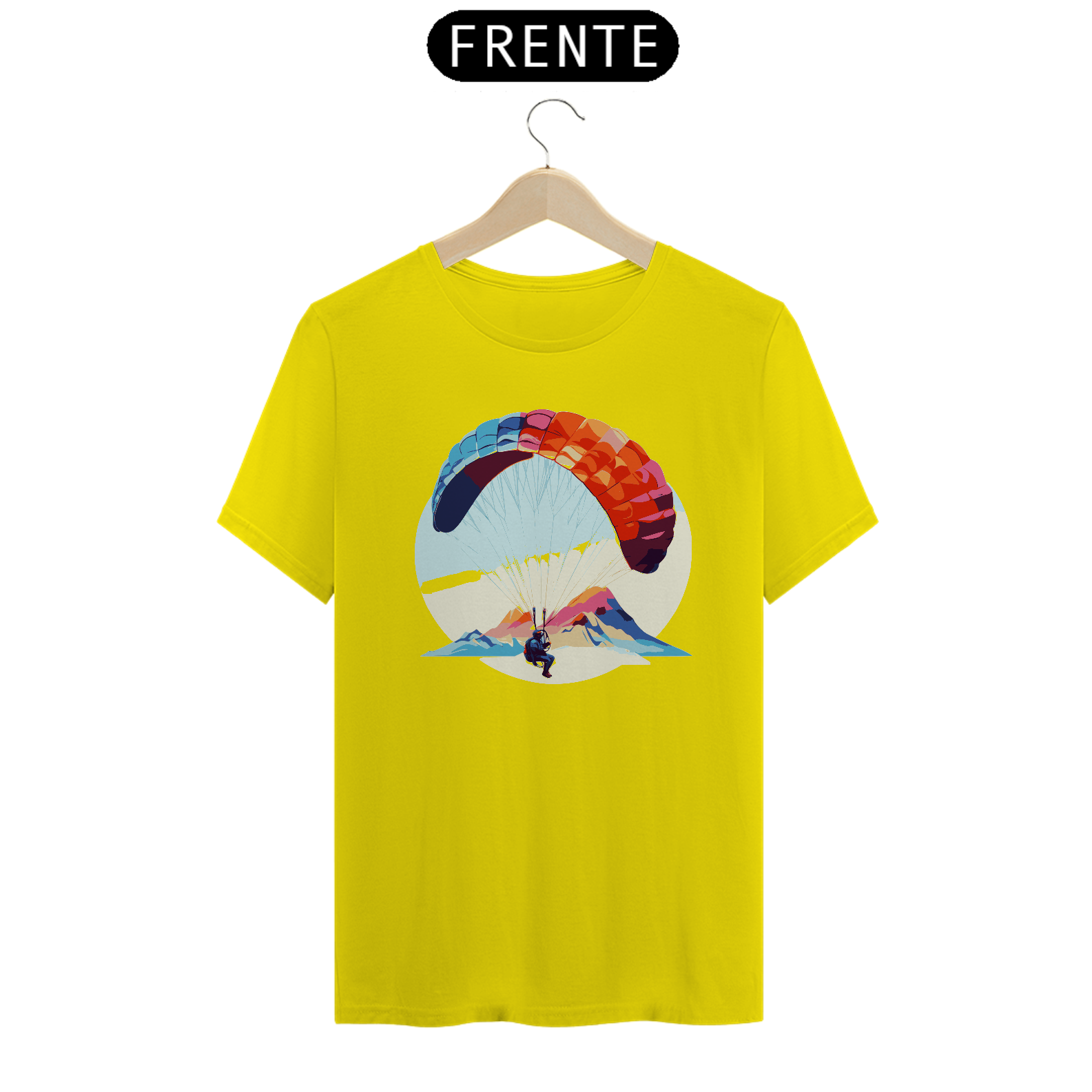 Desfrute da leveza e da tranquilidade do voo com a camiseta "Brisa do Voo". Este design delicado mostra um parapente flutuando suavemente ao vento, simbolizando a paz e a serenidade do parapente. Confeccionada em algodão macio, é perfeita para relaxar e sonhar.