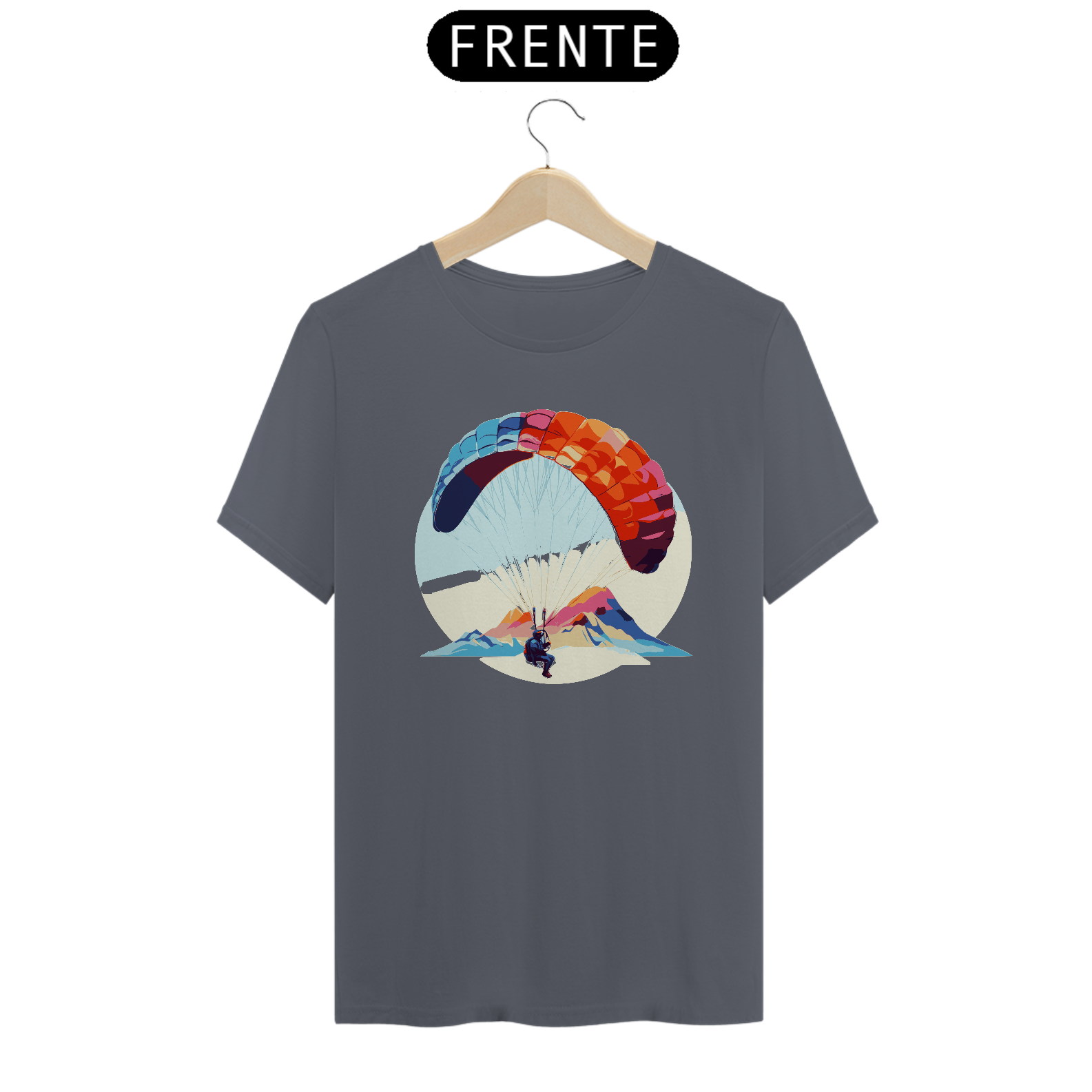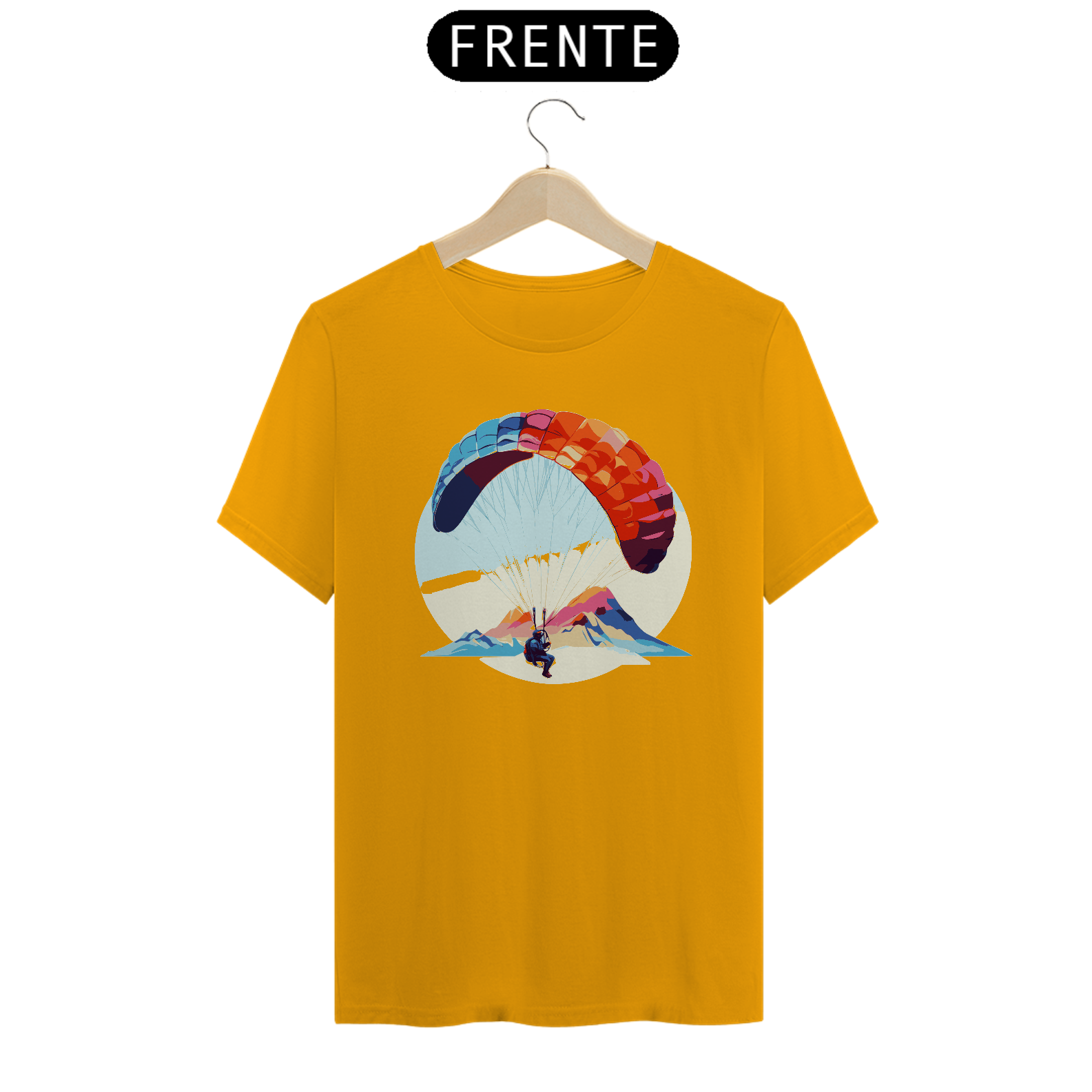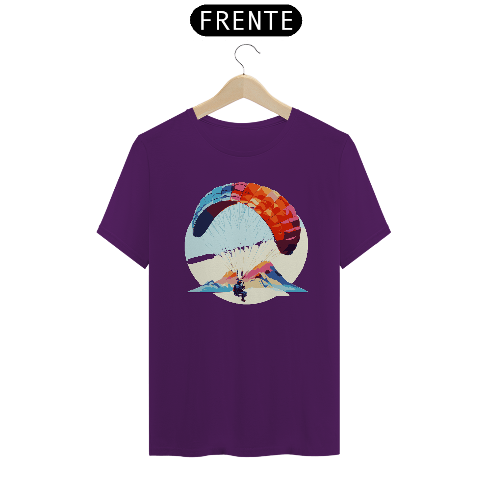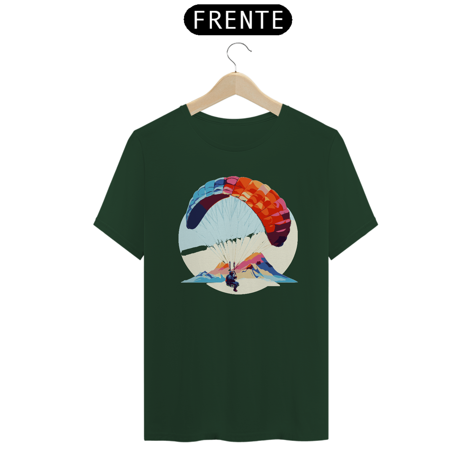 Desfrute da leveza e da tranquilidade do voo com a camiseta "Brisa do Voo". Este design delicado mostra um parapente flutuando suavemente ao vento, simbolizando a paz e a serenidade do parapente. Confeccionada em algodão macio, é perfeita para relaxar e sonhar.