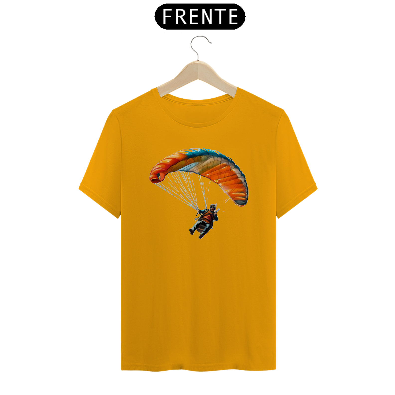 Sinta a vastidão do deserto com a camiseta "Explorador do Deserto". Este design apresenta um parapente voando sobre dunas de areia douradas, capturando a beleza austera e a aventura do deserto. Ideal para os aventureiros, oferece um toque confortável e um visual impressionante.