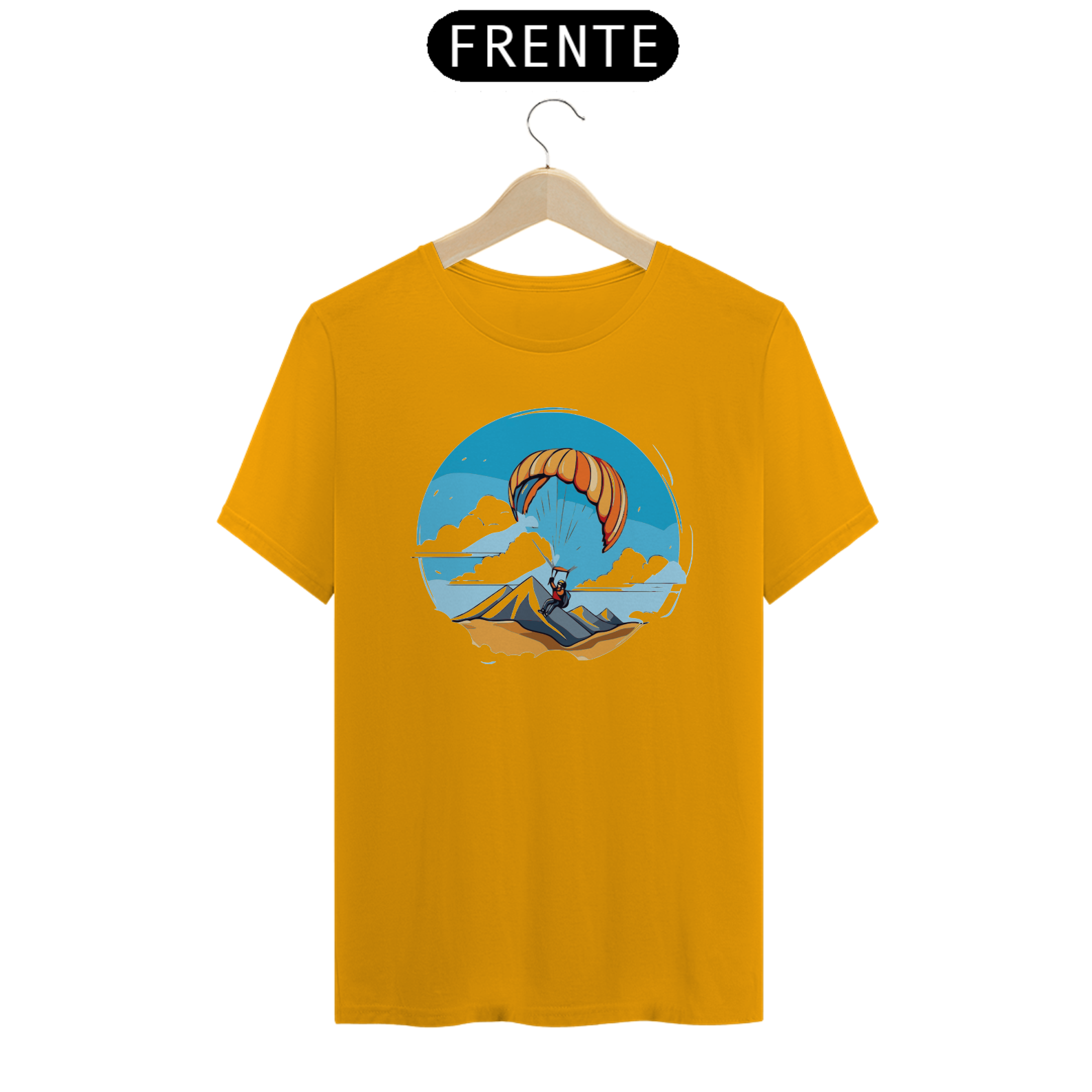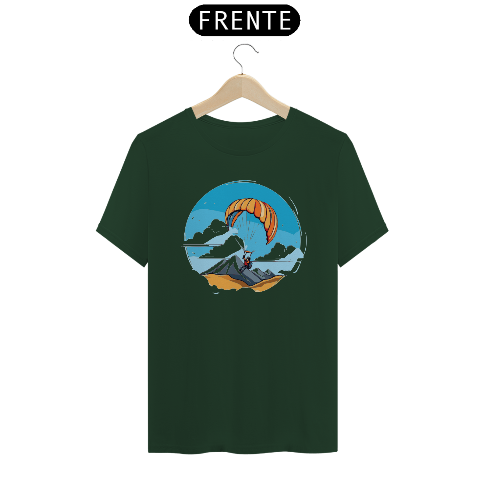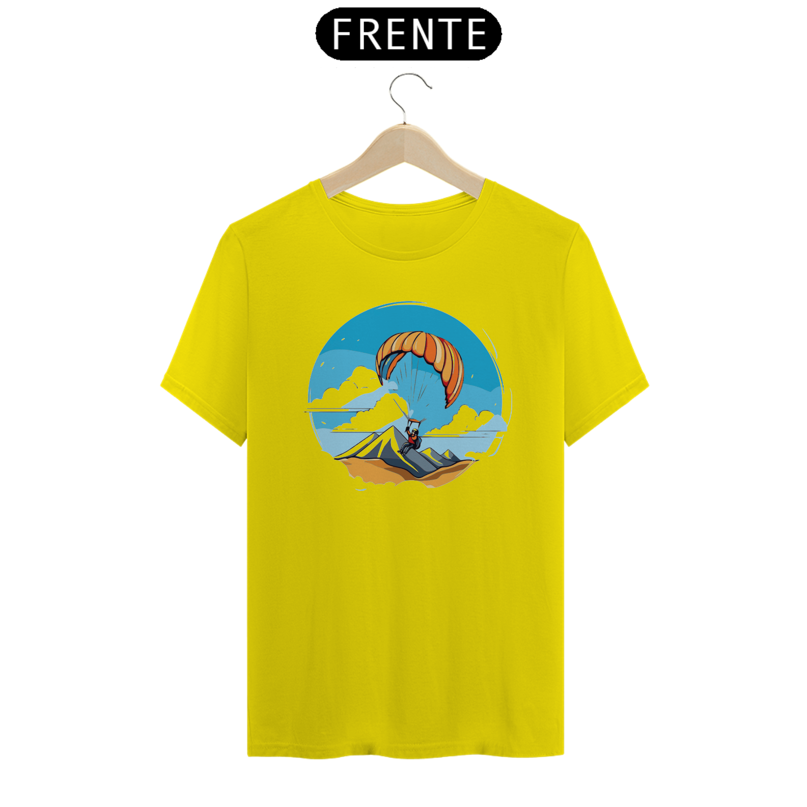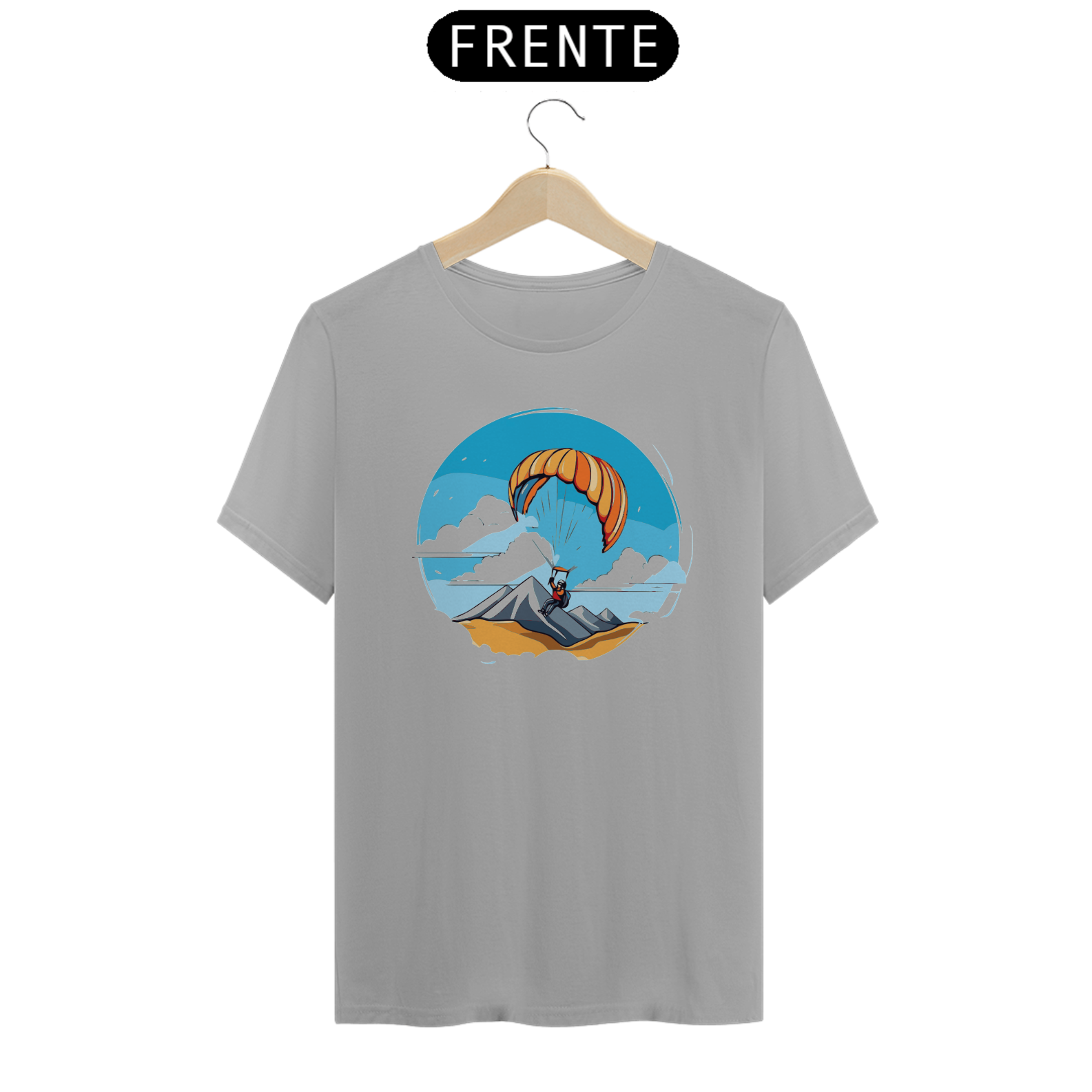 Experimente a sensação de liberdade com a camiseta "Libertação Aérea". Este design mostra um parapente em pleno voo, representando a liberdade de explorar o céu vasto e sem limites. Feita com tecido de alta qualidade, oferece conforto e estilo para os entusiastas de aventuras aéreas.