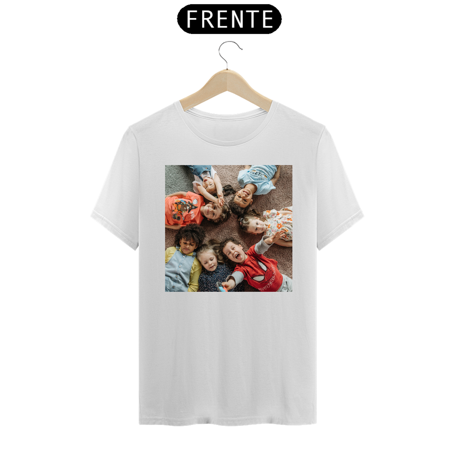 Nesse processo, você consegue ver como vai ficar a foto na camiseta em diferentes cores antes da compra.