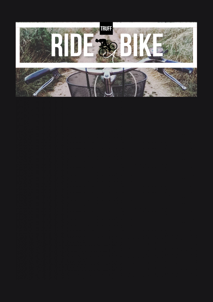 Camiseta Truff com imagem de bicicleta antiga na estrada, estimulando a prática de exercícios na natureza.