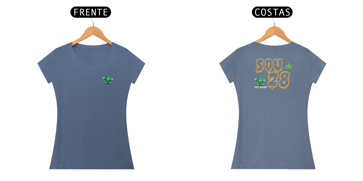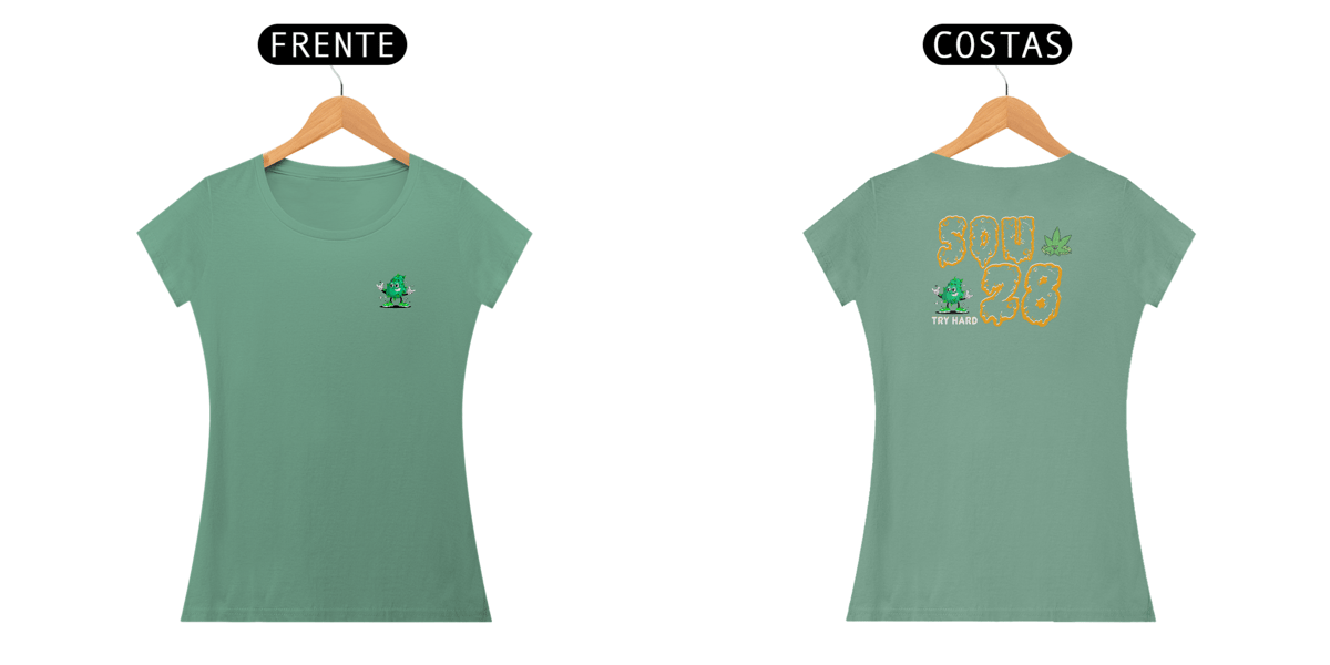 Camiseta Feminina Try Hard - Modelo Baby Long Estonada SOU 28 Weed Edition