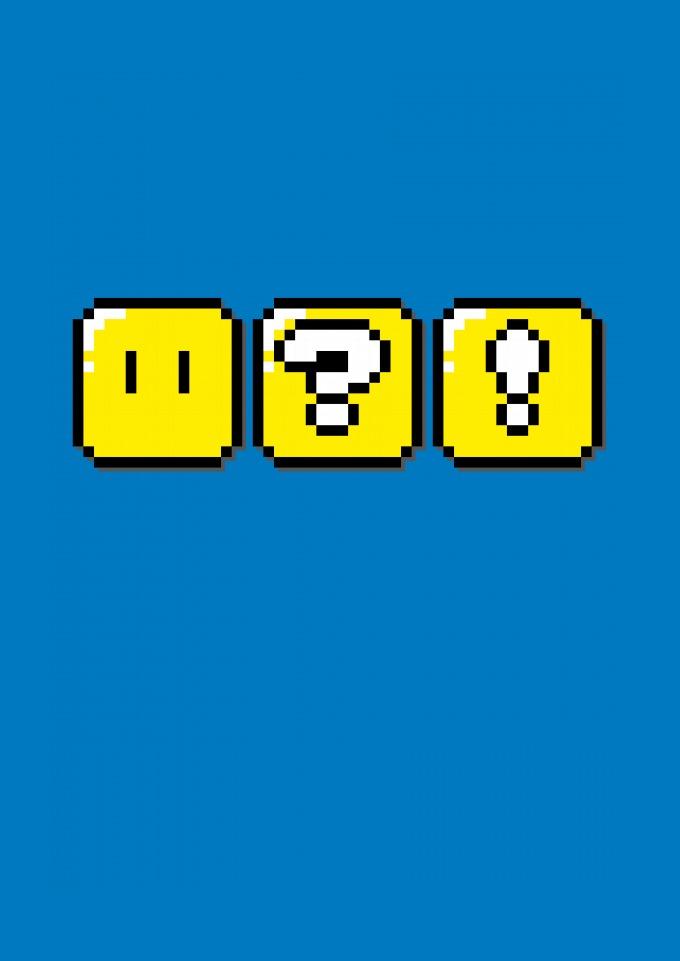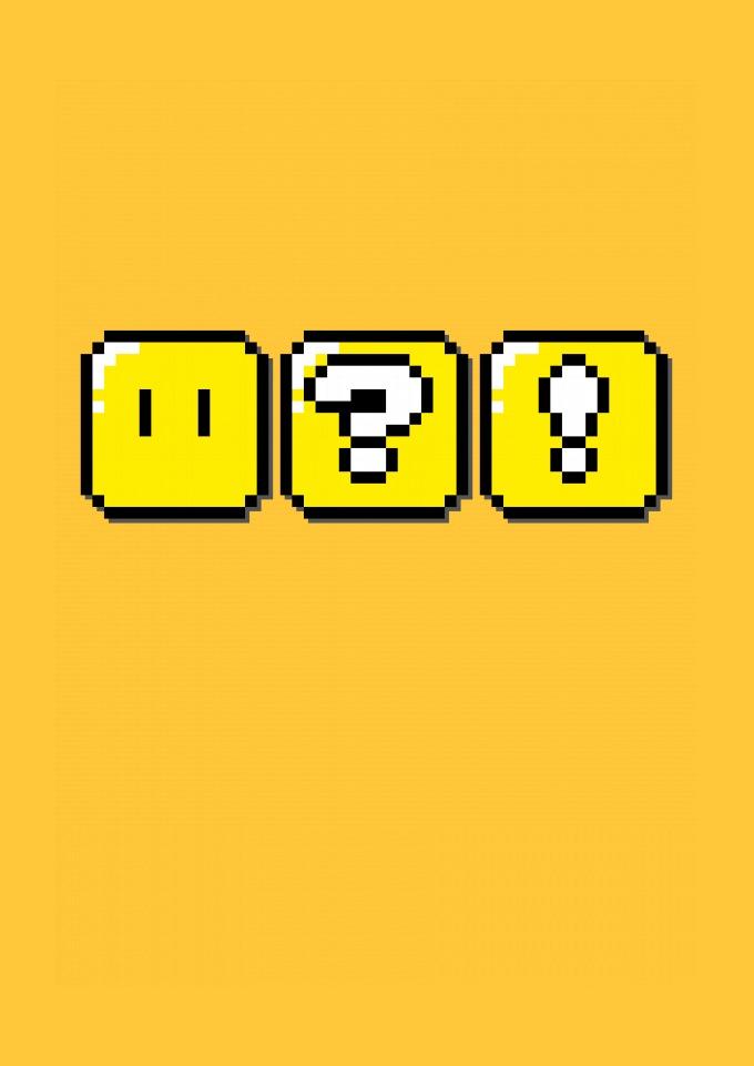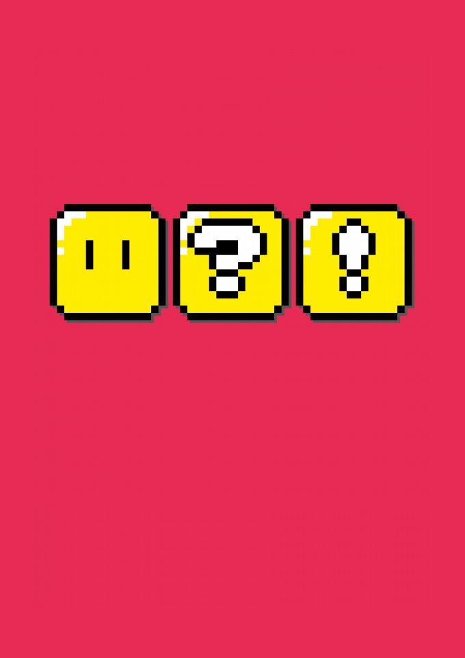 Estampa com caixas do jogo Super Mário.