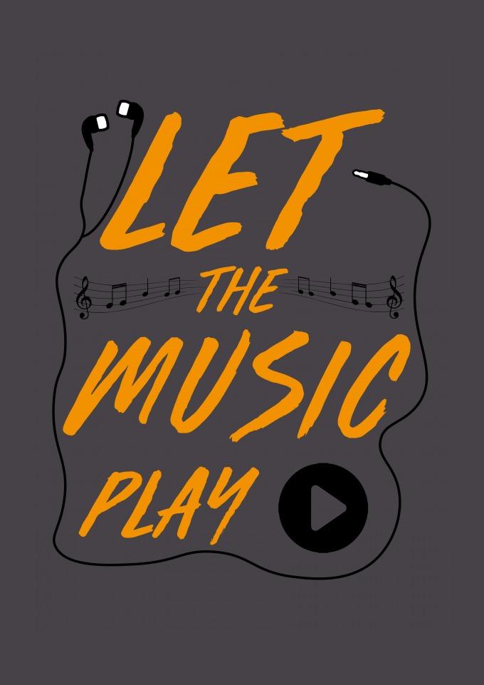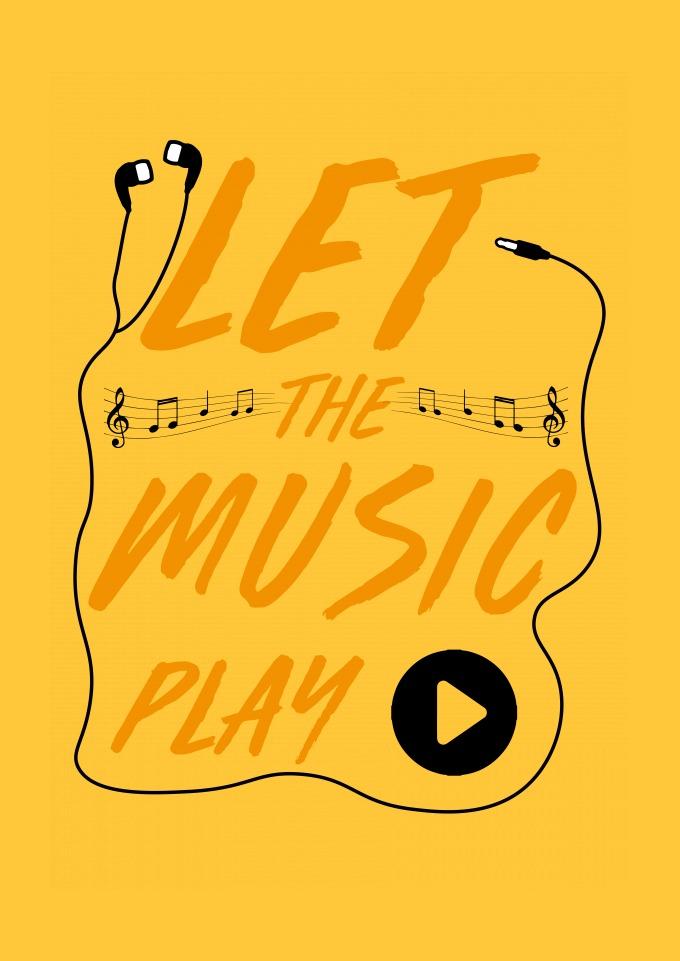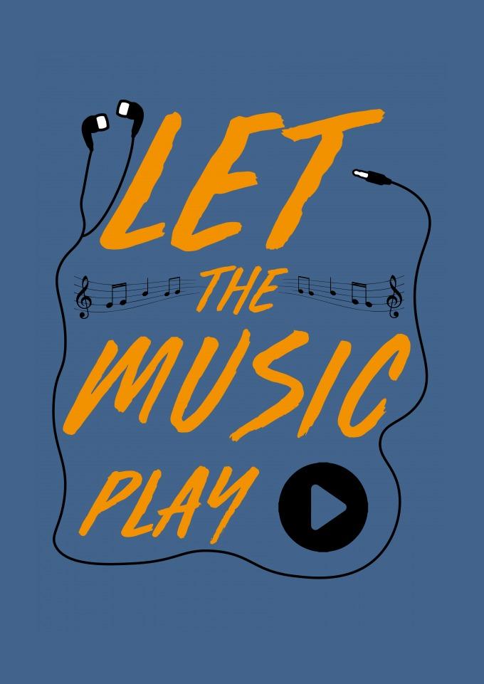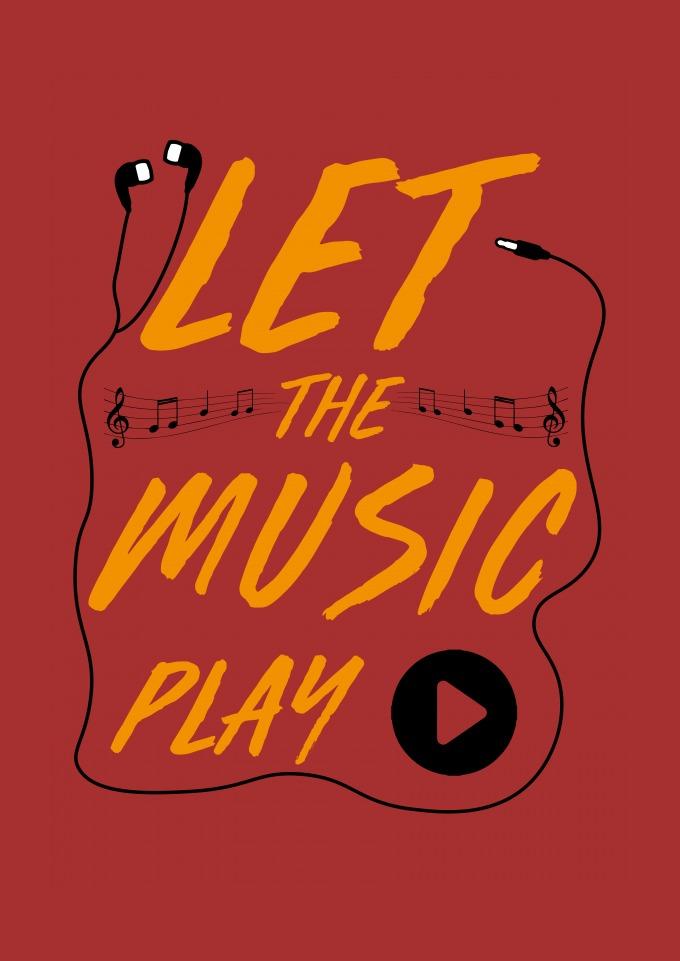 Estampa com elementos musicais.