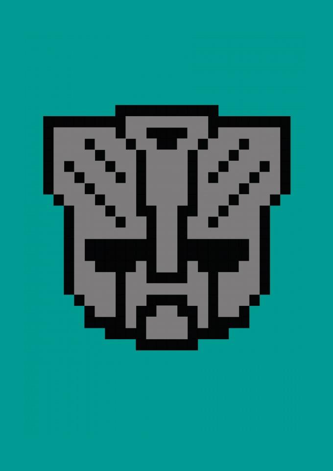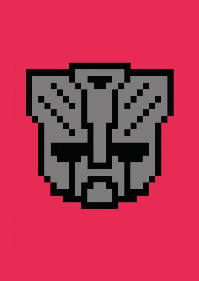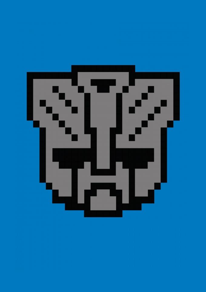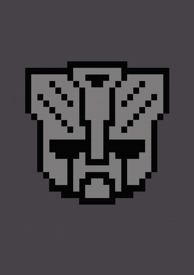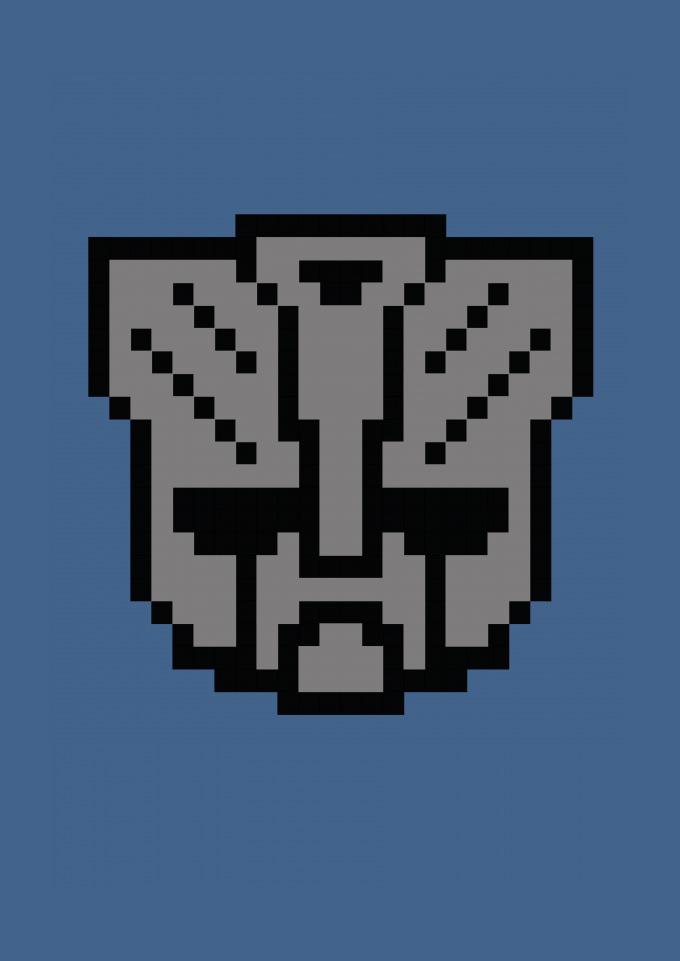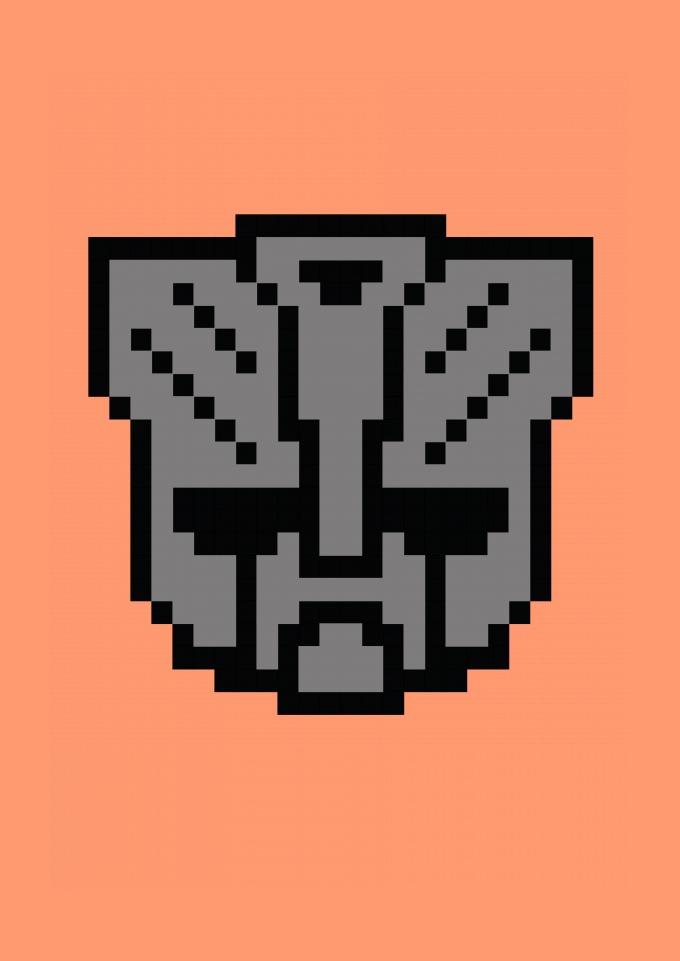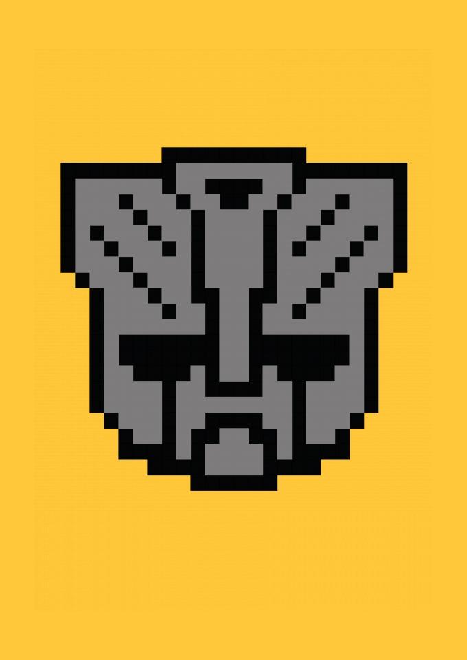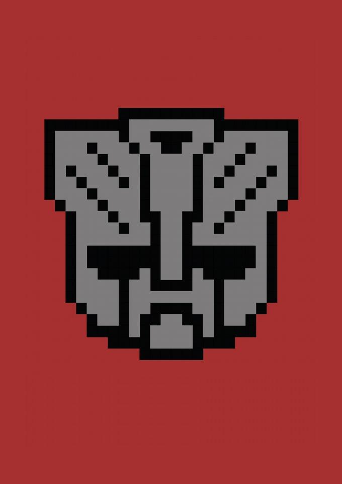 Logo Transformers em pixel art.