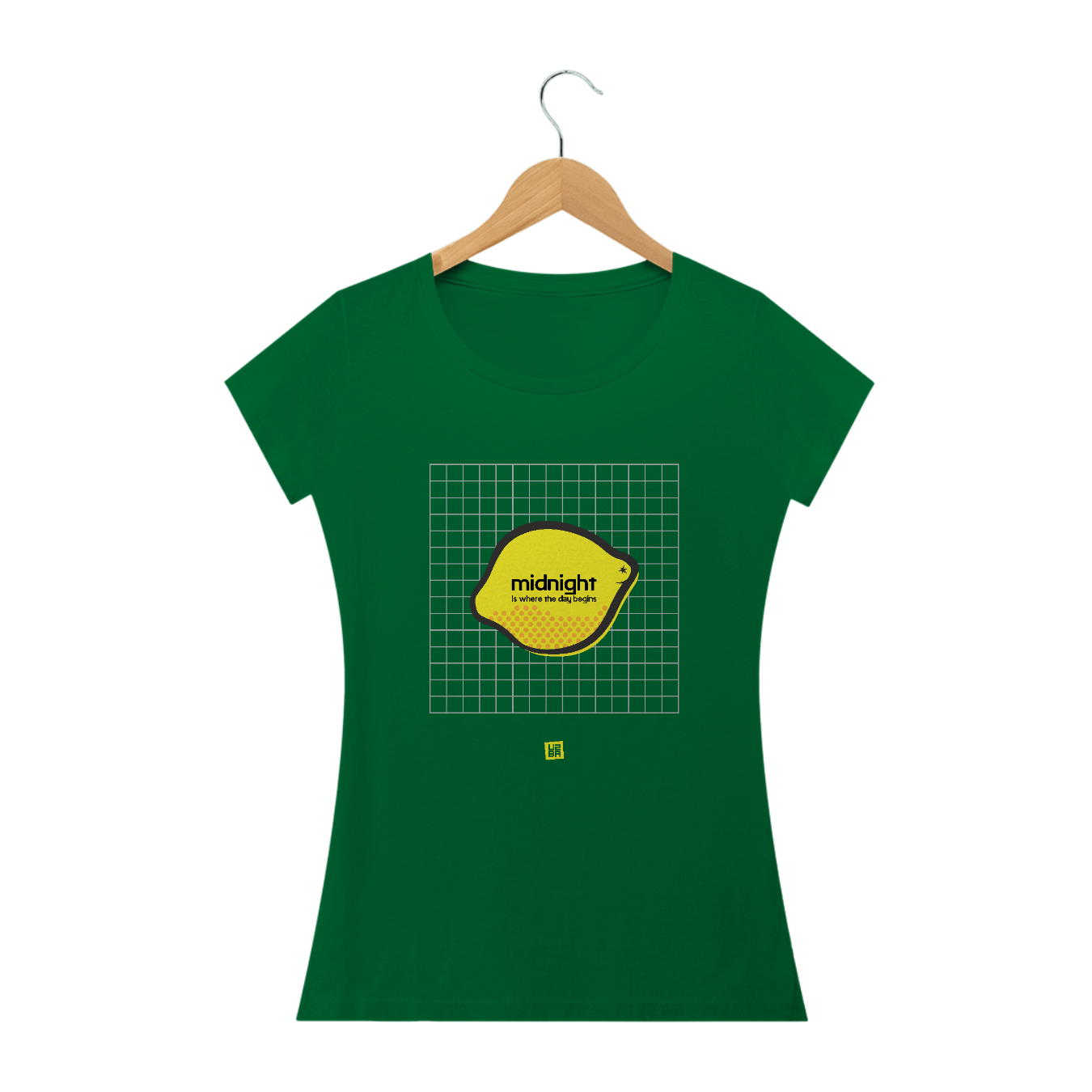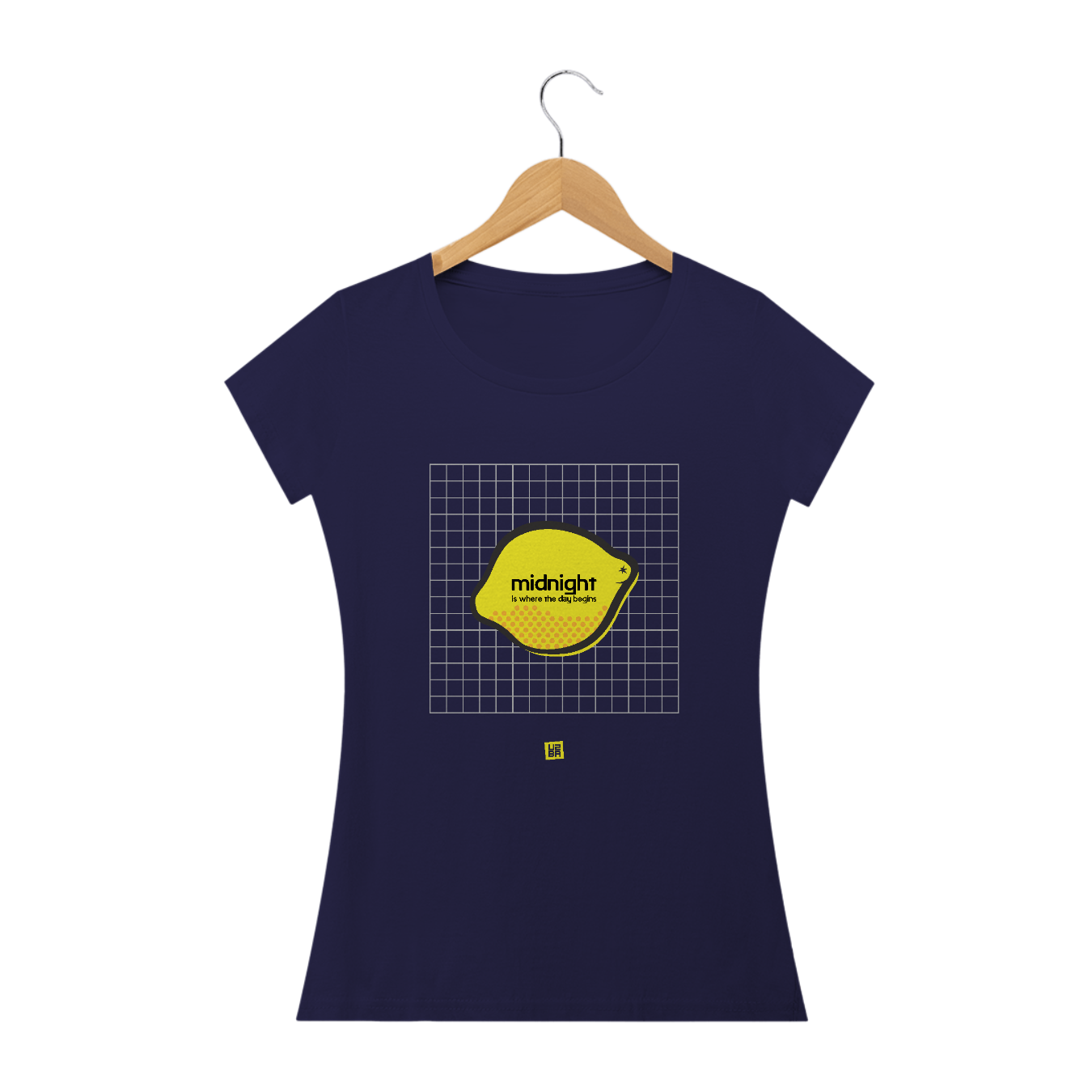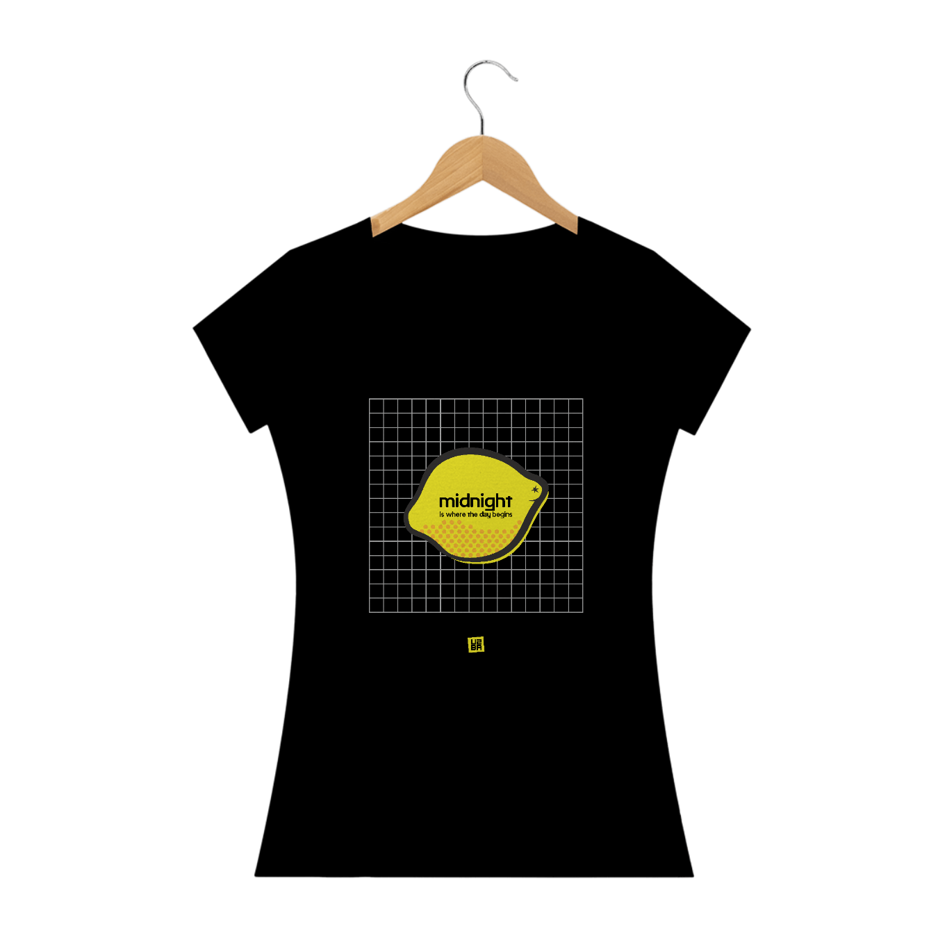 Estampa inspirada na canção "Lemon" com o trecho "Midnight is where the day begins".