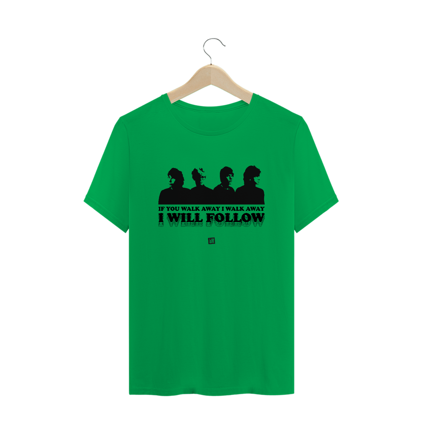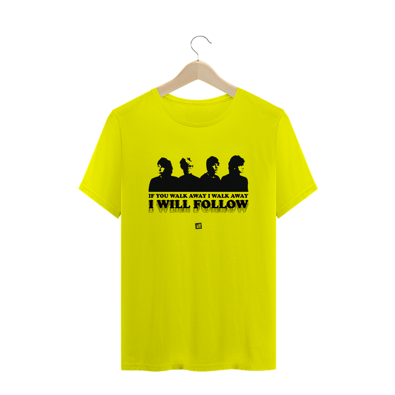Estampa inspirada na era "Boy" com o trecho "If you walk away, I walk away, I will follow".