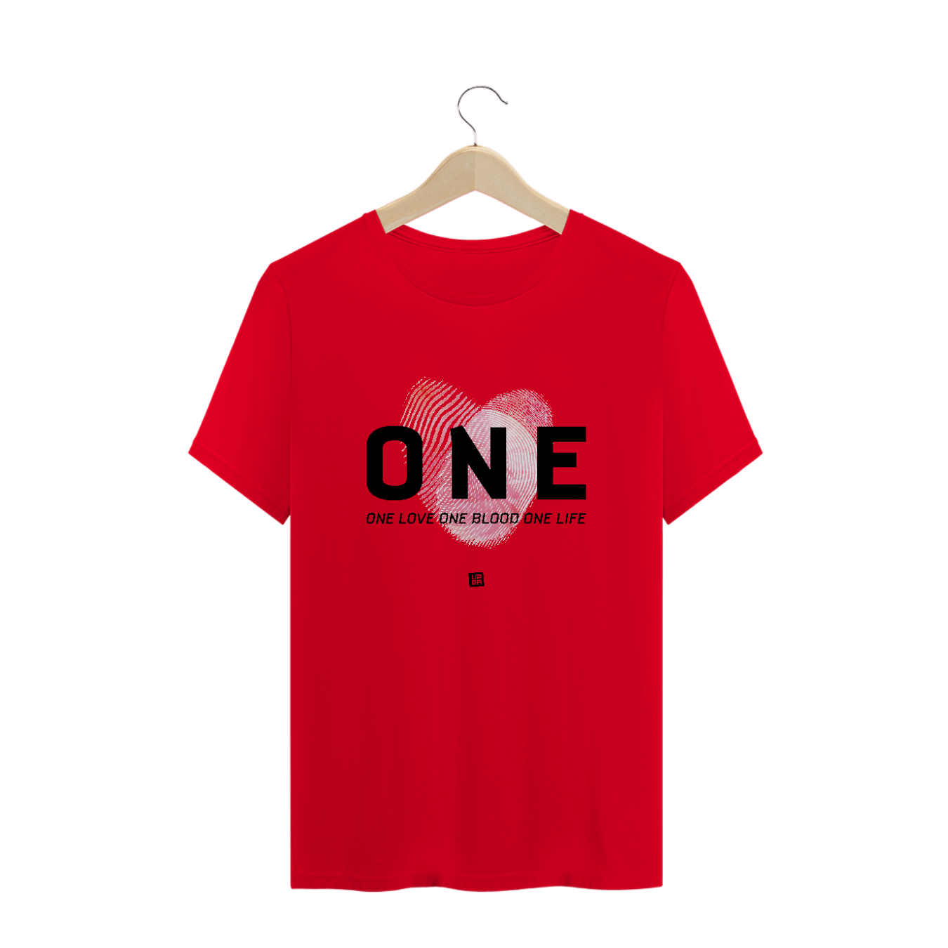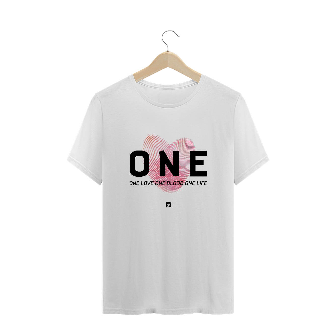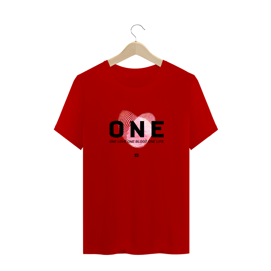 Estampa inspirada na canção "One" com o trecho "One love, one blood, one life".
