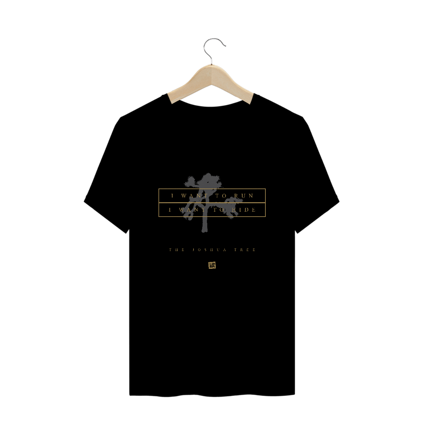 Estampa inspirada no álbum "The Joshua Tree" com o trecho "I want to run, I want to hide" em referência à canção "Where The Streets Have No Name".