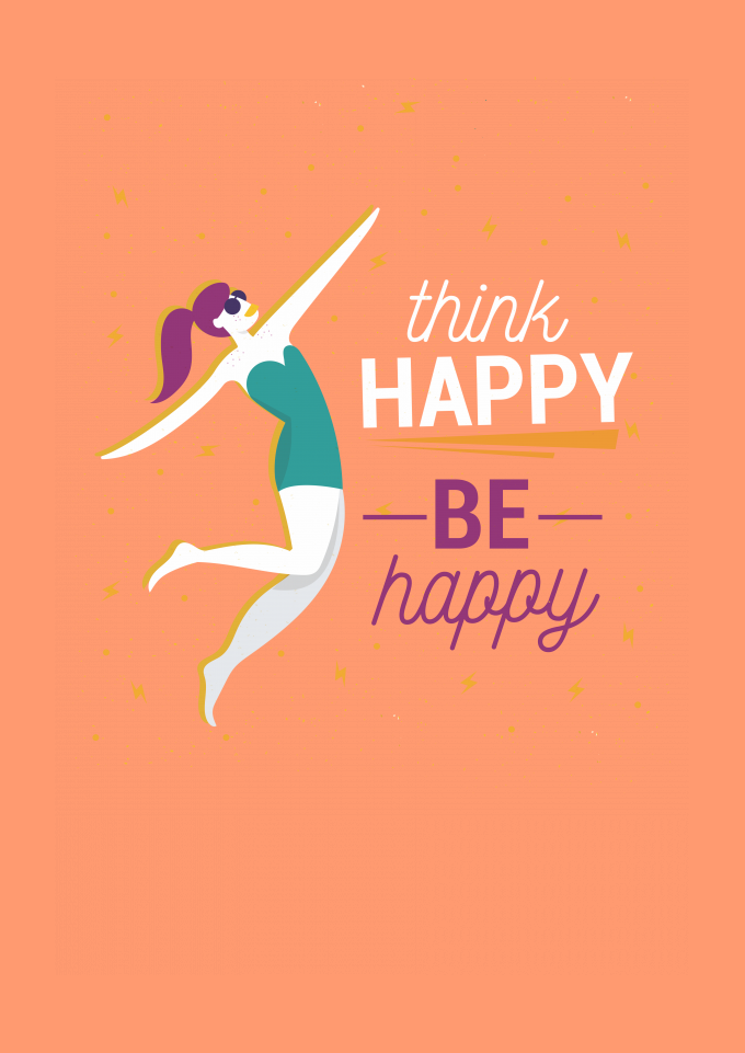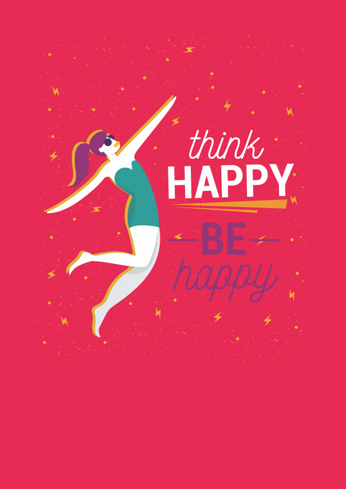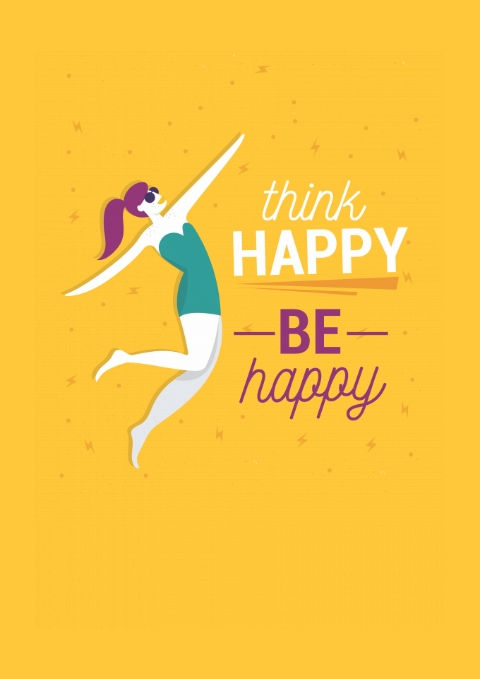 Think, Happy, Design, Ilustração, Quote, Illustration, Art, Fashion