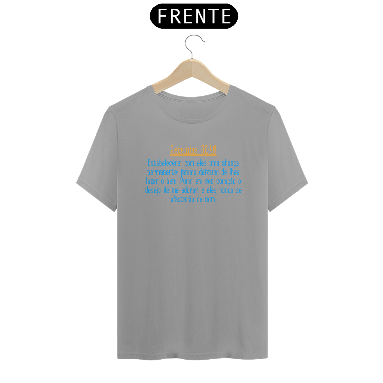 Camiseta cristã com citação de versículo bíblico Jeremias 32:40 Estabelecerei com eles uma aliança permanente: jamais deixarei de lhes fazer o bem. Porei em seu coração o desejo de me adorar, e eles nunca se afastarão de mim.