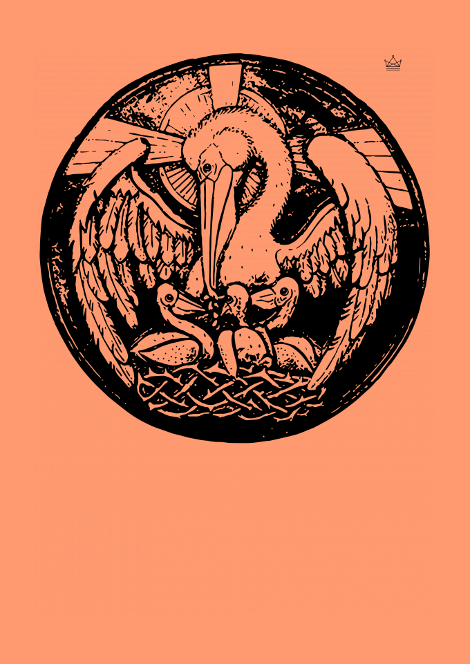 Antigamente acreditava que o pelicano, ao não ter um bom dia de pesca, no lugar de deixar morrer as suas crias, arrancava de sua própria carne para alimentá-los. É aqui onde nasce a comparação com Cristo, pois o mesmo nos dá de sua própria carne e de seu sangue. Fonte: ChurchPOP