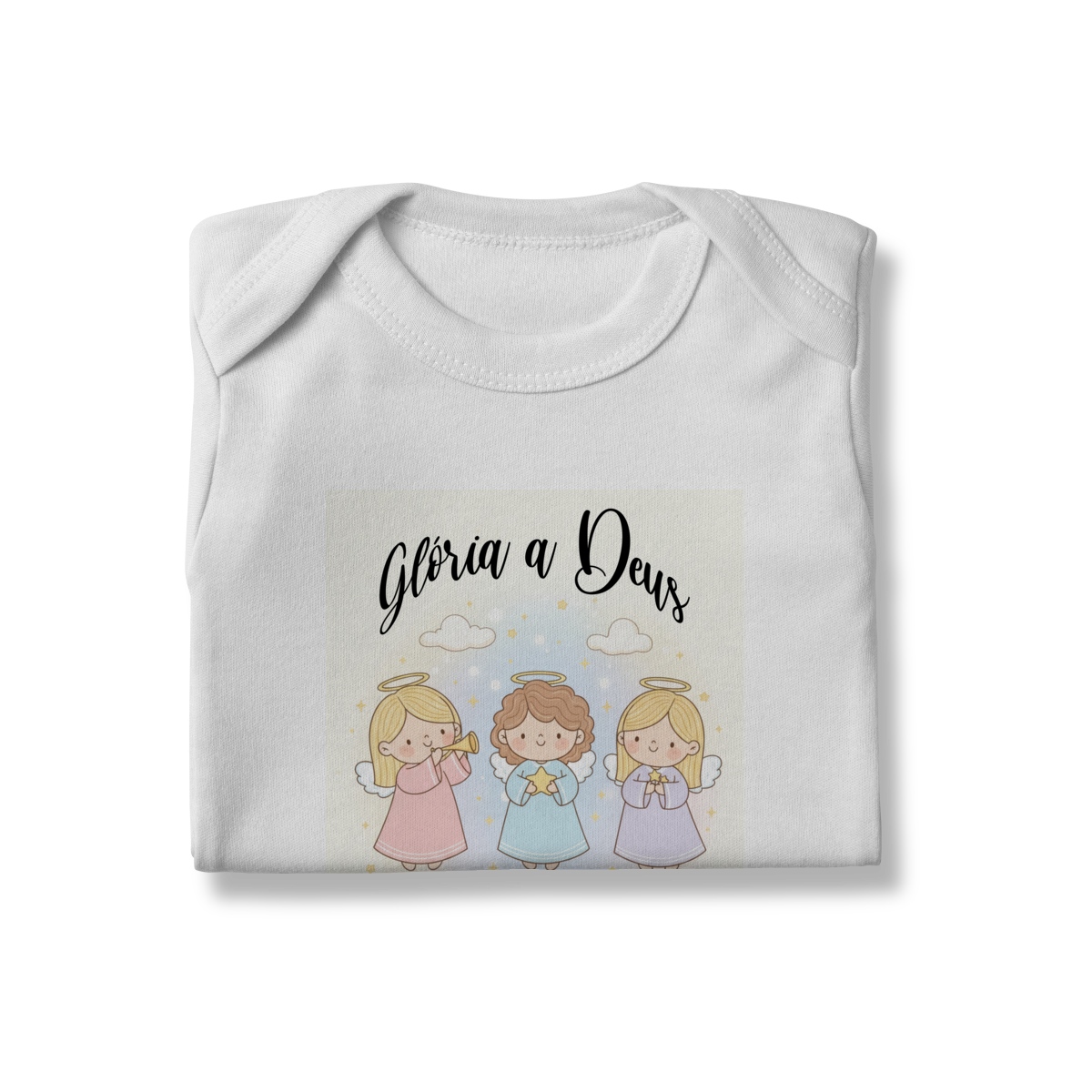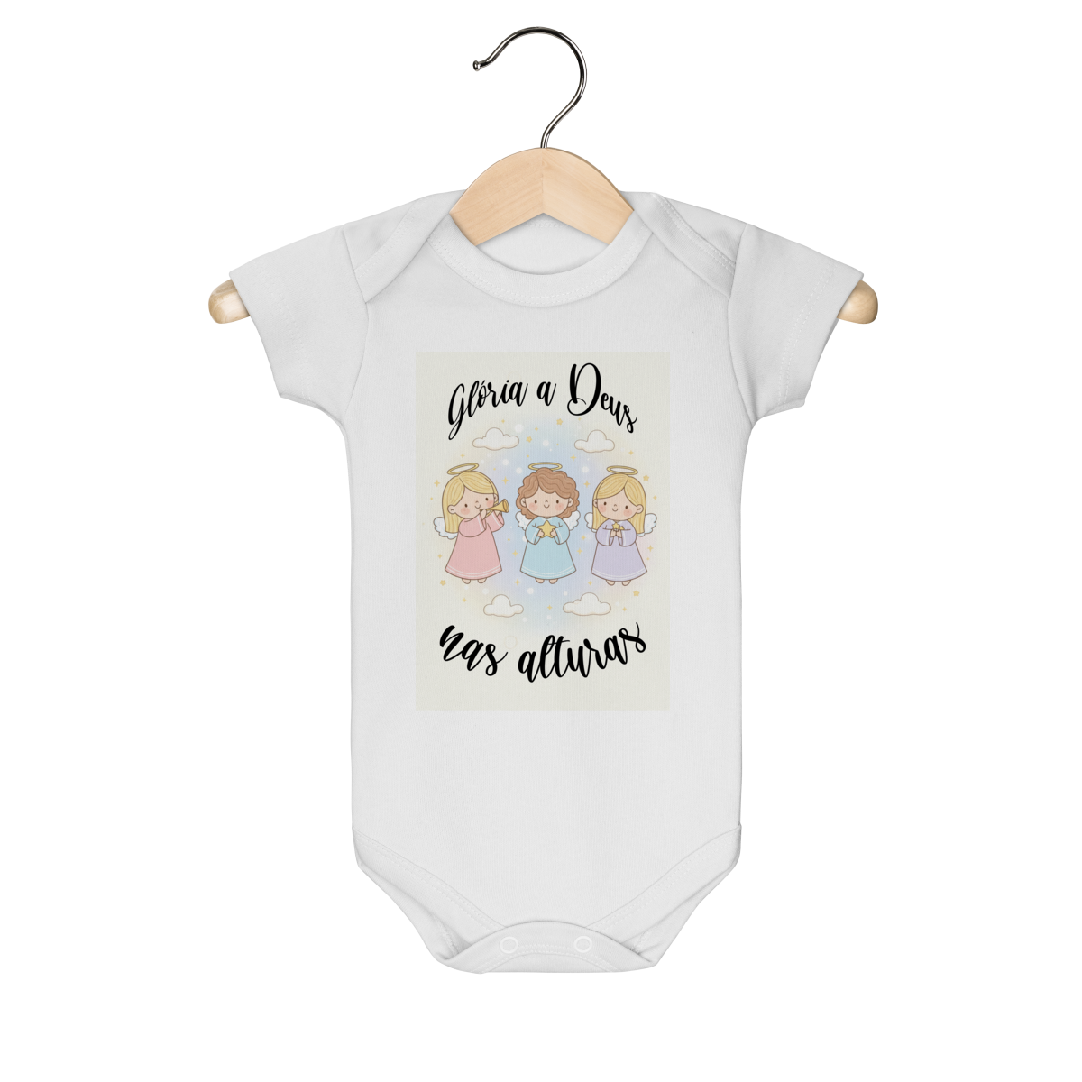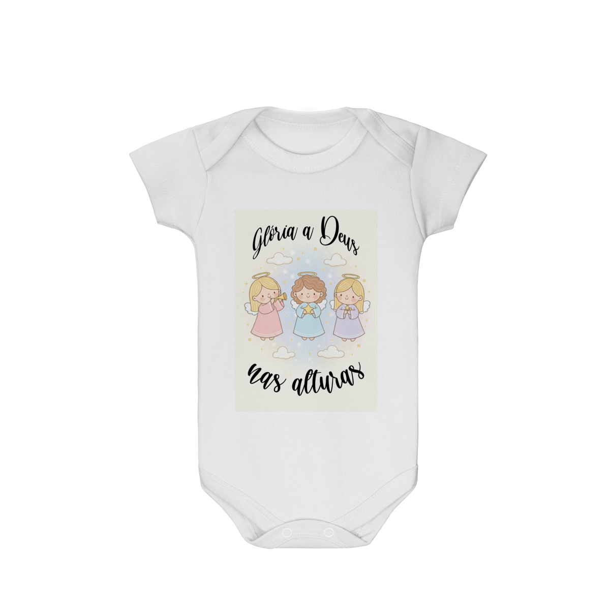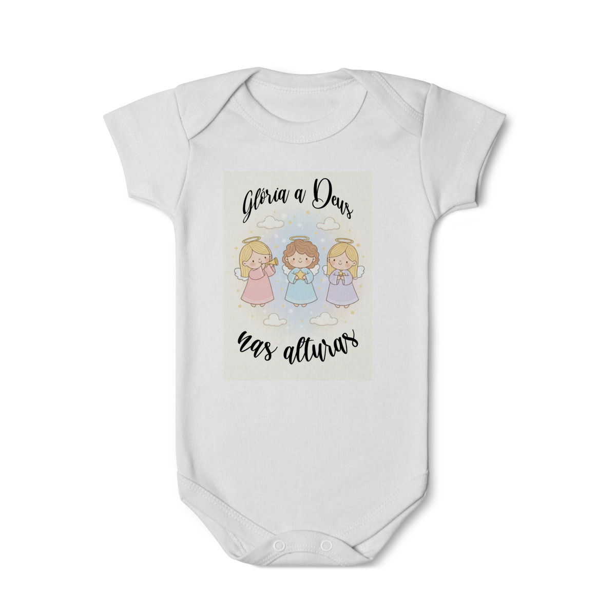 O Body Infantil “Glória a Deus nas Alturas” é perfeito para vestir os bebês com fé, ternura e o clima encantador do Natal. A estampa traz anjinhos em estilo infantil, transmitindo uma mensagem de paz, alegria e louvor a Deus de forma delicada e encantadora.