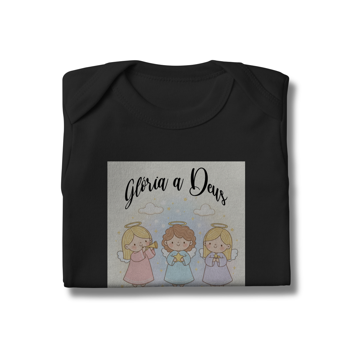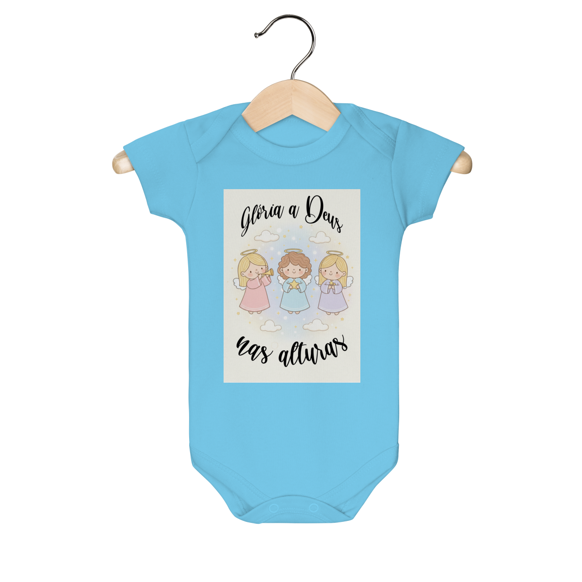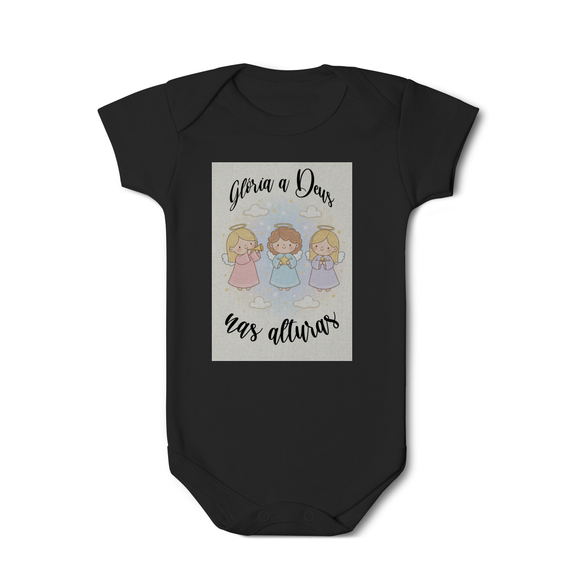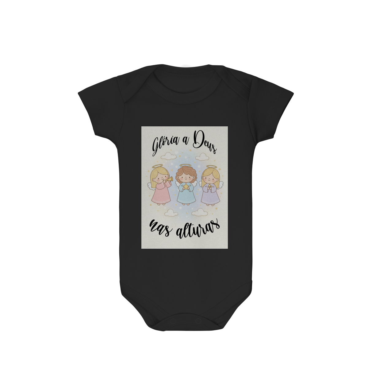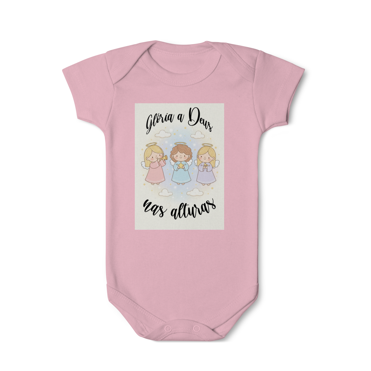 O Body Infantil “Glória a Deus nas Alturas” é perfeito para vestir os bebês com fé, ternura e o clima encantador do Natal. A estampa traz anjinhos em estilo infantil, transmitindo uma mensagem de paz, alegria e louvor a Deus de forma delicada e encantadora.