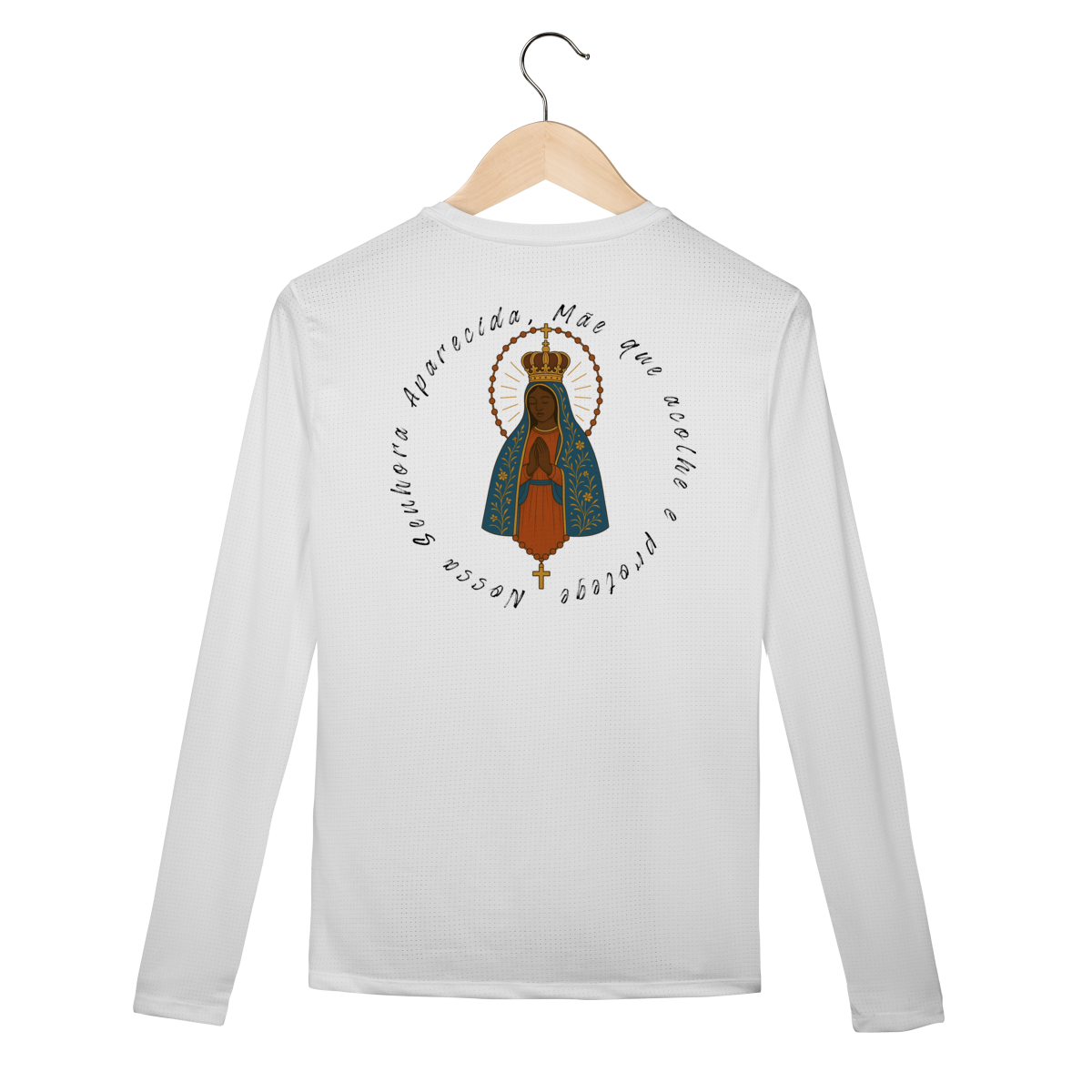 A Camisa Manga Longa Sport Dry UV – Nossa Senhora Aparecida foi criada para quem busca conforto em qualquer atividade, enquanto expressa sua fé com elegância.