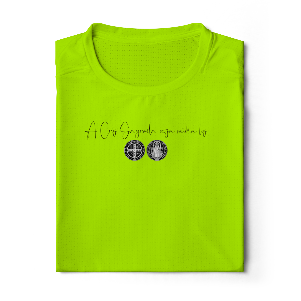 • Estampa traseira imponente, com São Bento + oração