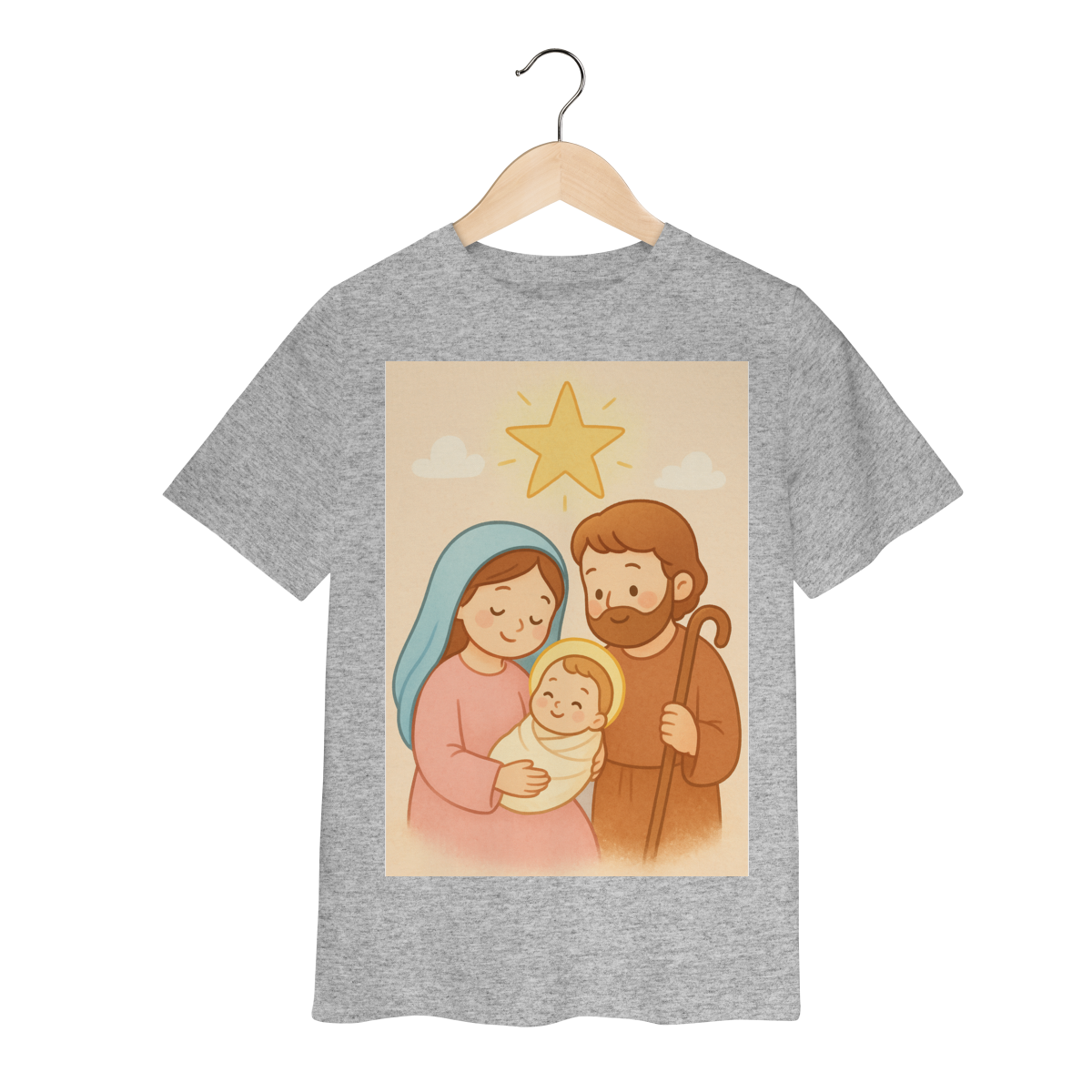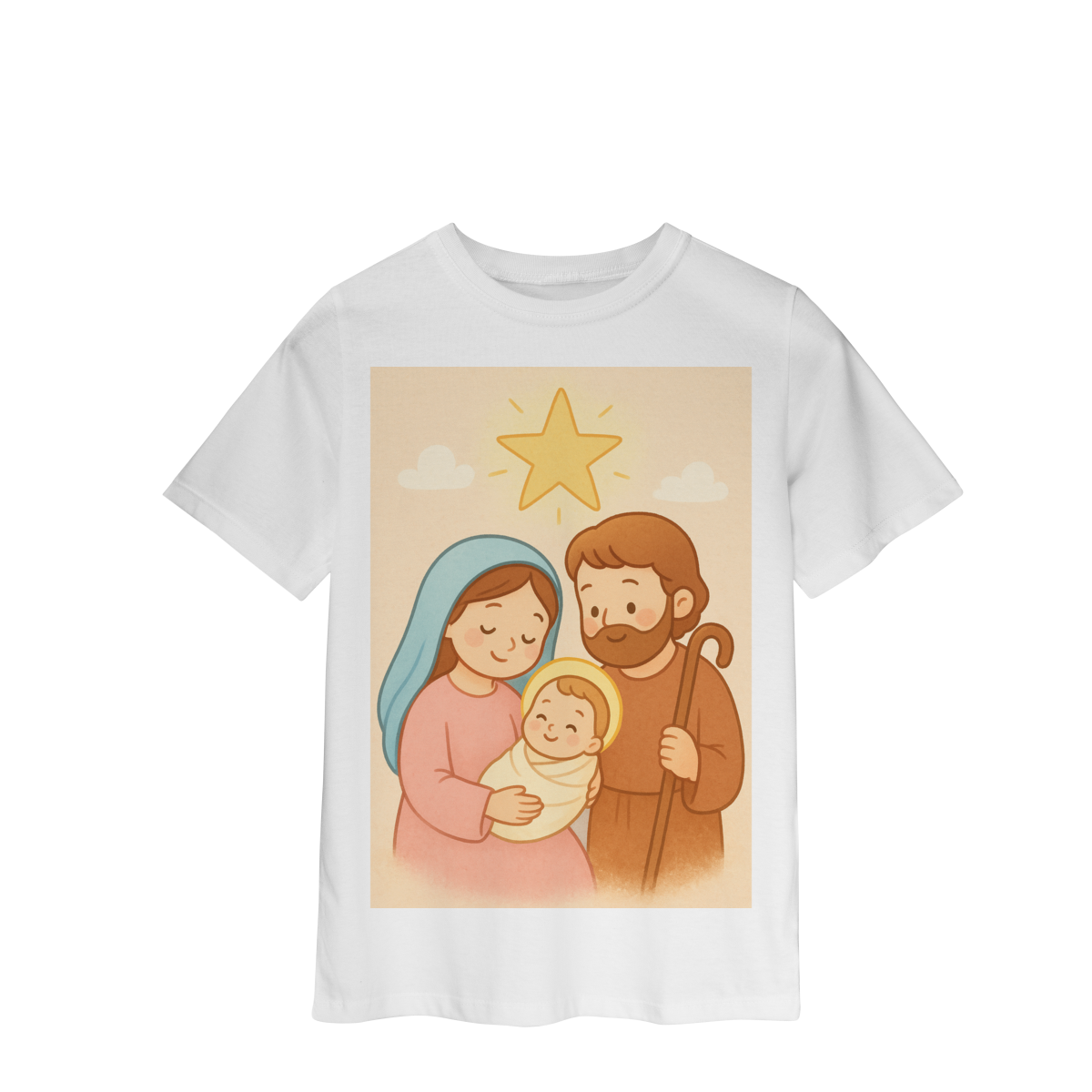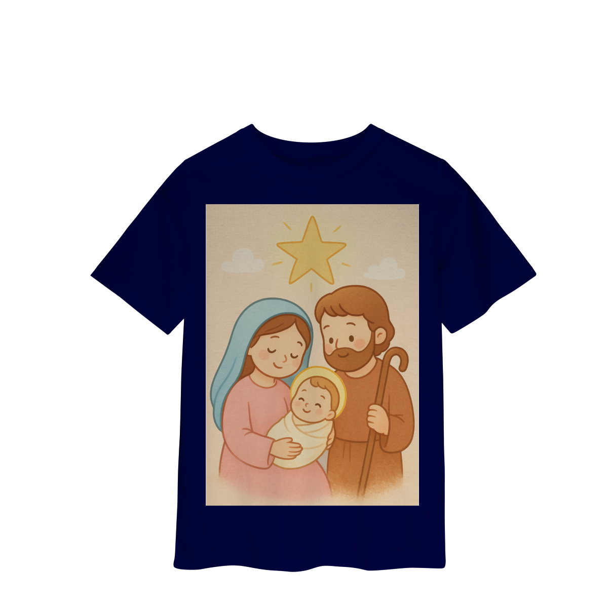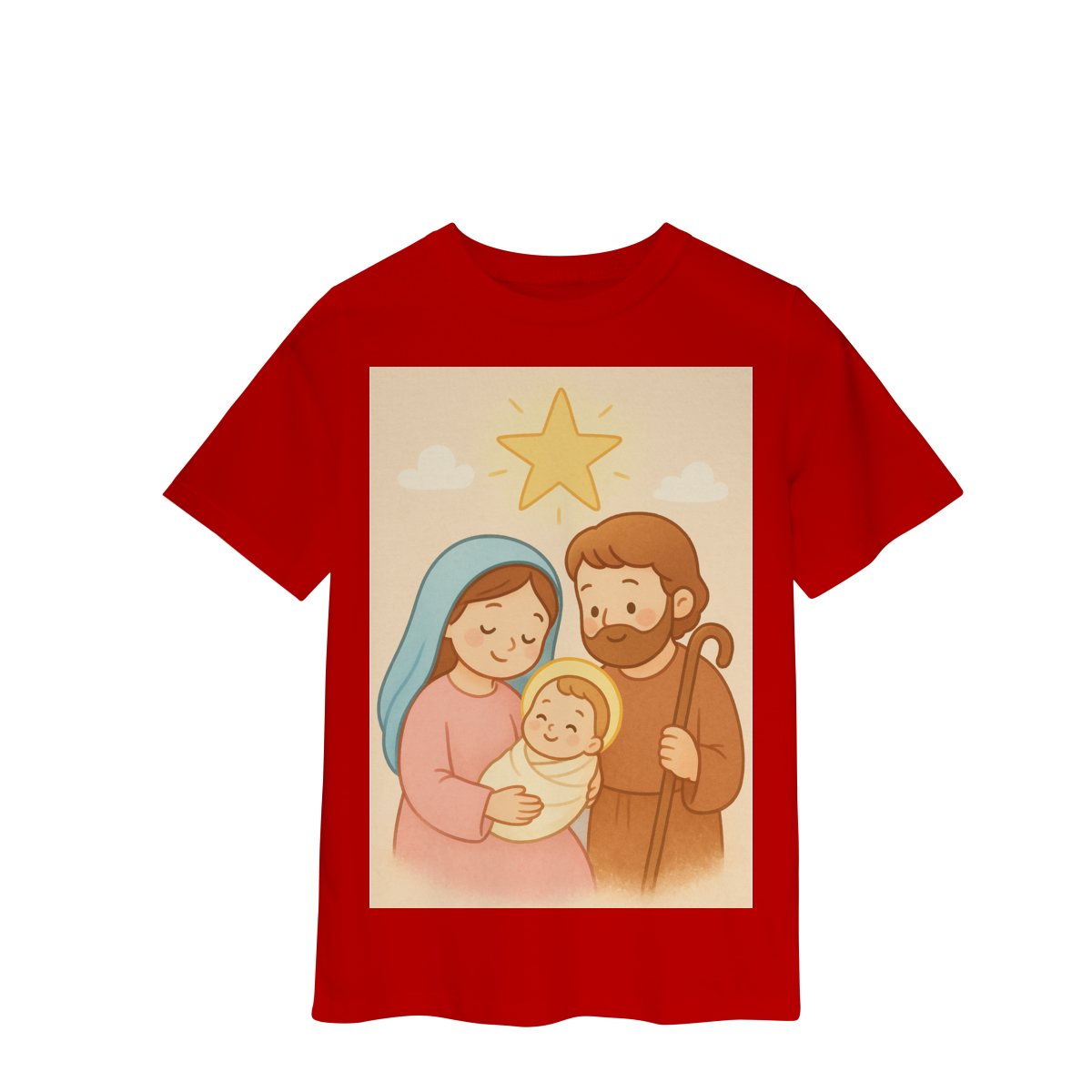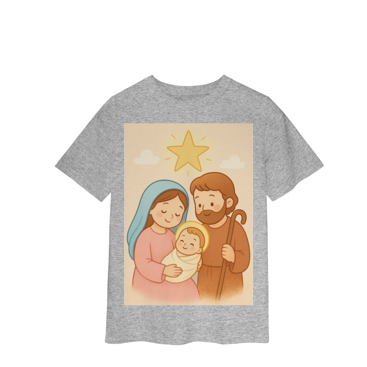 A Camiseta Classic Infantil “Natal é Jesus” foi criada para levar o verdadeiro espírito do Natal para os pequenos de forma doce, leve e cheia de significado. Com a estampa da Sagrada Família em estilo infantil, essa peça encanta pelas cores suaves e pelo visual delicado, transmitindo a mensagem do nascimento de Jesus com amor e ternura.