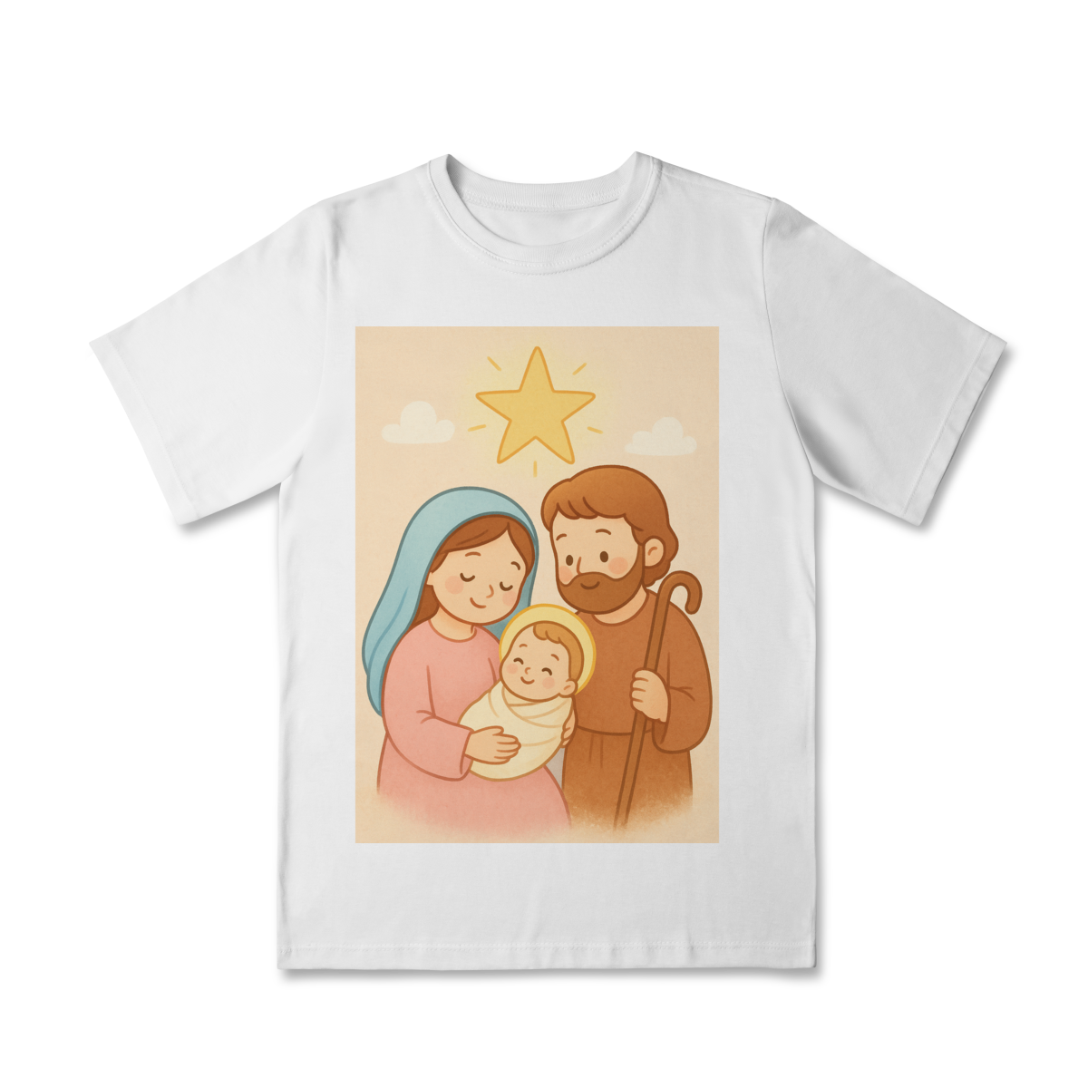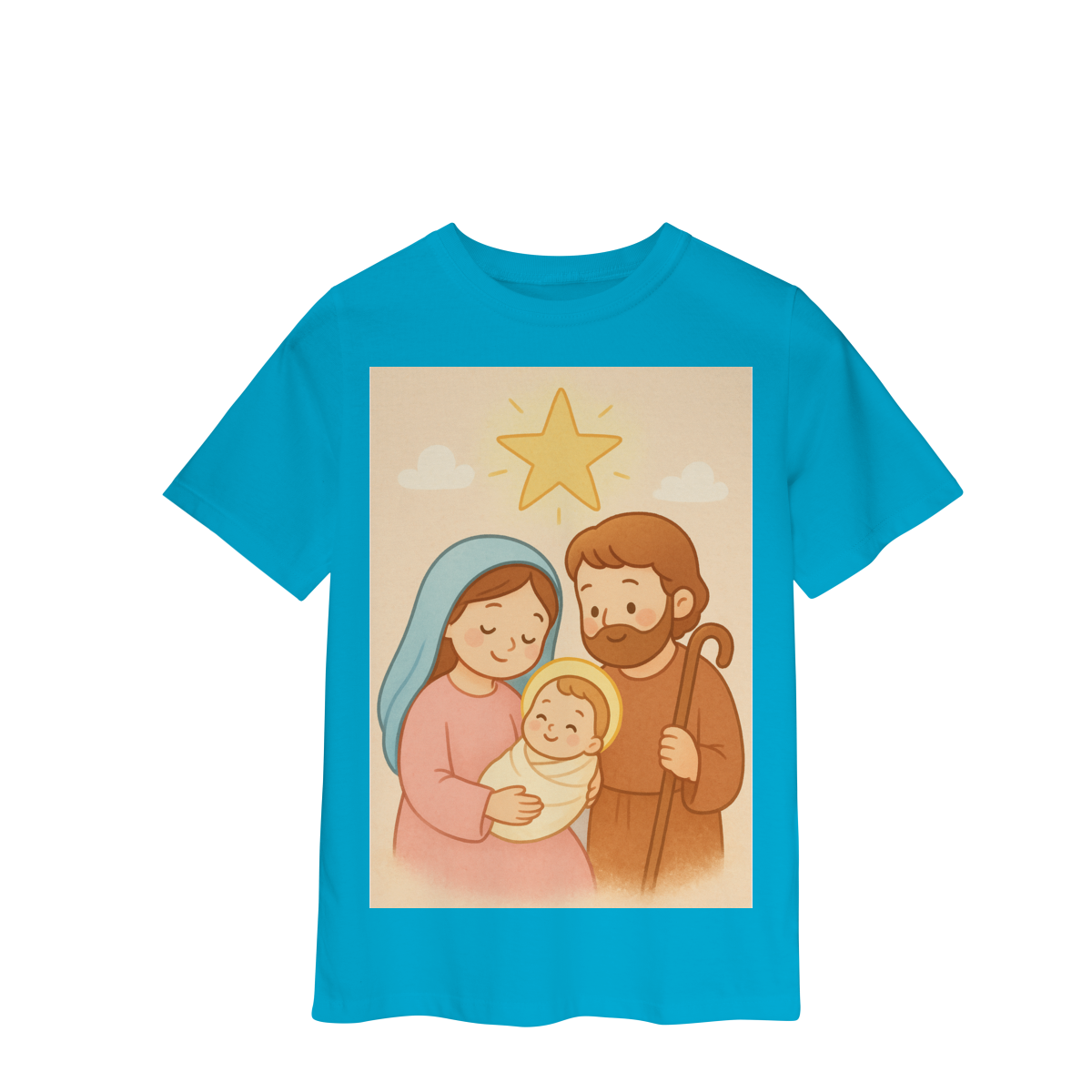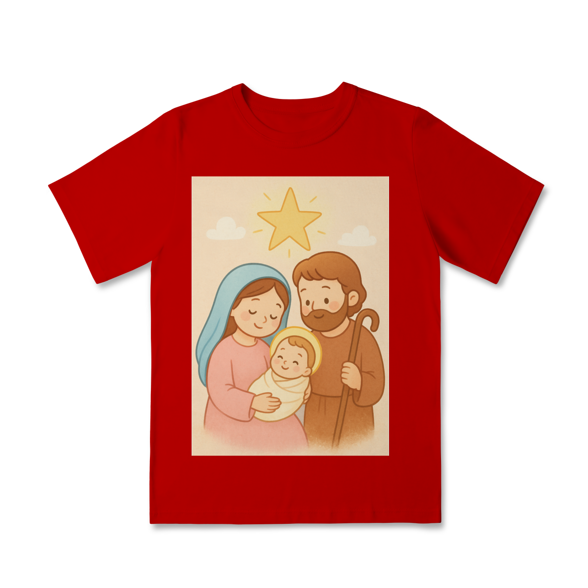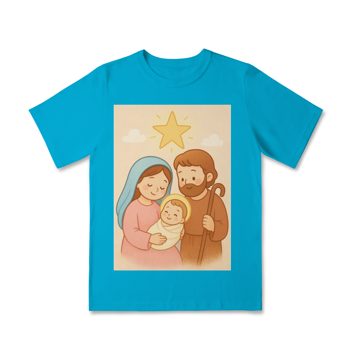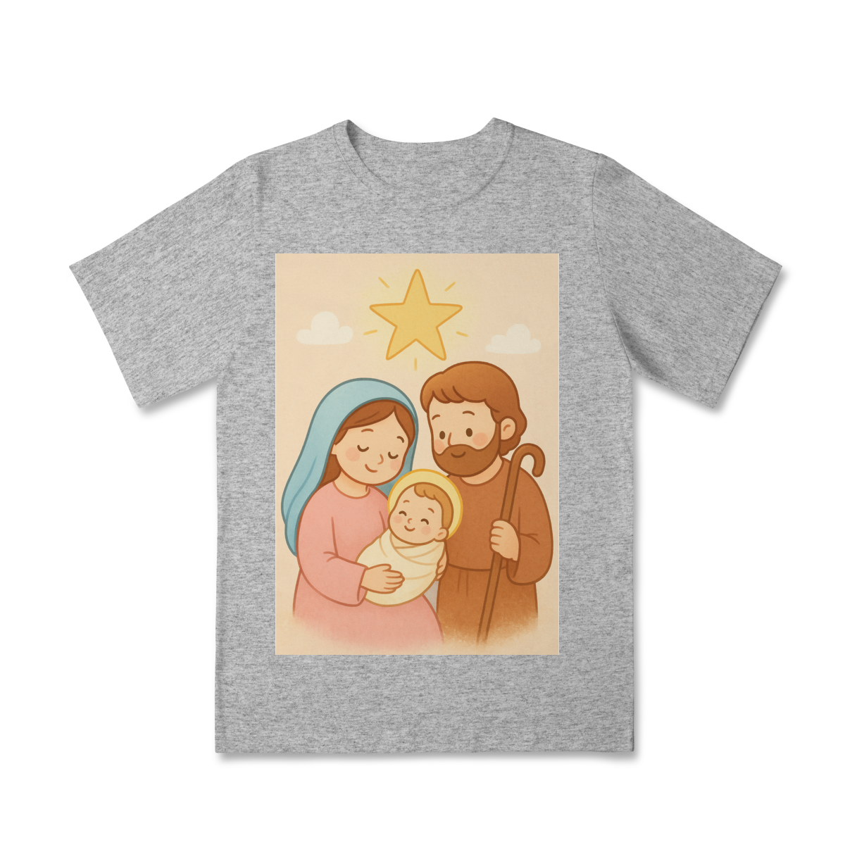A Camiseta Classic Infantil “Natal é Jesus” foi criada para levar o verdadeiro espírito do Natal para os pequenos de forma doce, leve e cheia de significado. Com a estampa da Sagrada Família em estilo infantil, essa peça encanta pelas cores suaves e pelo visual delicado, transmitindo a mensagem do nascimento de Jesus com amor e ternura.