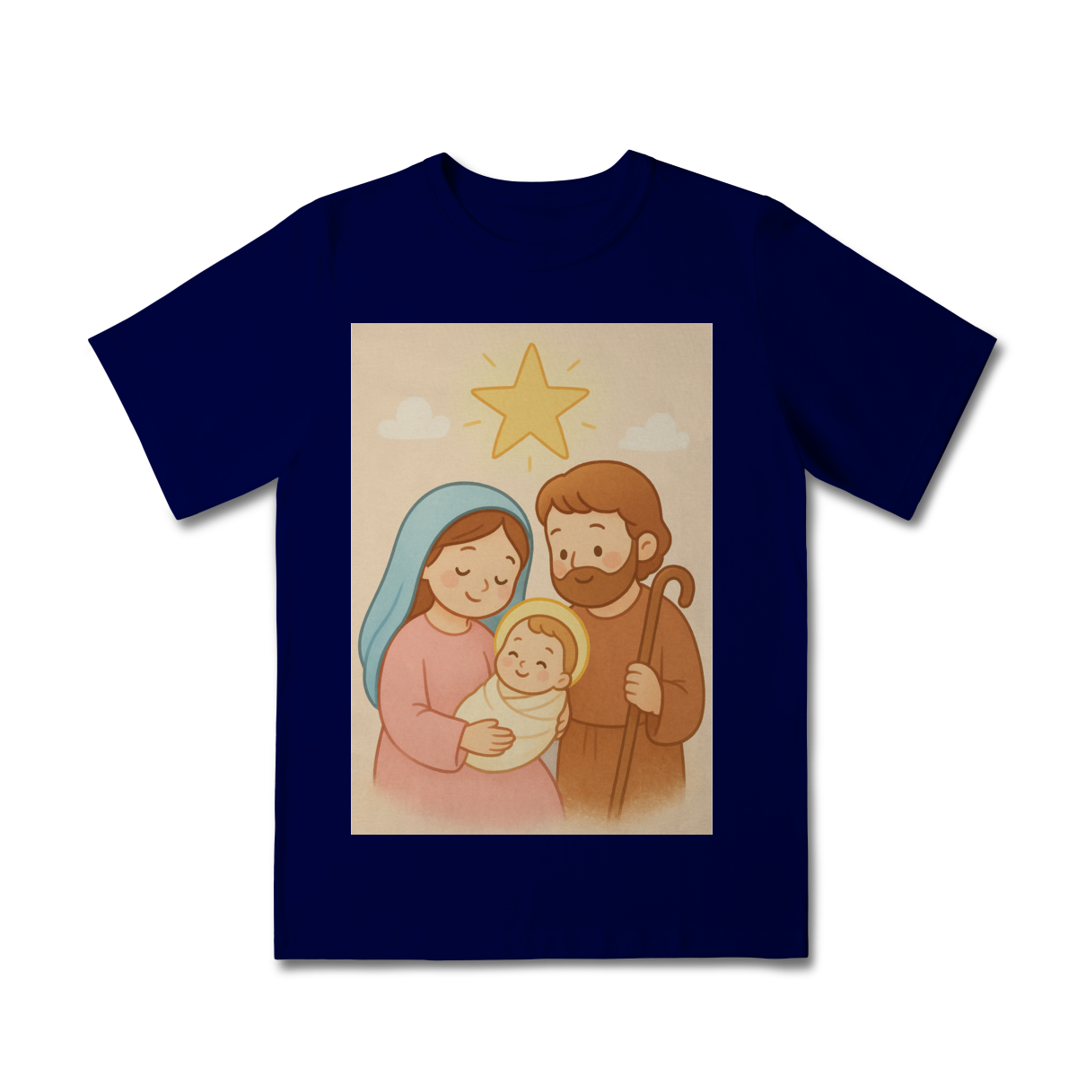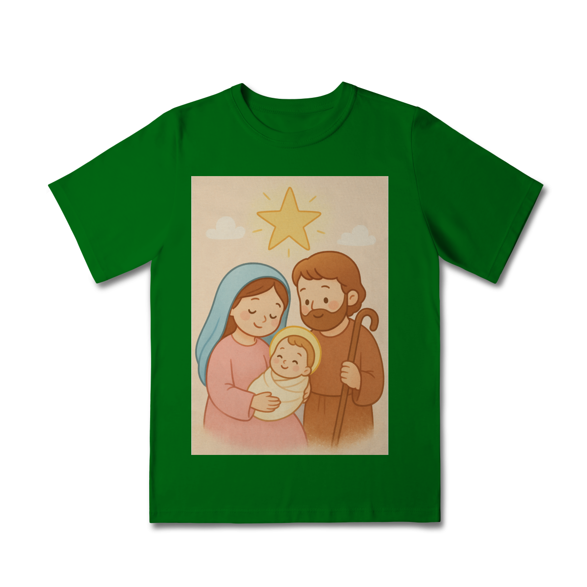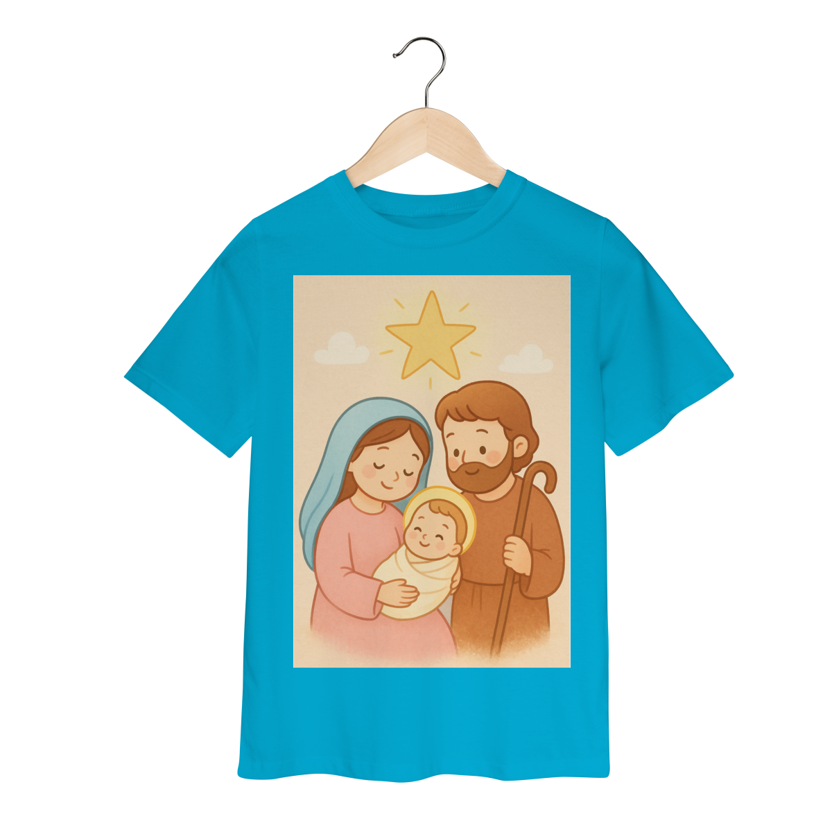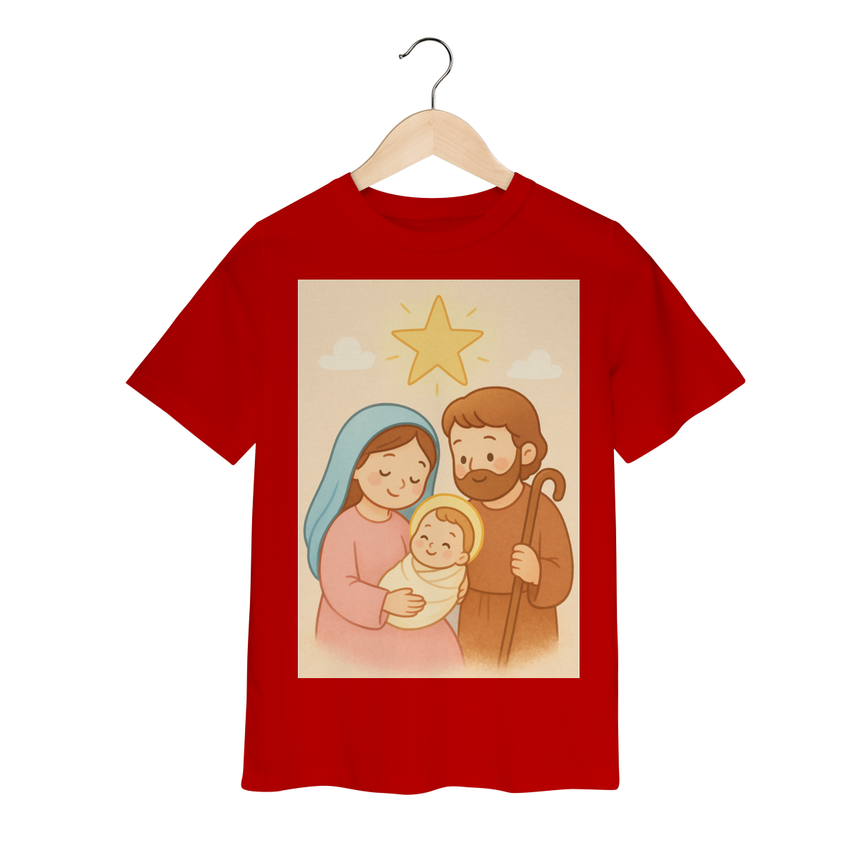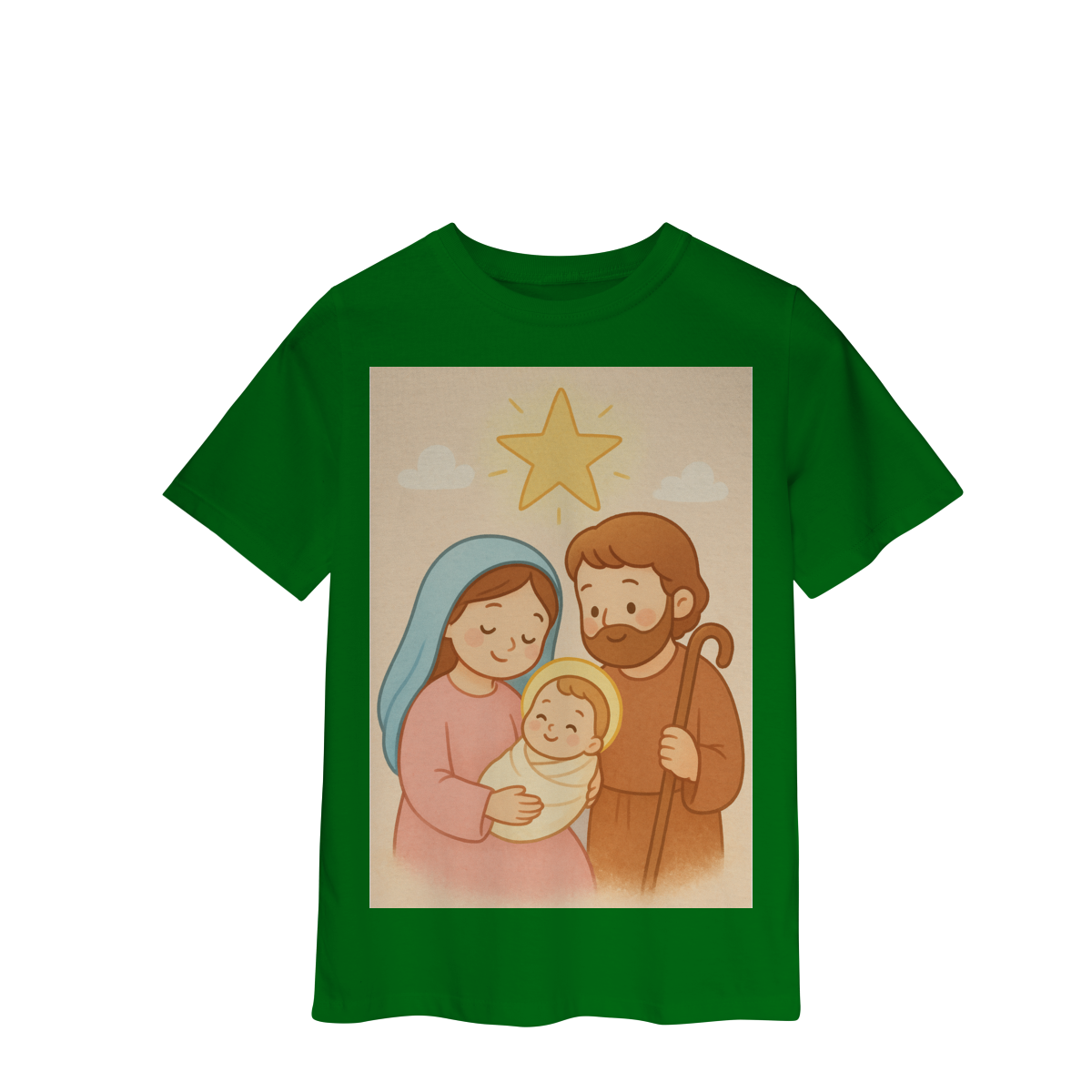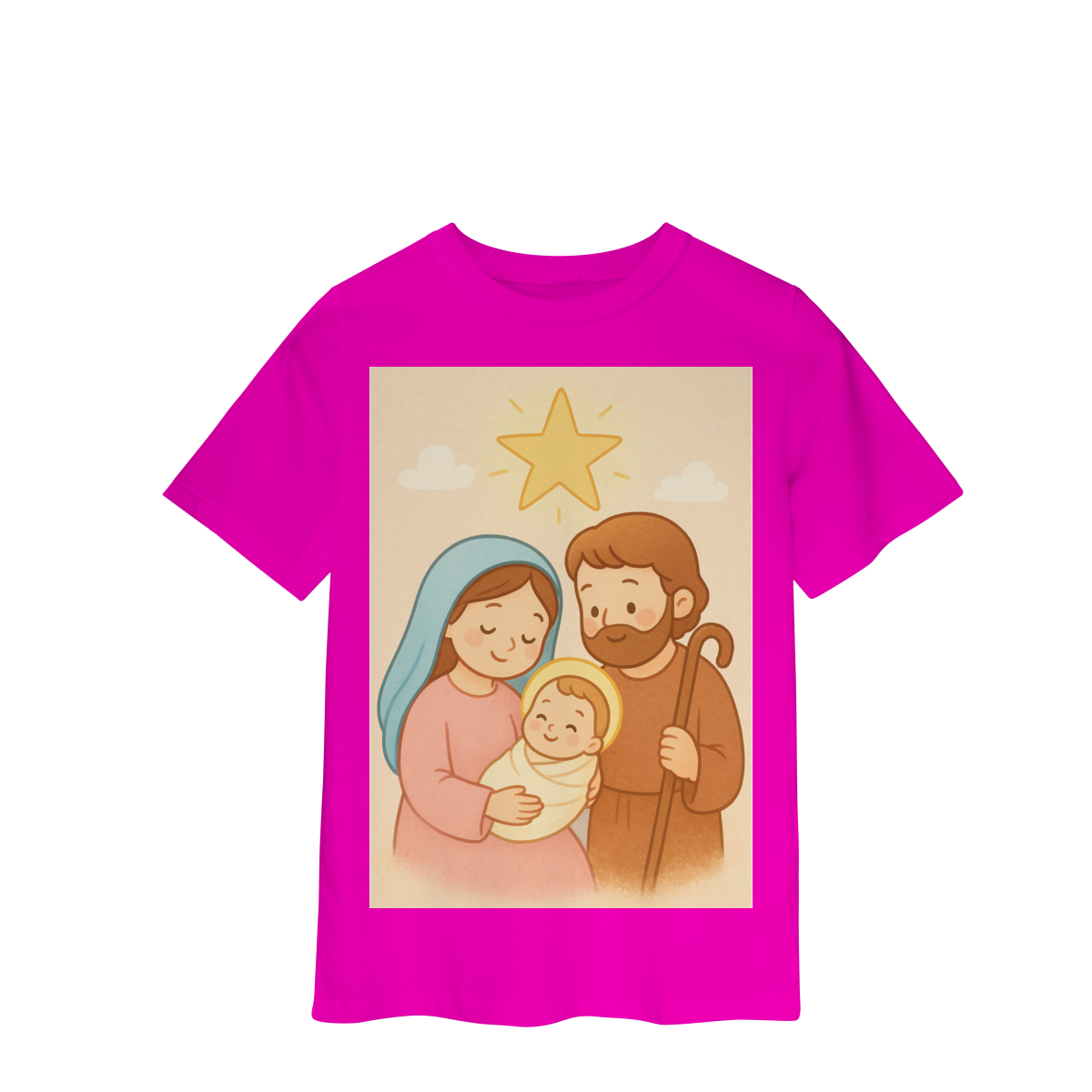 A Camiseta Classic Infantil “Natal é Jesus” foi criada para levar o verdadeiro espírito do Natal para os pequenos de forma doce, leve e cheia de significado. Com a estampa da Sagrada Família em estilo infantil, essa peça encanta pelas cores suaves e pelo visual delicado, transmitindo a mensagem do nascimento de Jesus com amor e ternura.