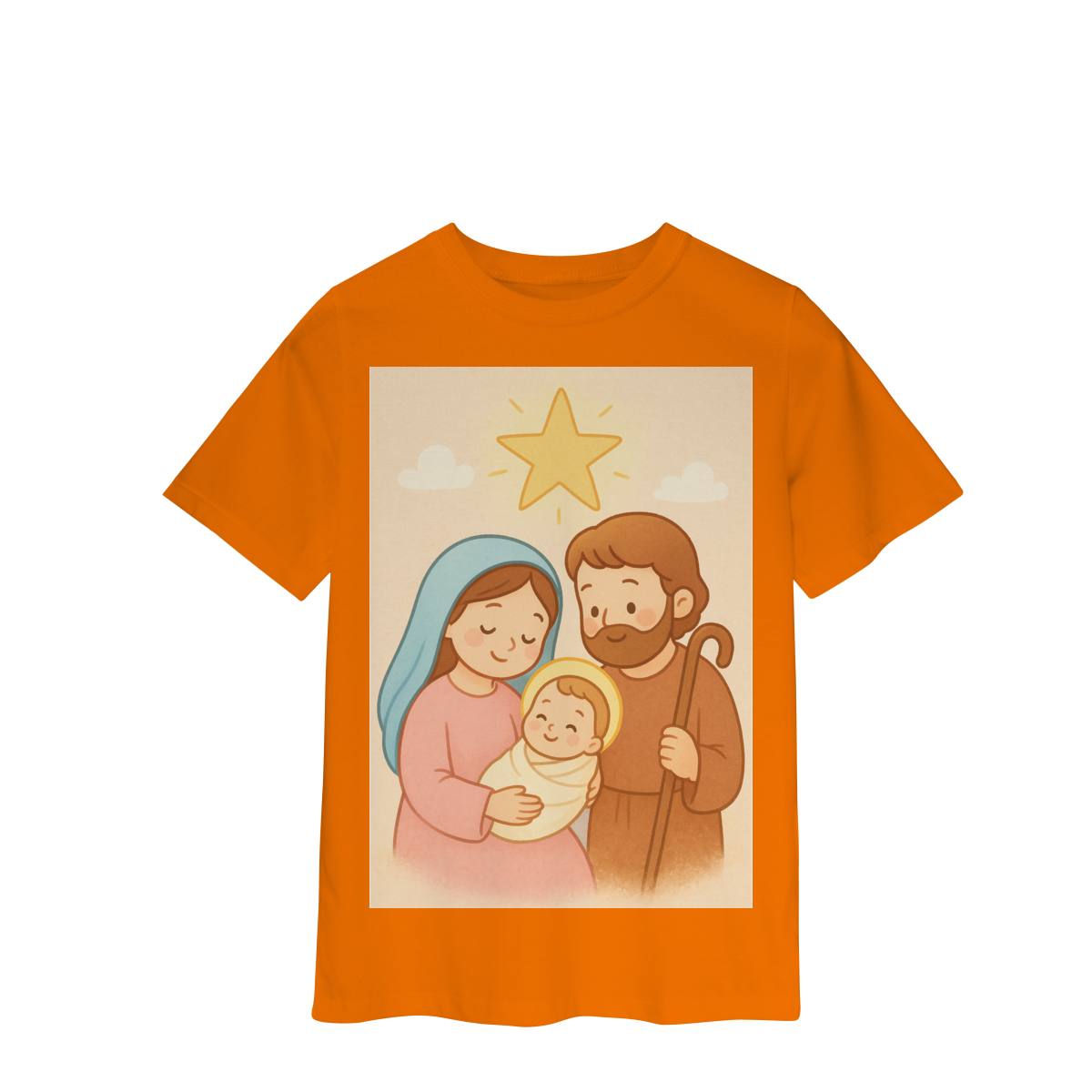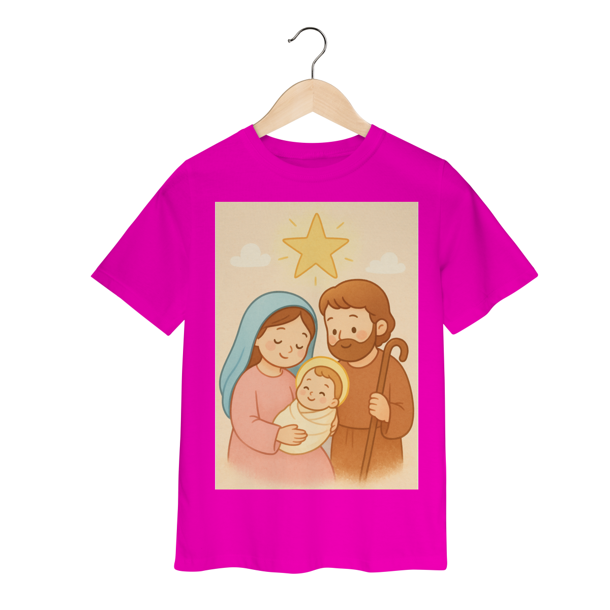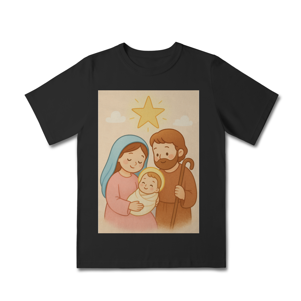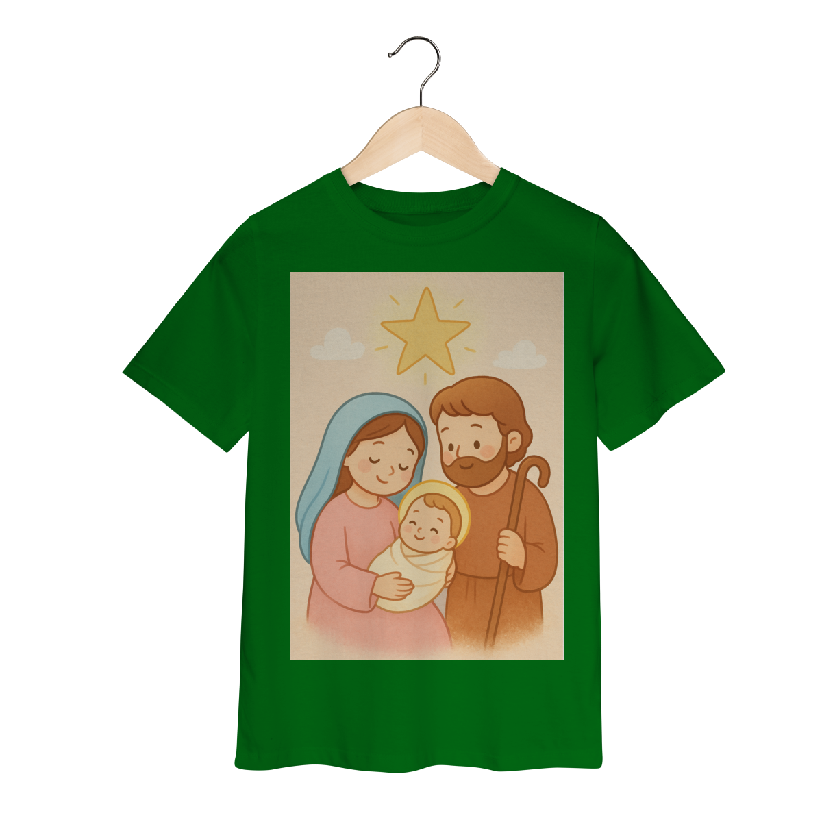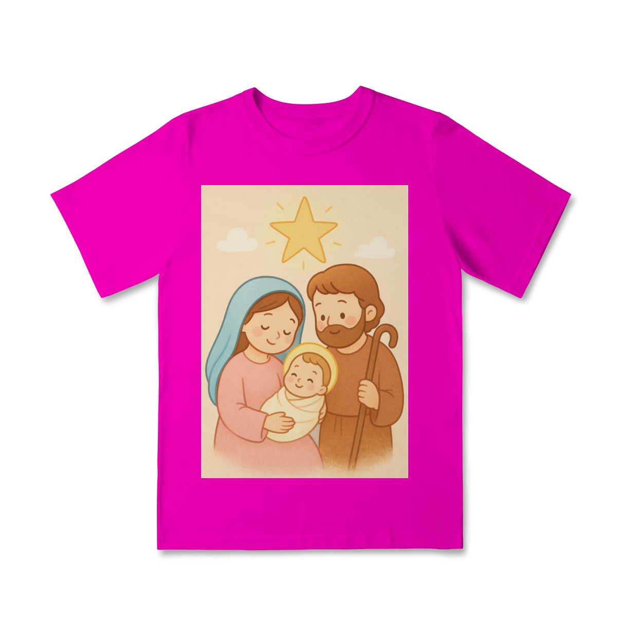A Camiseta Classic Infantil “Natal é Jesus” foi criada para levar o verdadeiro espírito do Natal para os pequenos de forma doce, leve e cheia de significado. Com a estampa da Sagrada Família em estilo infantil, essa peça encanta pelas cores suaves e pelo visual delicado, transmitindo a mensagem do nascimento de Jesus com amor e ternura.