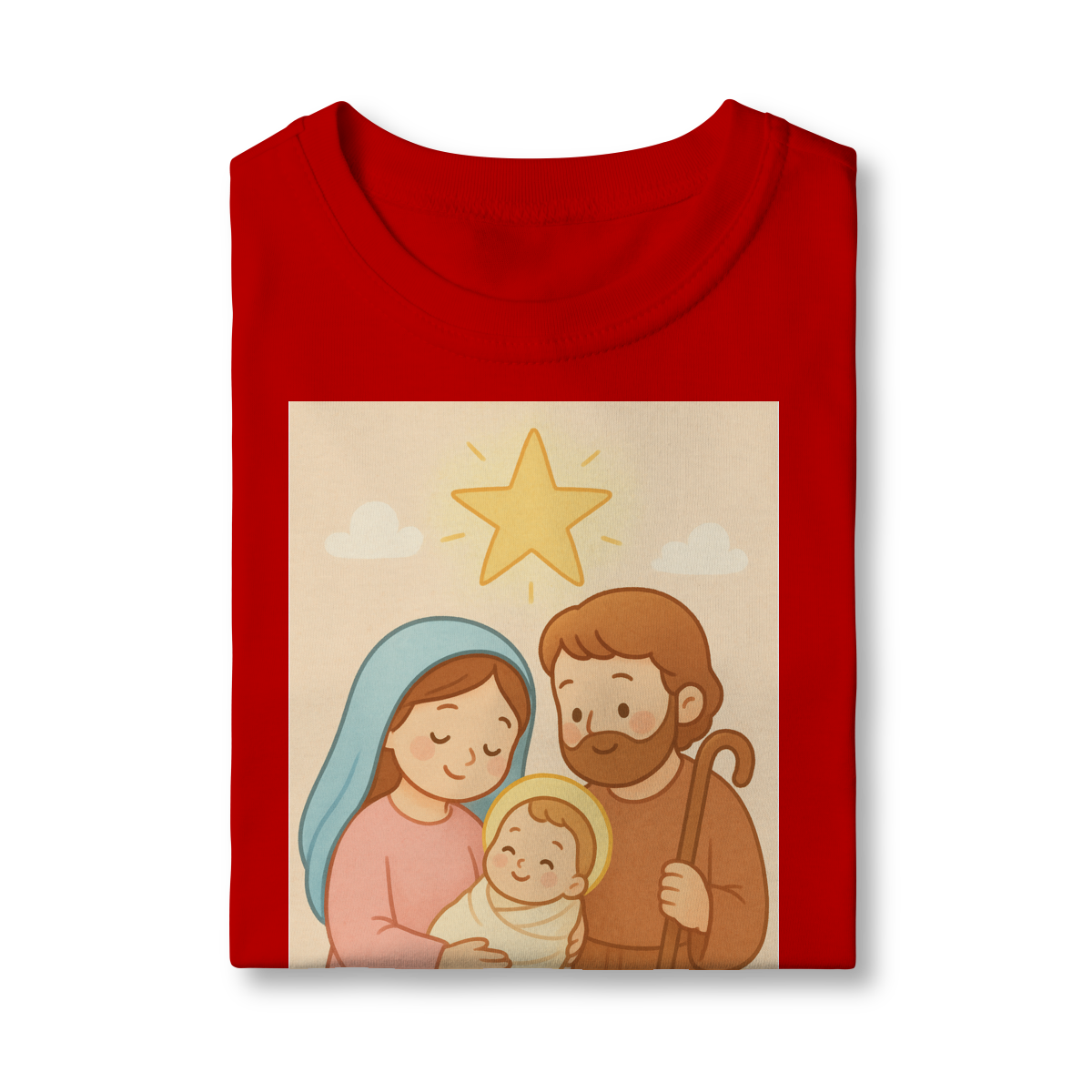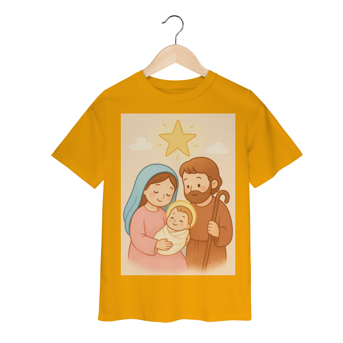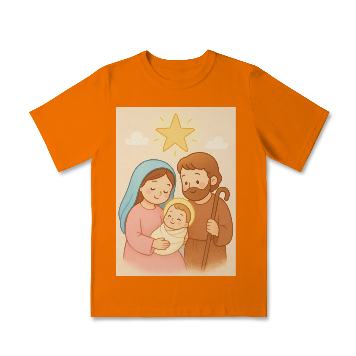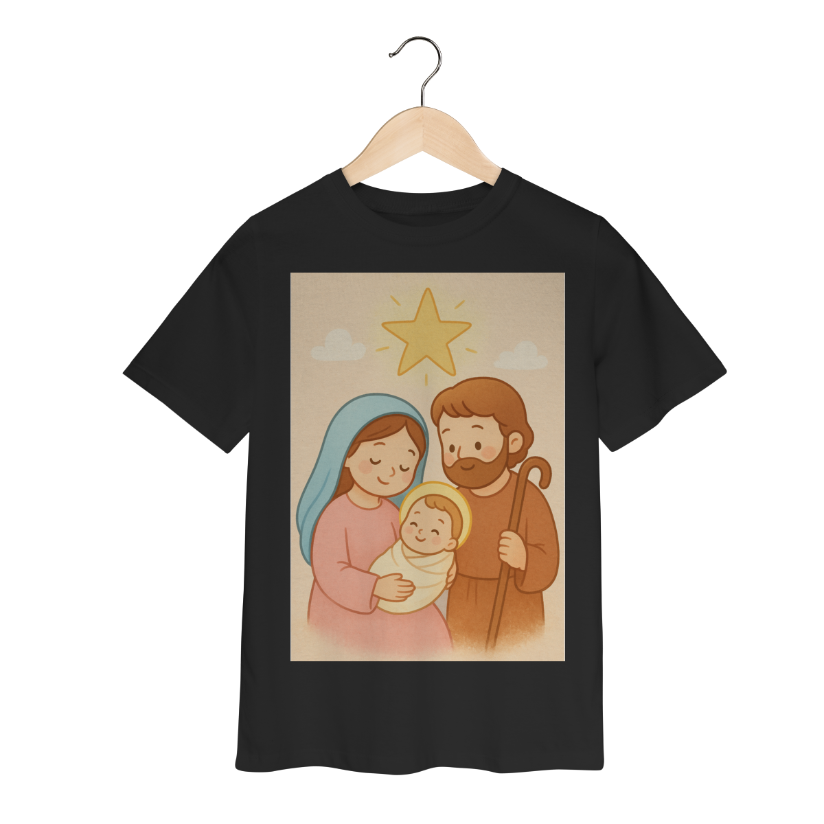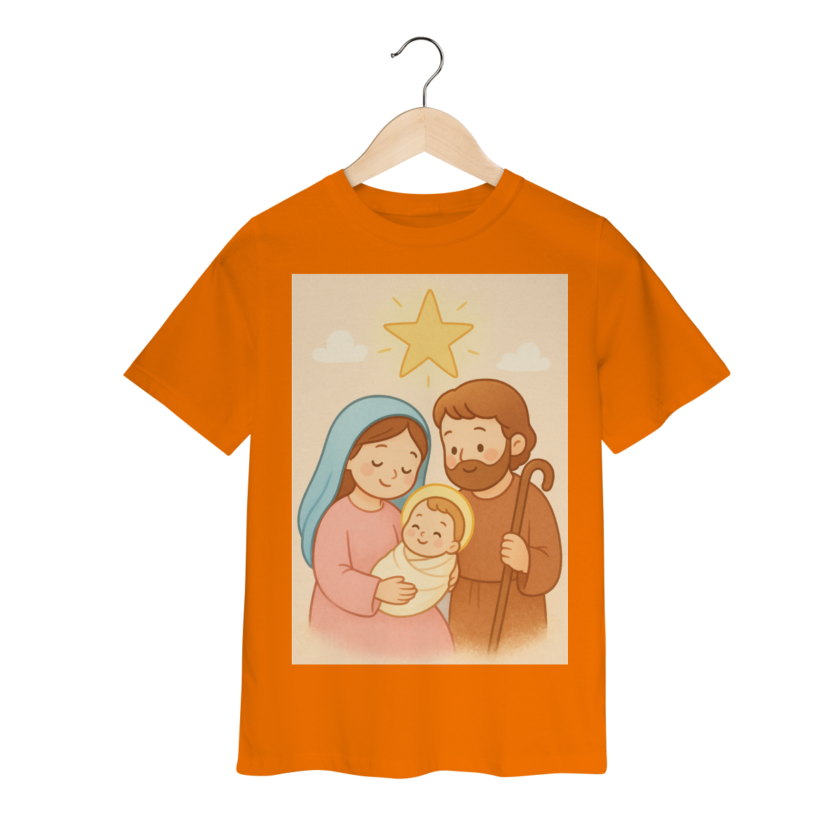 A Camiseta Classic Infantil “Natal é Jesus” foi criada para levar o verdadeiro espírito do Natal para os pequenos de forma doce, leve e cheia de significado. Com a estampa da Sagrada Família em estilo infantil, essa peça encanta pelas cores suaves e pelo visual delicado, transmitindo a mensagem do nascimento de Jesus com amor e ternura.