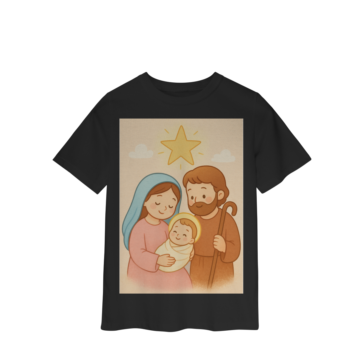 • Estampa exclusiva da Sagrada Família em versão infantil