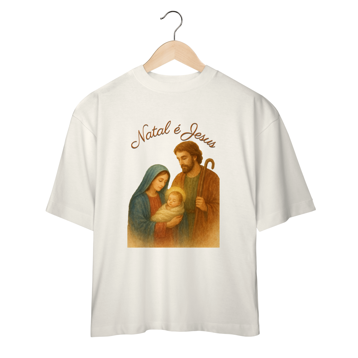A Camiseta Oversized “Natal é Jesus” é a escolha perfeita para quem ama estilo moderno, conforto absoluto e uma mensagem de fé poderosa. Com a estampa da Sagrada Família em arte suave e marcante, essa peça traduz o verdadeiro espírito do Natal em uma proposta atual e despojada.