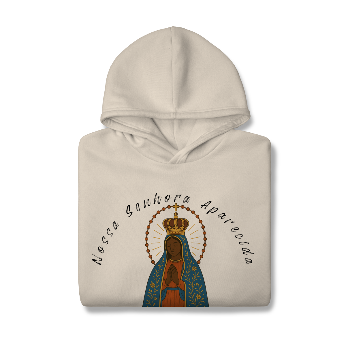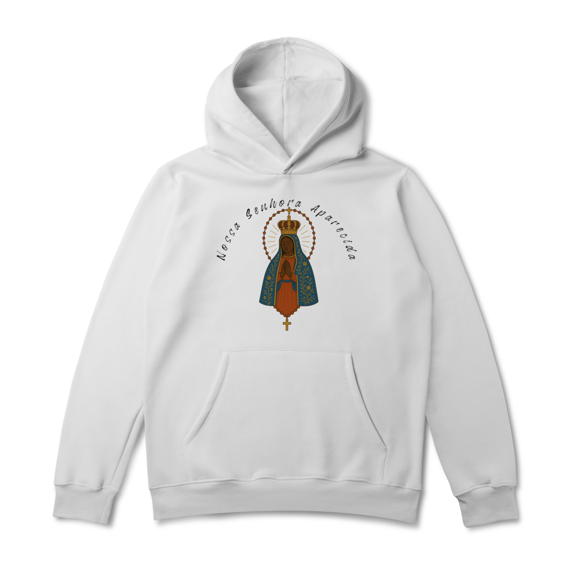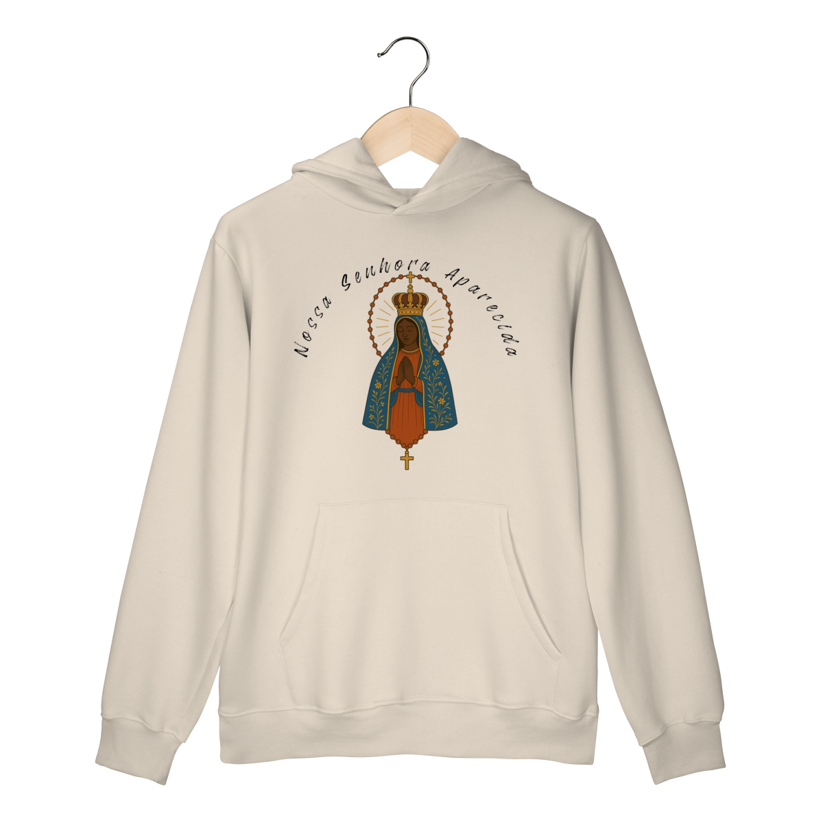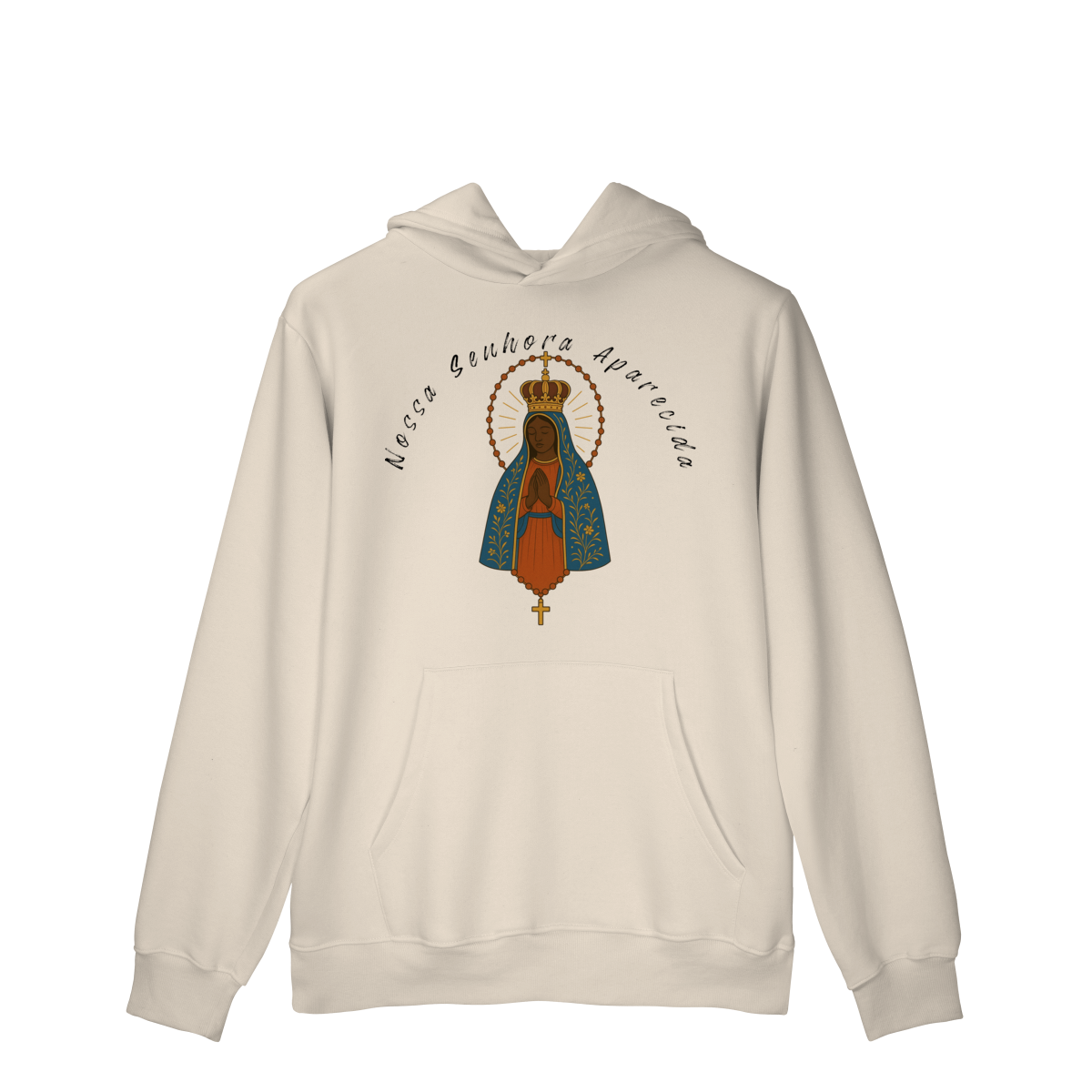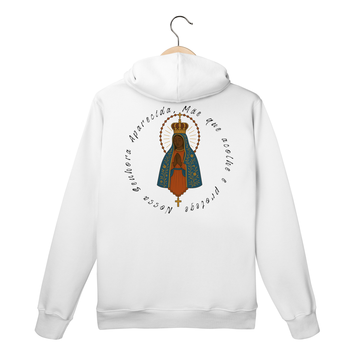 Um moletom para quem deseja carregar a proteção e o amor de Nossa Senhora Aparecida em todas as ocasiões.