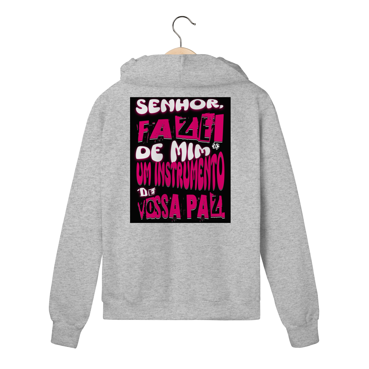 O Moletom Prime com Zíper combina praticidade, estilo e propósito. Confeccionado em tecido macio e resistente, proporciona aquecimento e bem-estar, mantendo total liberdade de movimento. A estampa “Instrumento de Paz”, inspirada na Oração de São Francisco, traz um toque de espiritualidade profunda, carregando a mensagem de serenidade e transformação que marcou uma das orações mais conhecidas do mundo cristão.