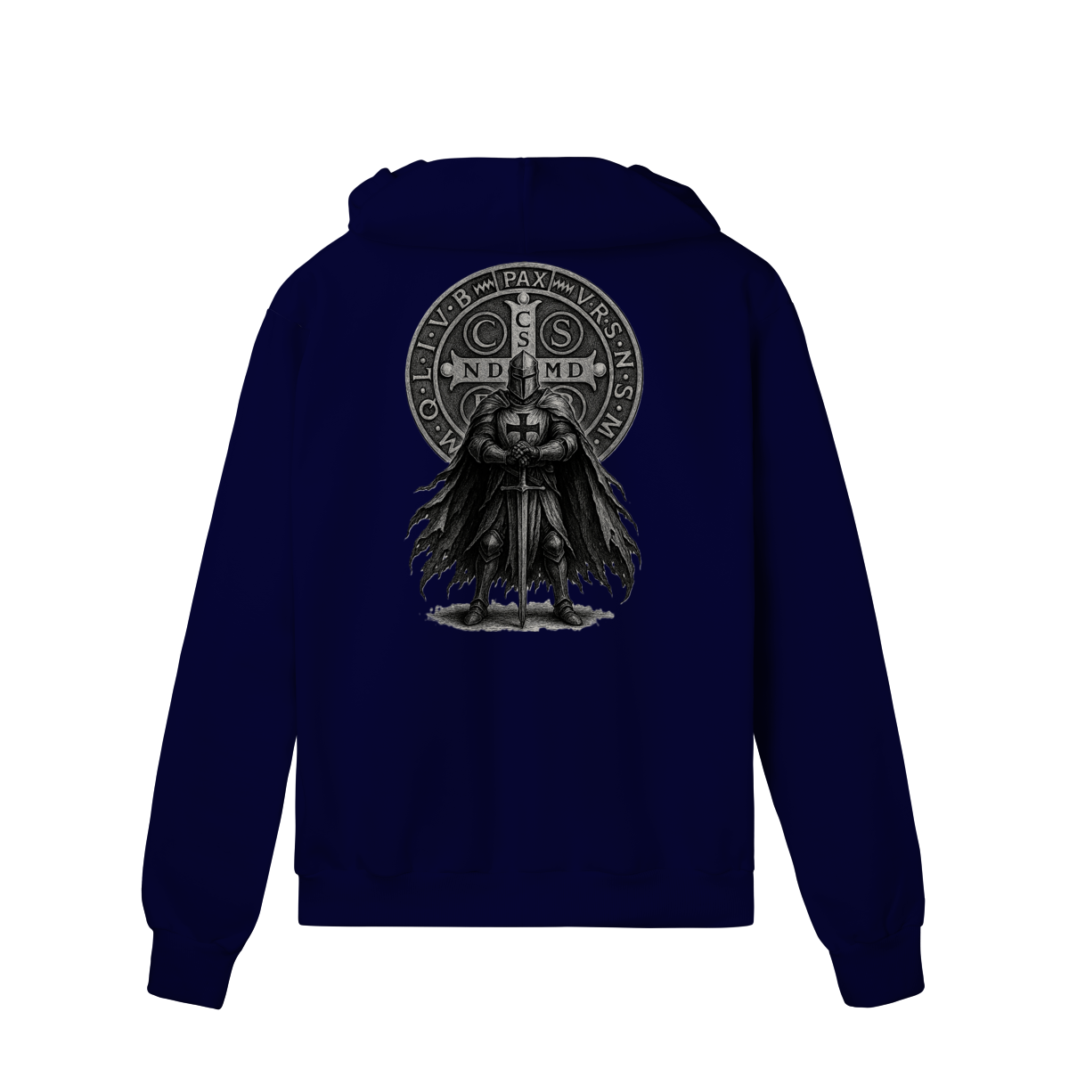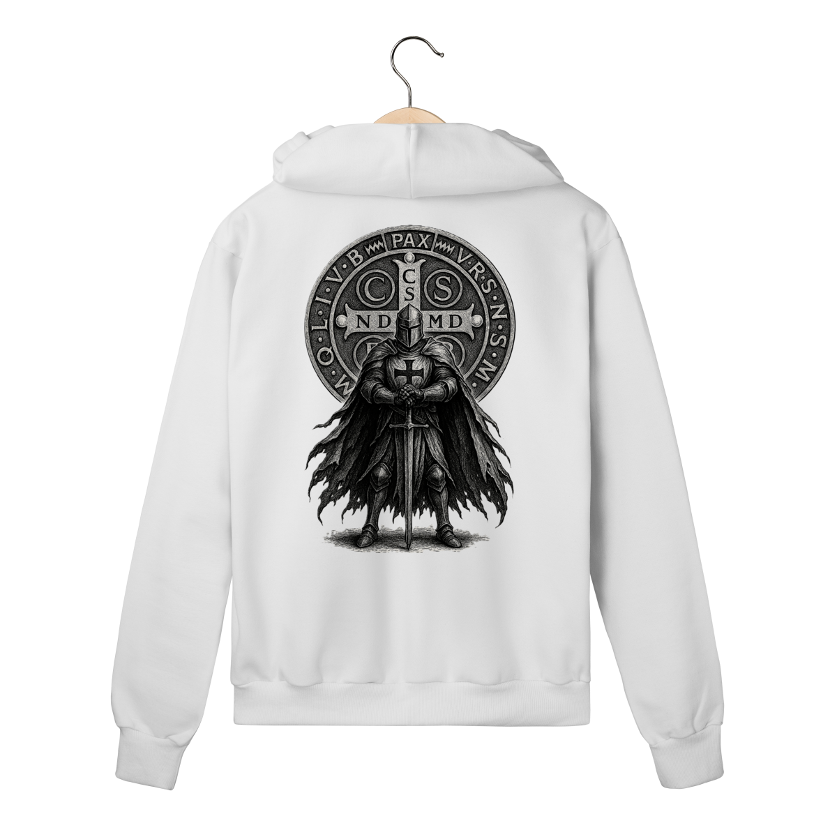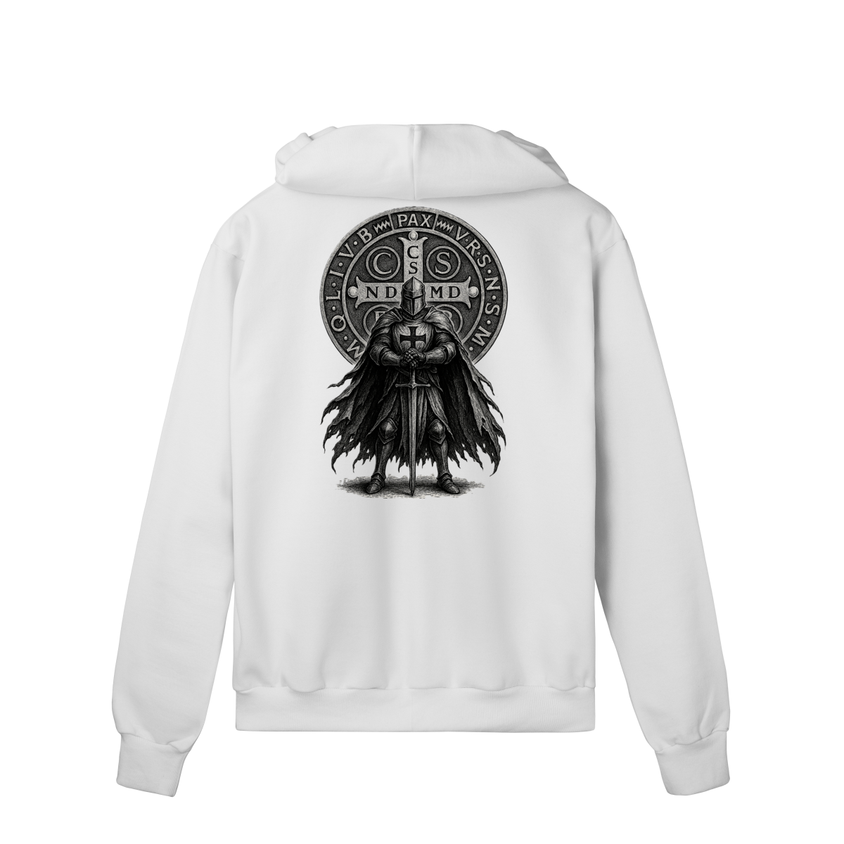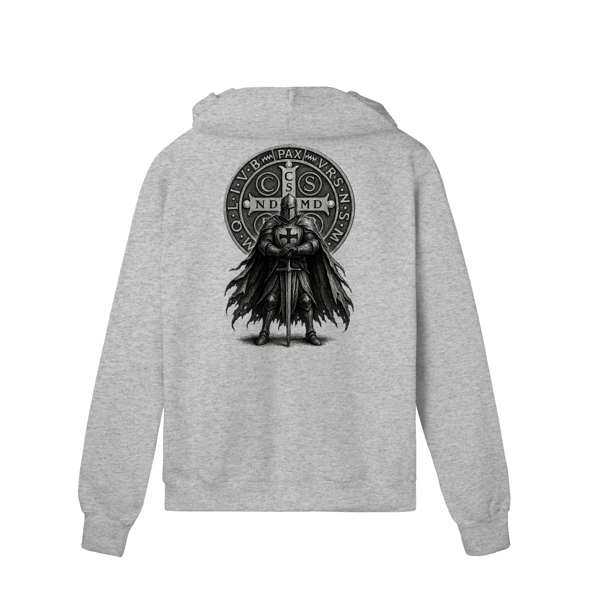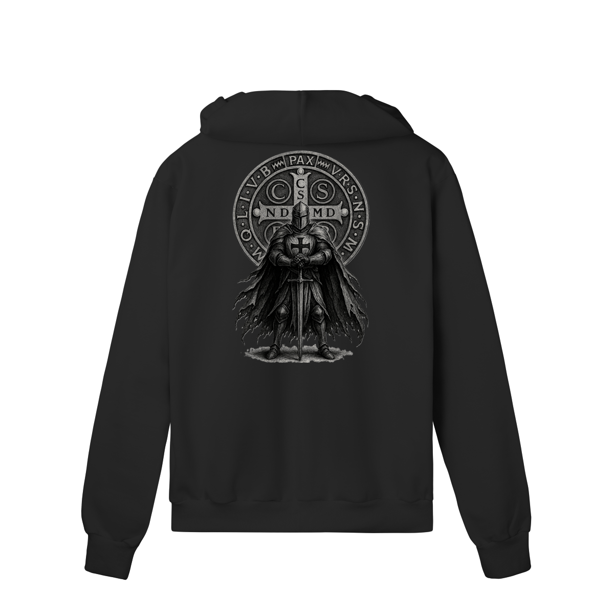 • Estampa única nas costas (Cavaleiro + Medalha de São Bento)