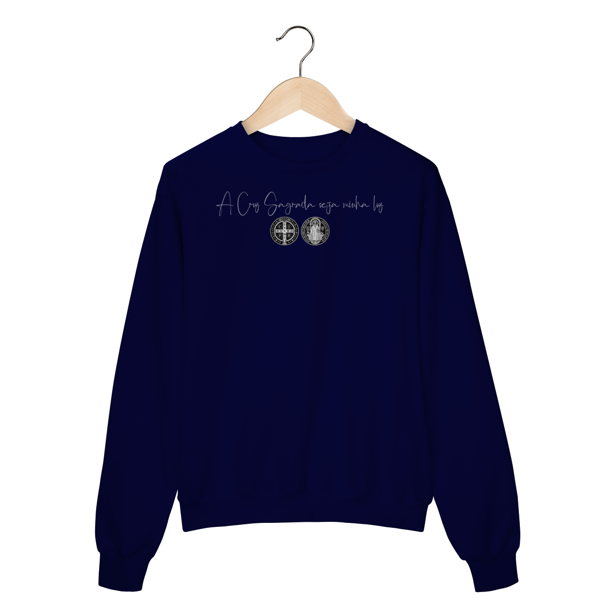 Confeccionado em tecido de alta qualidade, o moletom oferece toque macio, excelente caimento e durabilidade, sendo perfeito para uso cotidiano ou momentos de devoção.