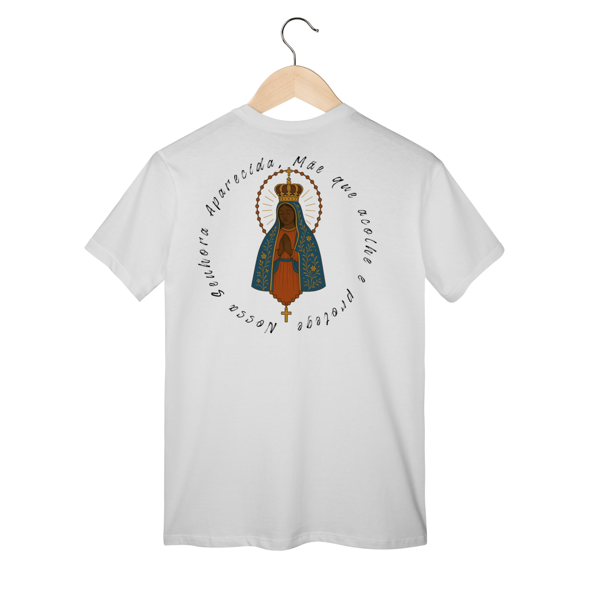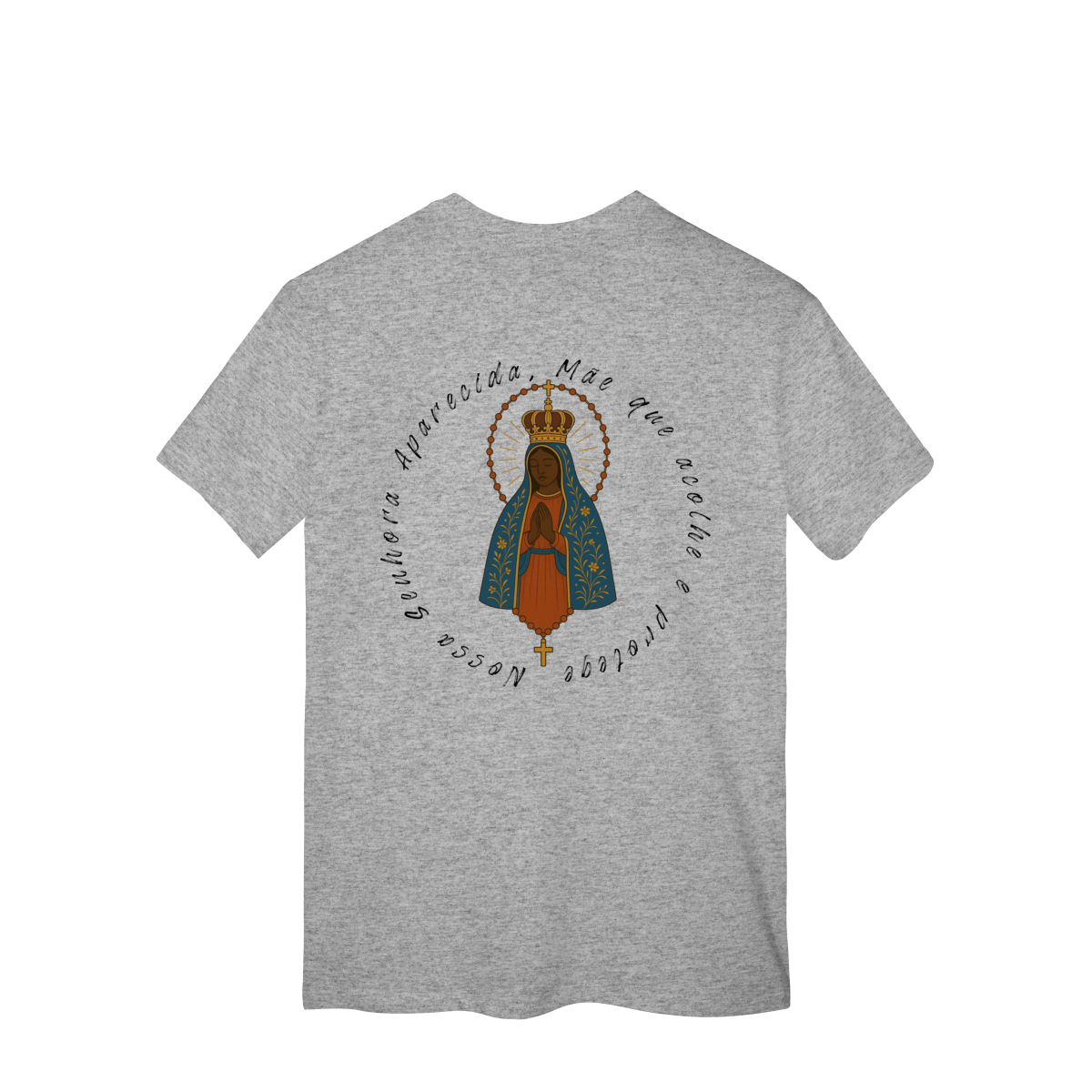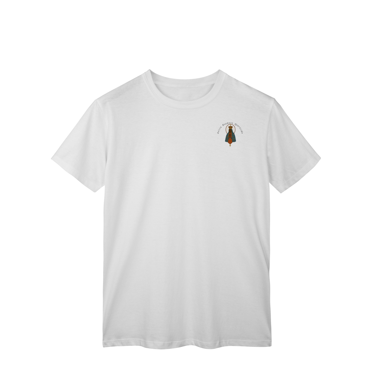 T-Shirt Classic – Nossa Senhora Aparecida (Emblema na Frente + Estampa Grande nas Costas)