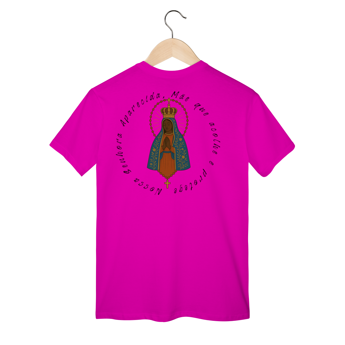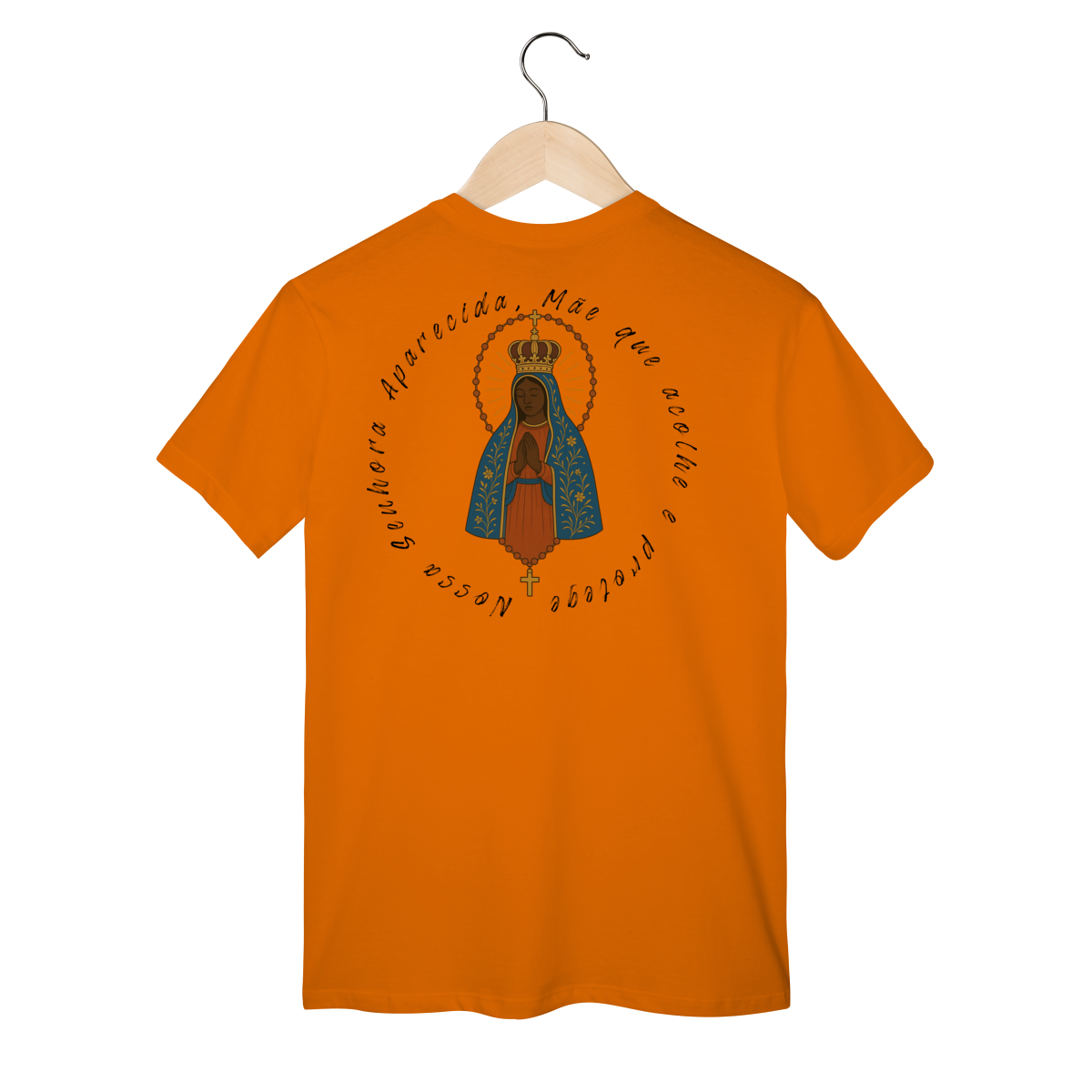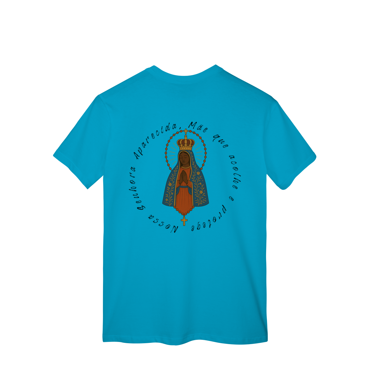 T-Shirt Classic – Nossa Senhora Aparecida (Emblema na Frente + Estampa Grande nas Costas)