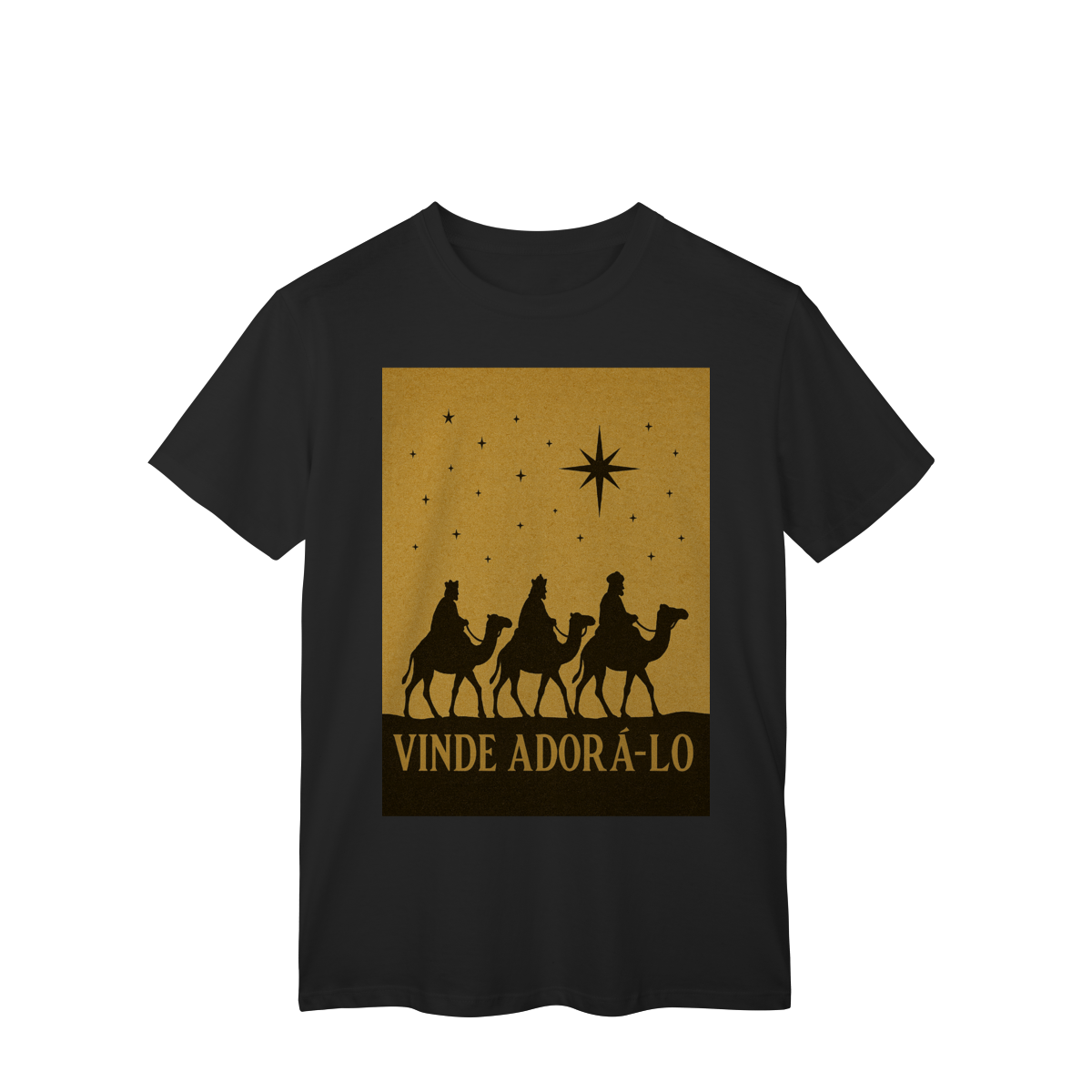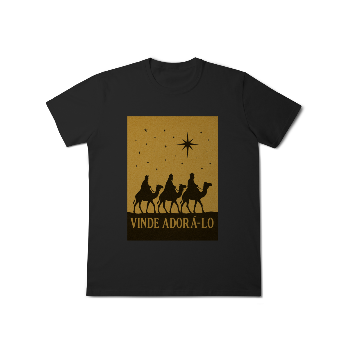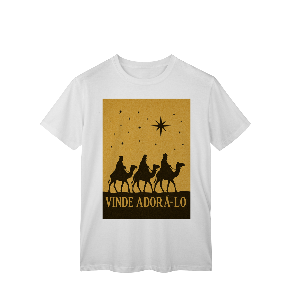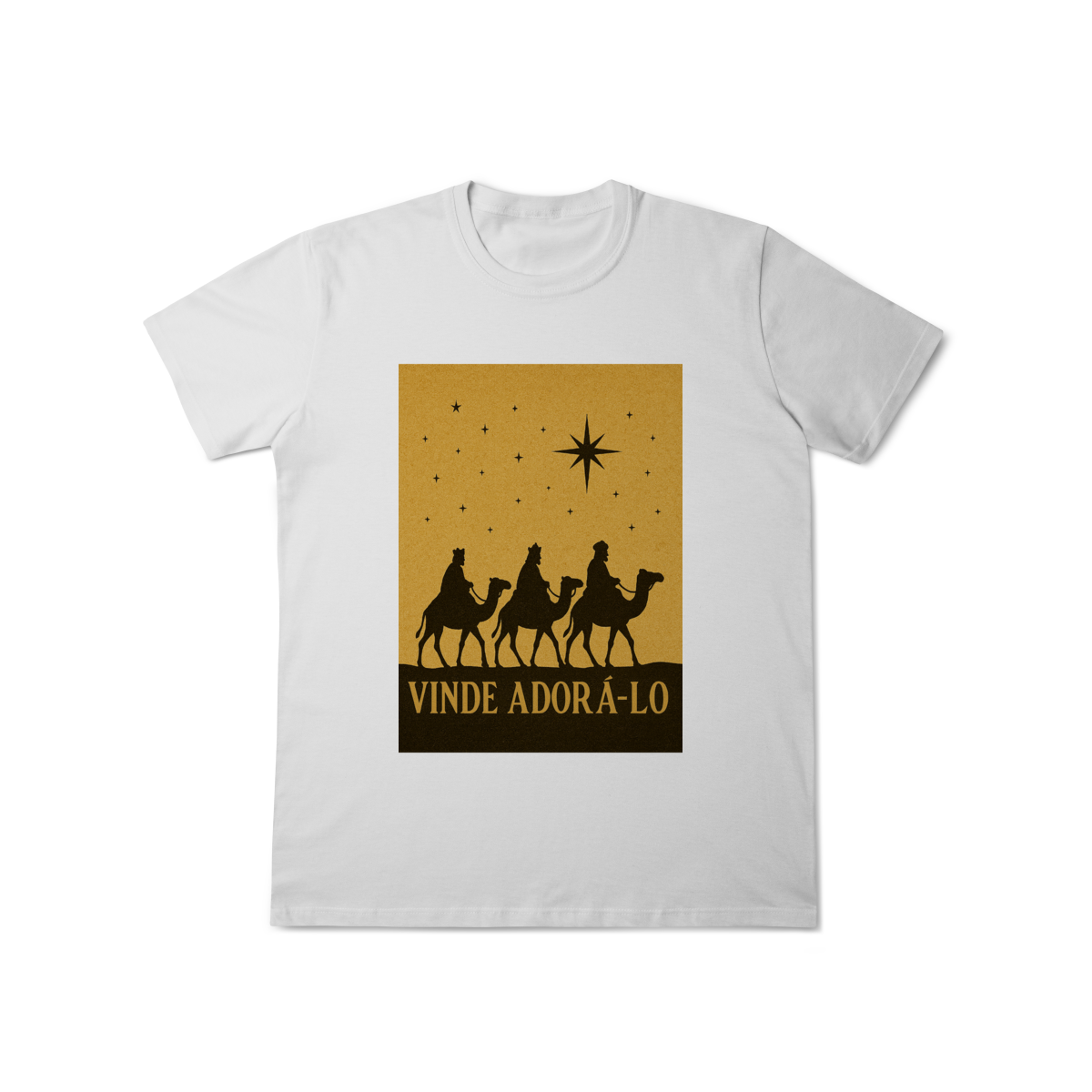 A T-Shirt Classic “Vinde Adorá-Lo” é uma peça atemporal que transmite fé, reverência e o verdadeiro significado do Natal. Inspirada na caminhada dos Três Reis Magos guiados pela Estrela de Belém, sua estampa em silhueta traz um visual clássico e simbólico, convidando à adoração e à contemplação de Cristo.