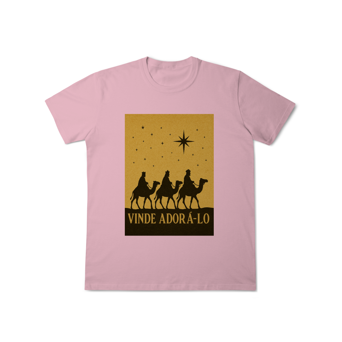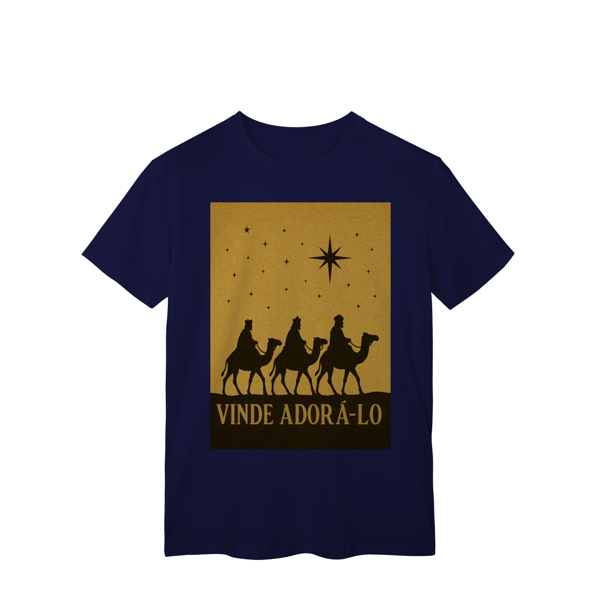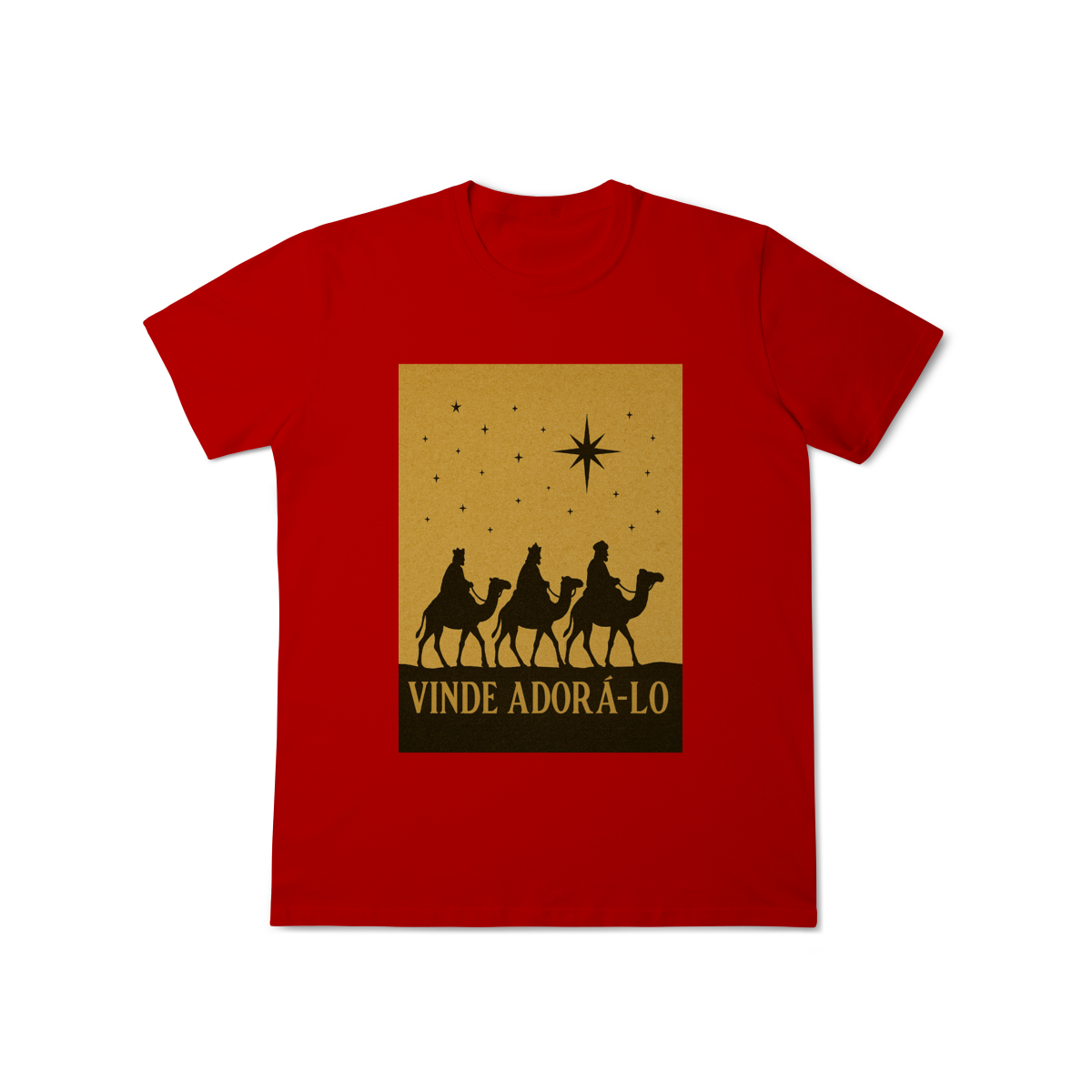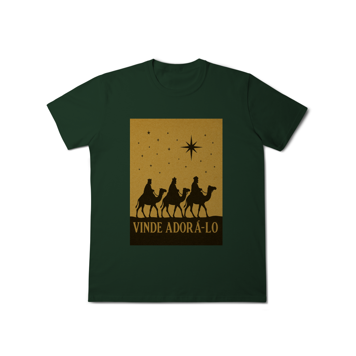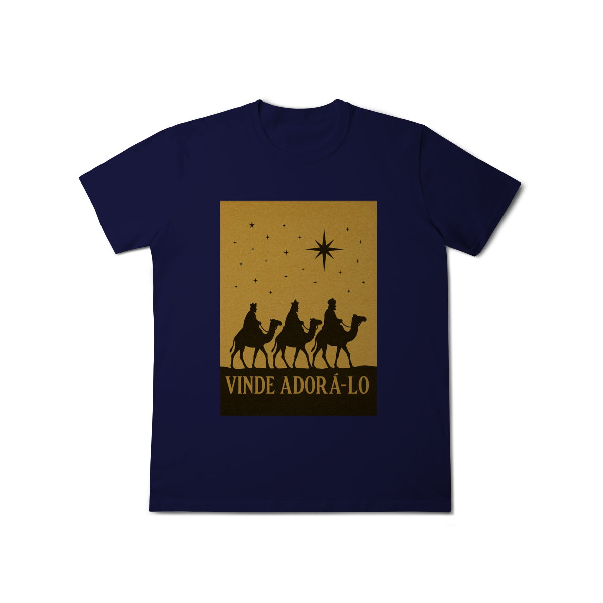 A T-Shirt Classic “Vinde Adorá-Lo” é uma peça atemporal que transmite fé, reverência e o verdadeiro significado do Natal. Inspirada na caminhada dos Três Reis Magos guiados pela Estrela de Belém, sua estampa em silhueta traz um visual clássico e simbólico, convidando à adoração e à contemplação de Cristo.