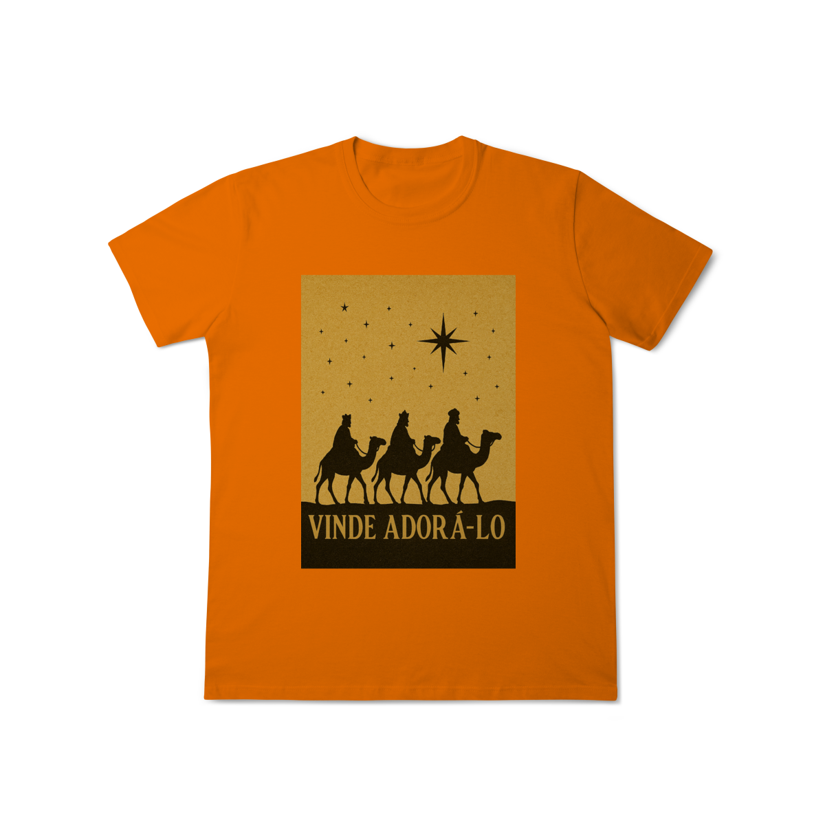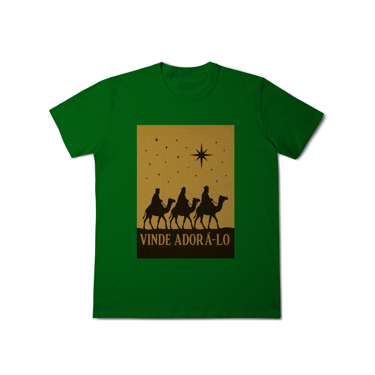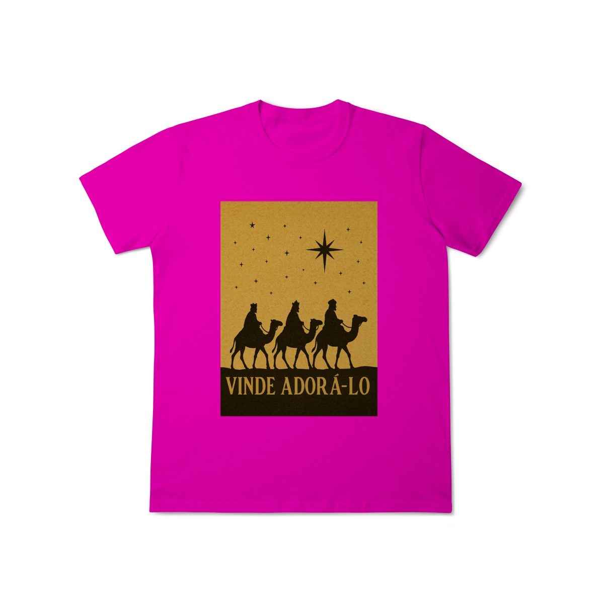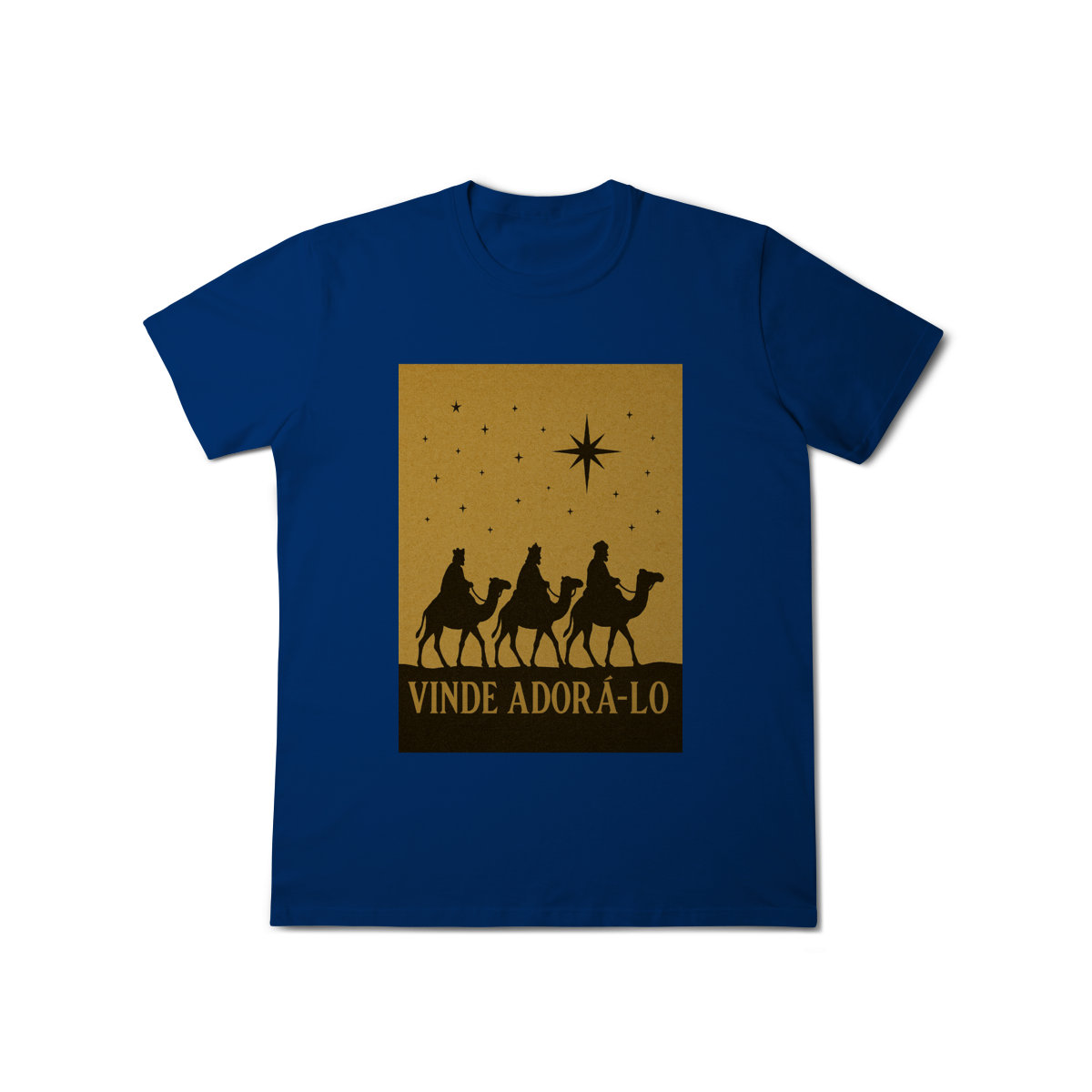 A T-Shirt Classic “Vinde Adorá-Lo” é uma peça atemporal que transmite fé, reverência e o verdadeiro significado do Natal. Inspirada na caminhada dos Três Reis Magos guiados pela Estrela de Belém, sua estampa em silhueta traz um visual clássico e simbólico, convidando à adoração e à contemplação de Cristo.