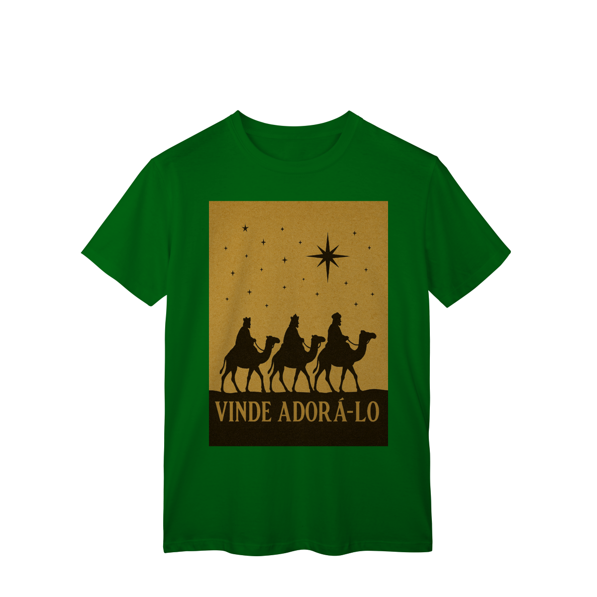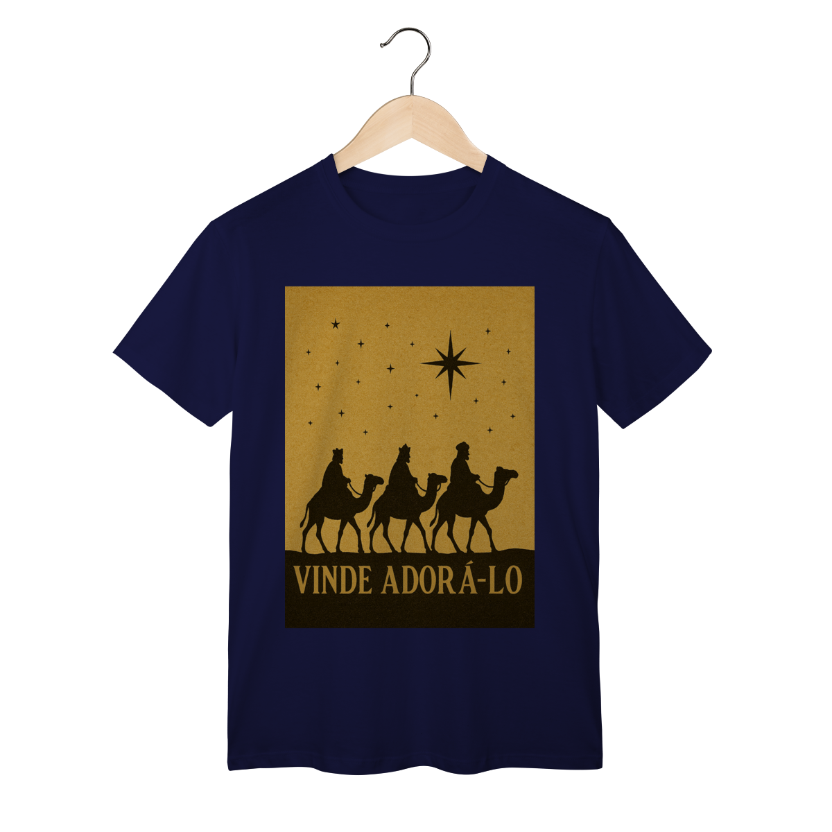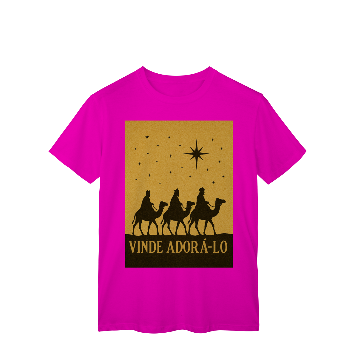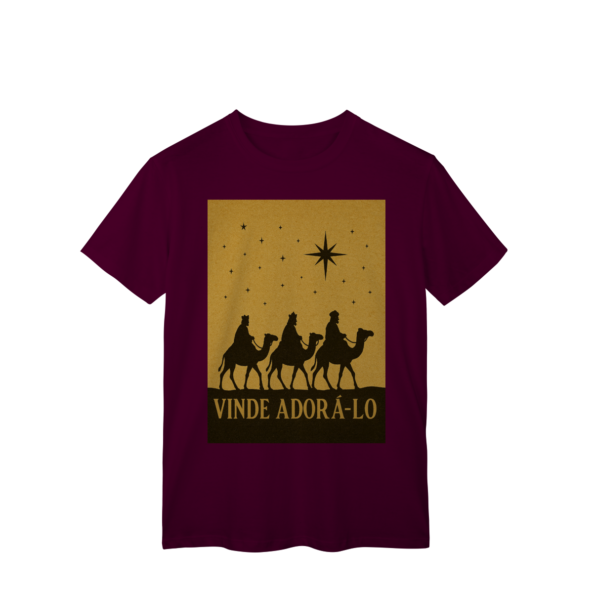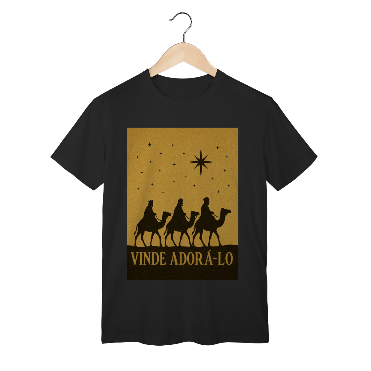A T-Shirt Classic “Vinde Adorá-Lo” é uma peça atemporal que transmite fé, reverência e o verdadeiro significado do Natal. Inspirada na caminhada dos Três Reis Magos guiados pela Estrela de Belém, sua estampa em silhueta traz um visual clássico e simbólico, convidando à adoração e à contemplação de Cristo.
