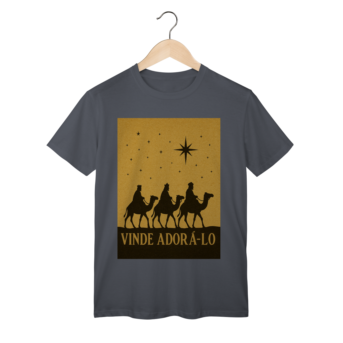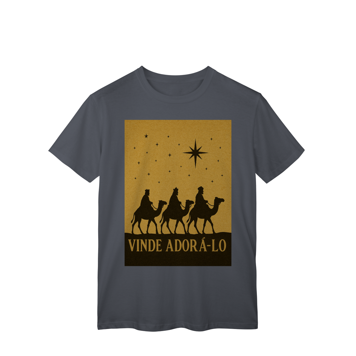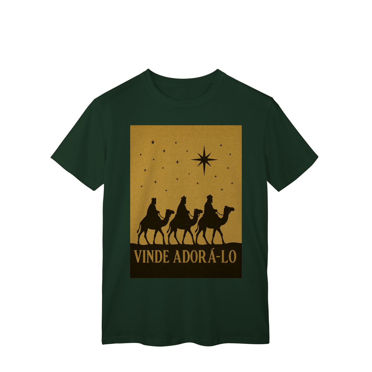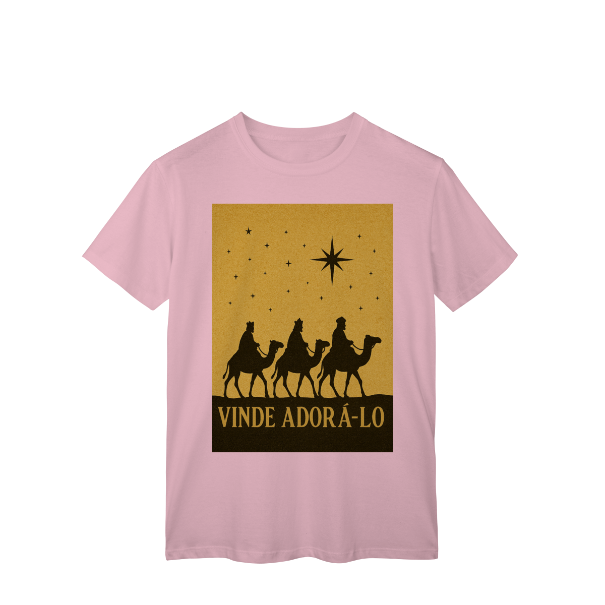 A T-Shirt Classic “Vinde Adorá-Lo” é uma peça atemporal que transmite fé, reverência e o verdadeiro significado do Natal. Inspirada na caminhada dos Três Reis Magos guiados pela Estrela de Belém, sua estampa em silhueta traz um visual clássico e simbólico, convidando à adoração e à contemplação de Cristo.