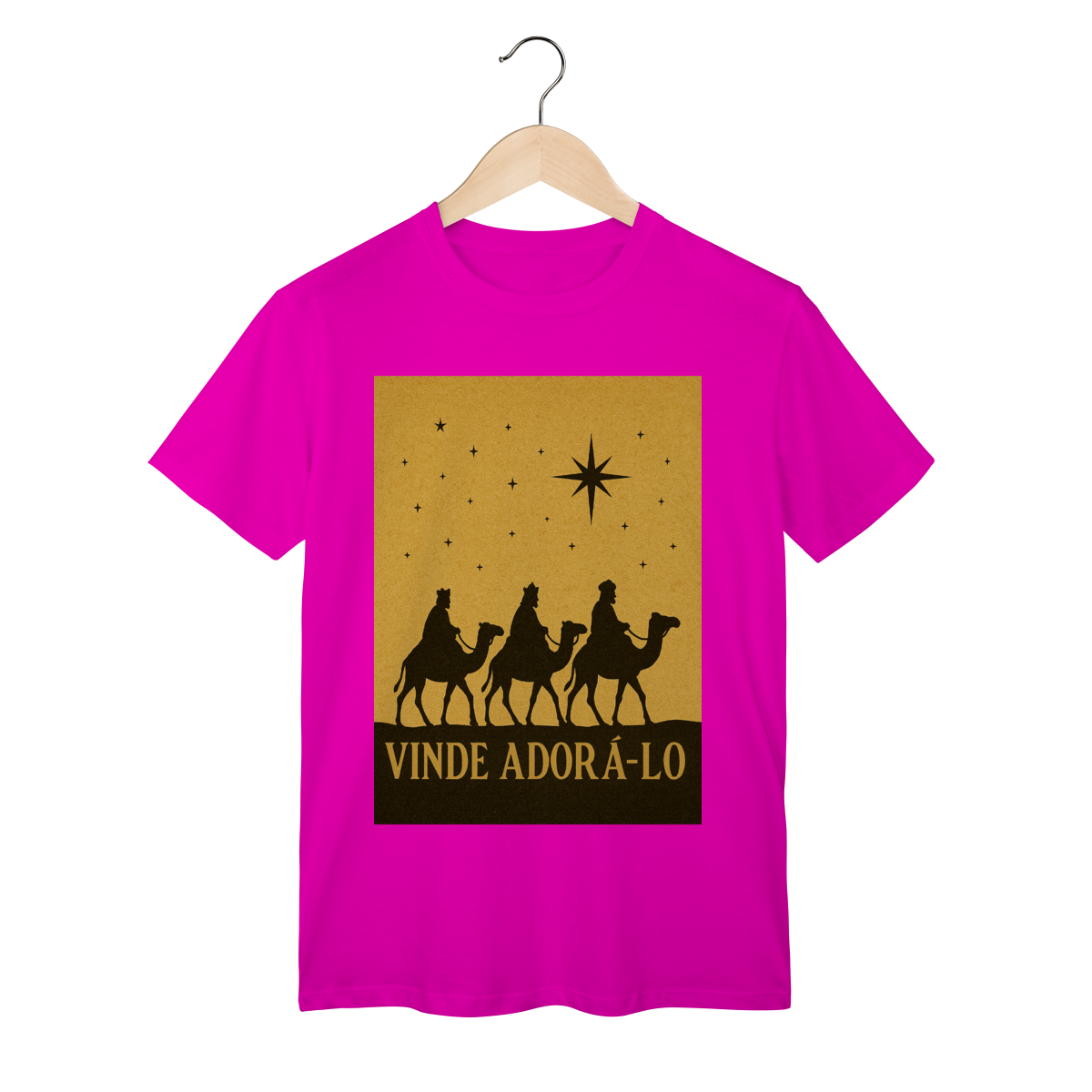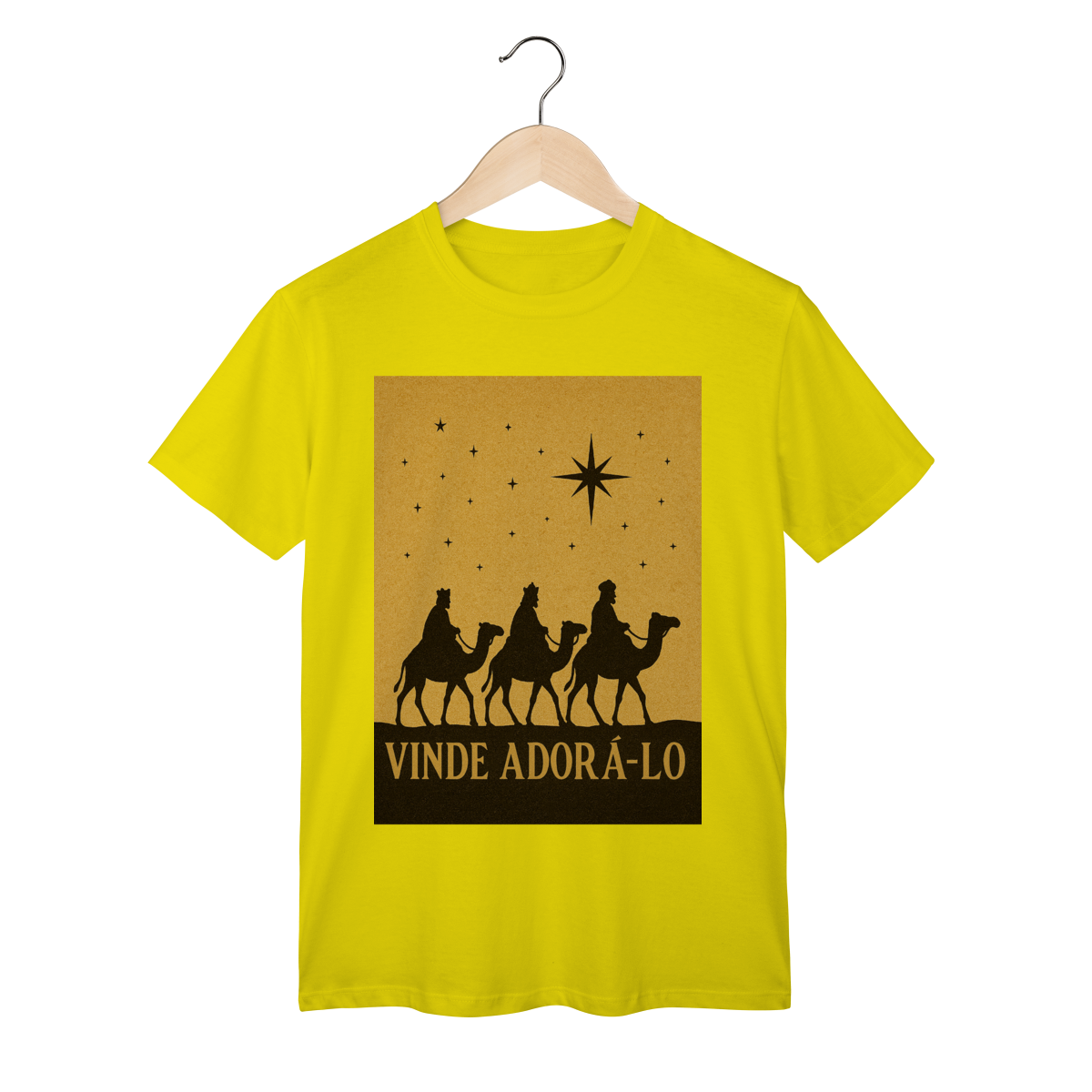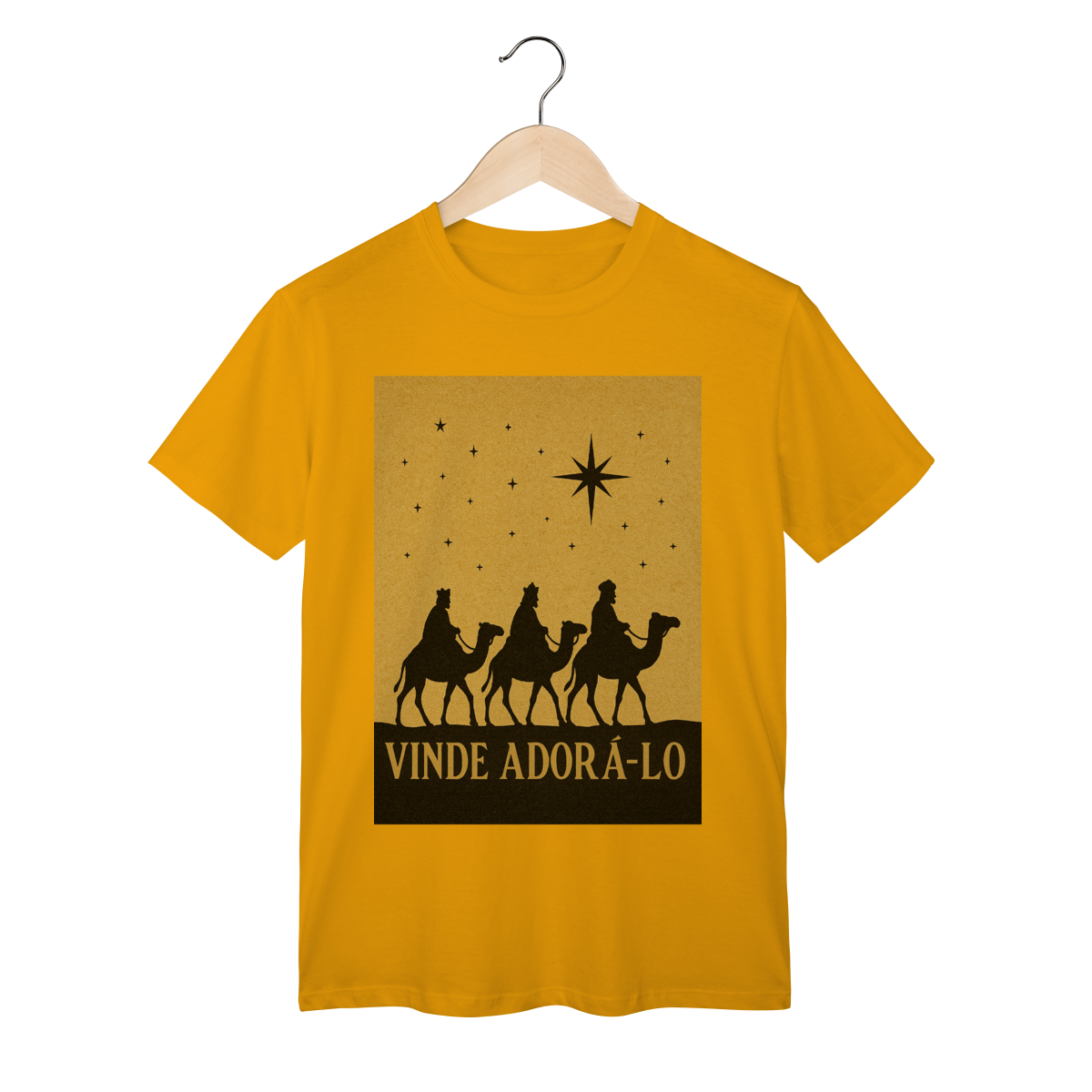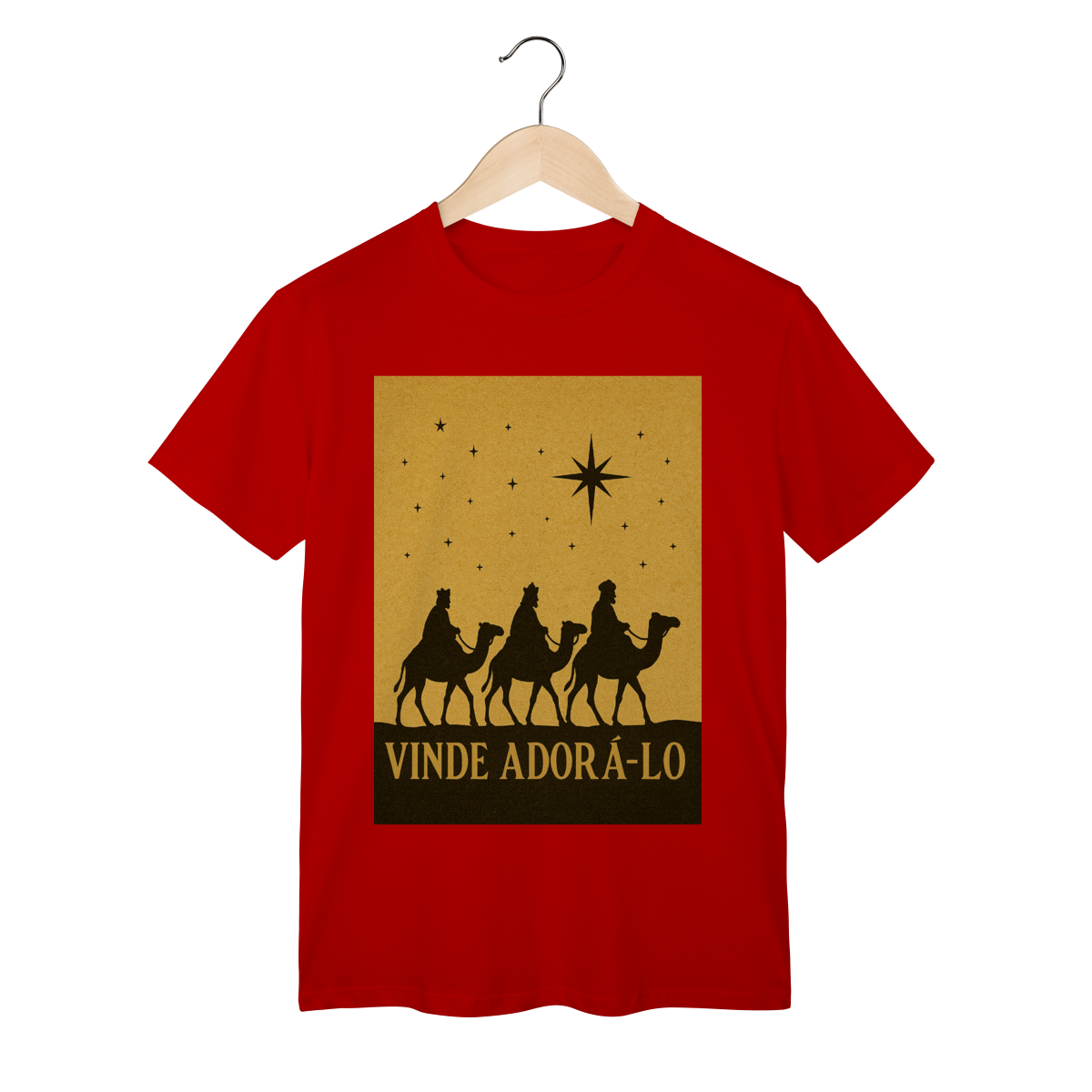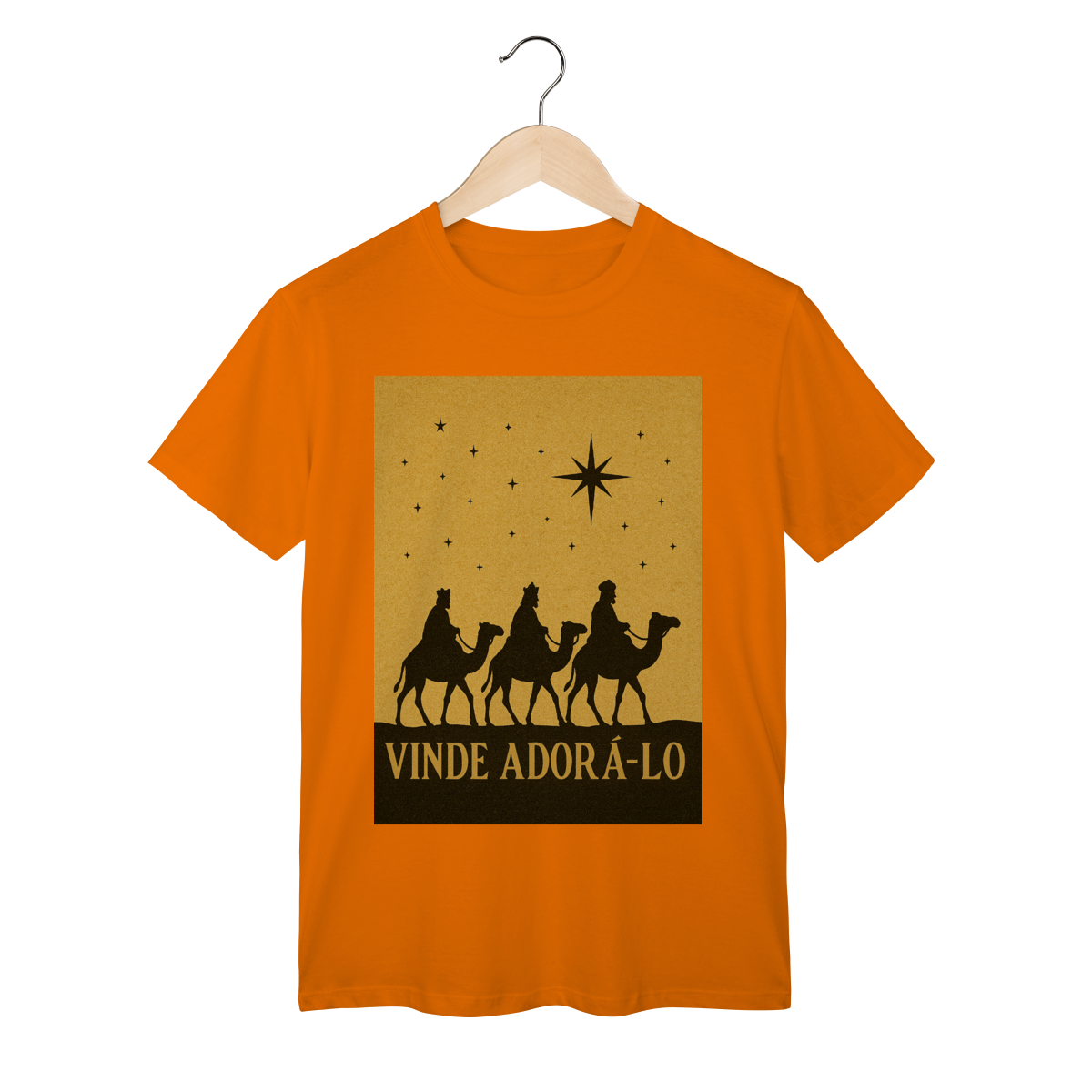 A T-Shirt Classic “Vinde Adorá-Lo” é uma peça atemporal que transmite fé, reverência e o verdadeiro significado do Natal. Inspirada na caminhada dos Três Reis Magos guiados pela Estrela de Belém, sua estampa em silhueta traz um visual clássico e simbólico, convidando à adoração e à contemplação de Cristo.