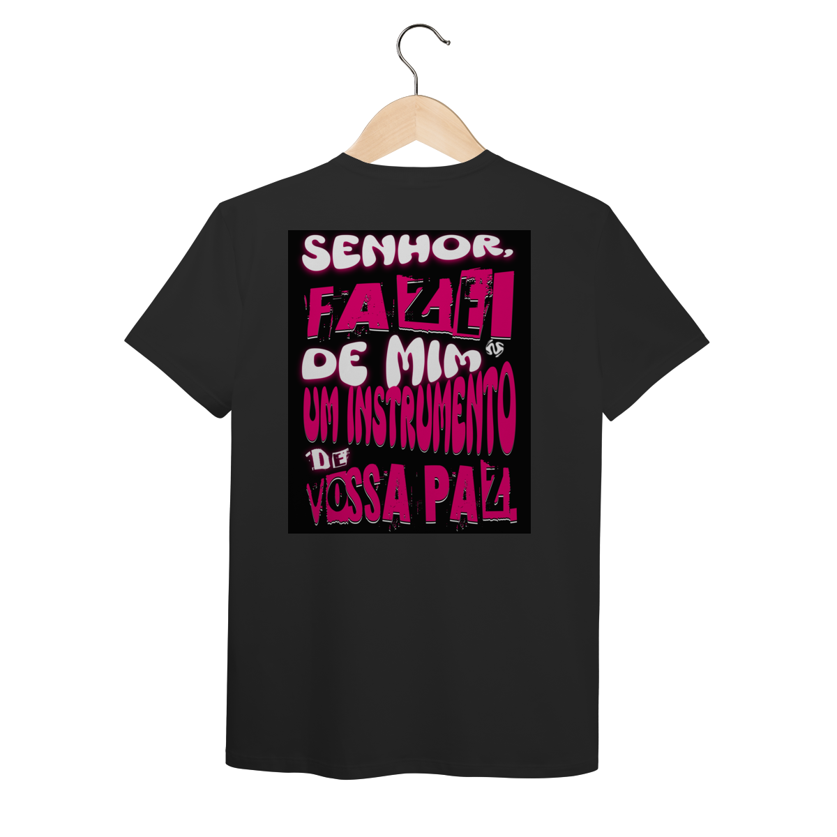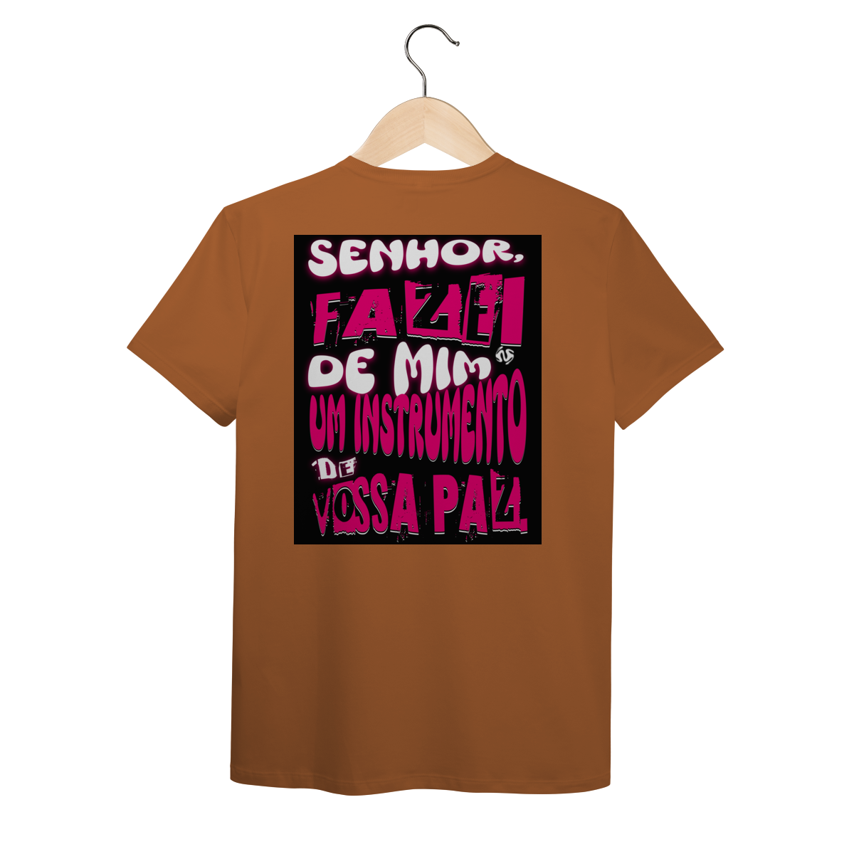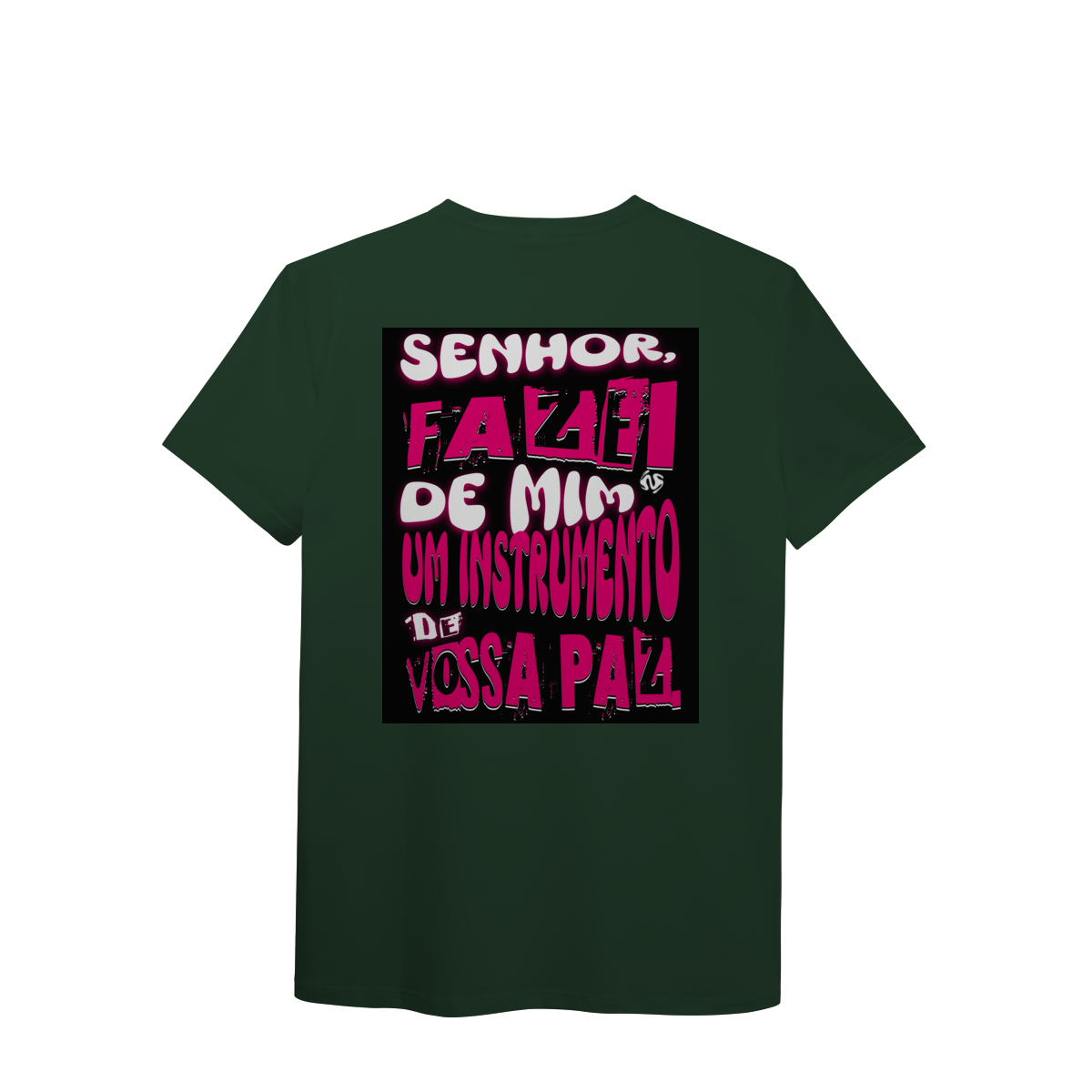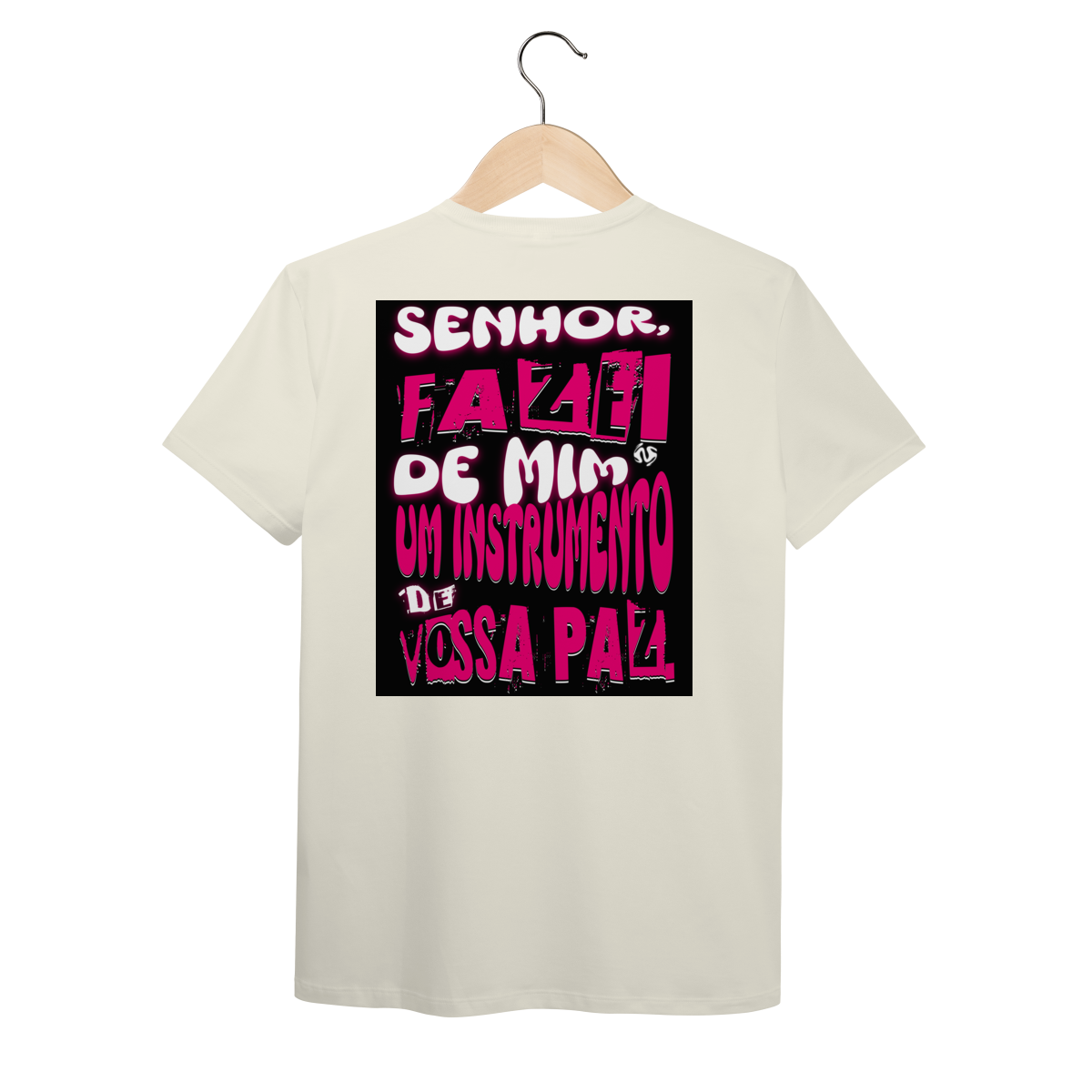 A estampa inspirada na oração de São Francisco — “Fazei de mim instrumento de vossa paz” — traz um símbolo profundo de entrega, amor e missão. Um convite diário para viver a fé de forma ativa e verdadeira.