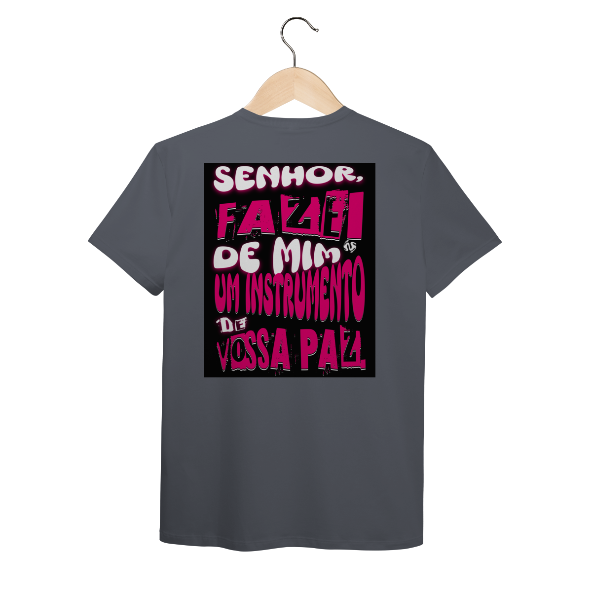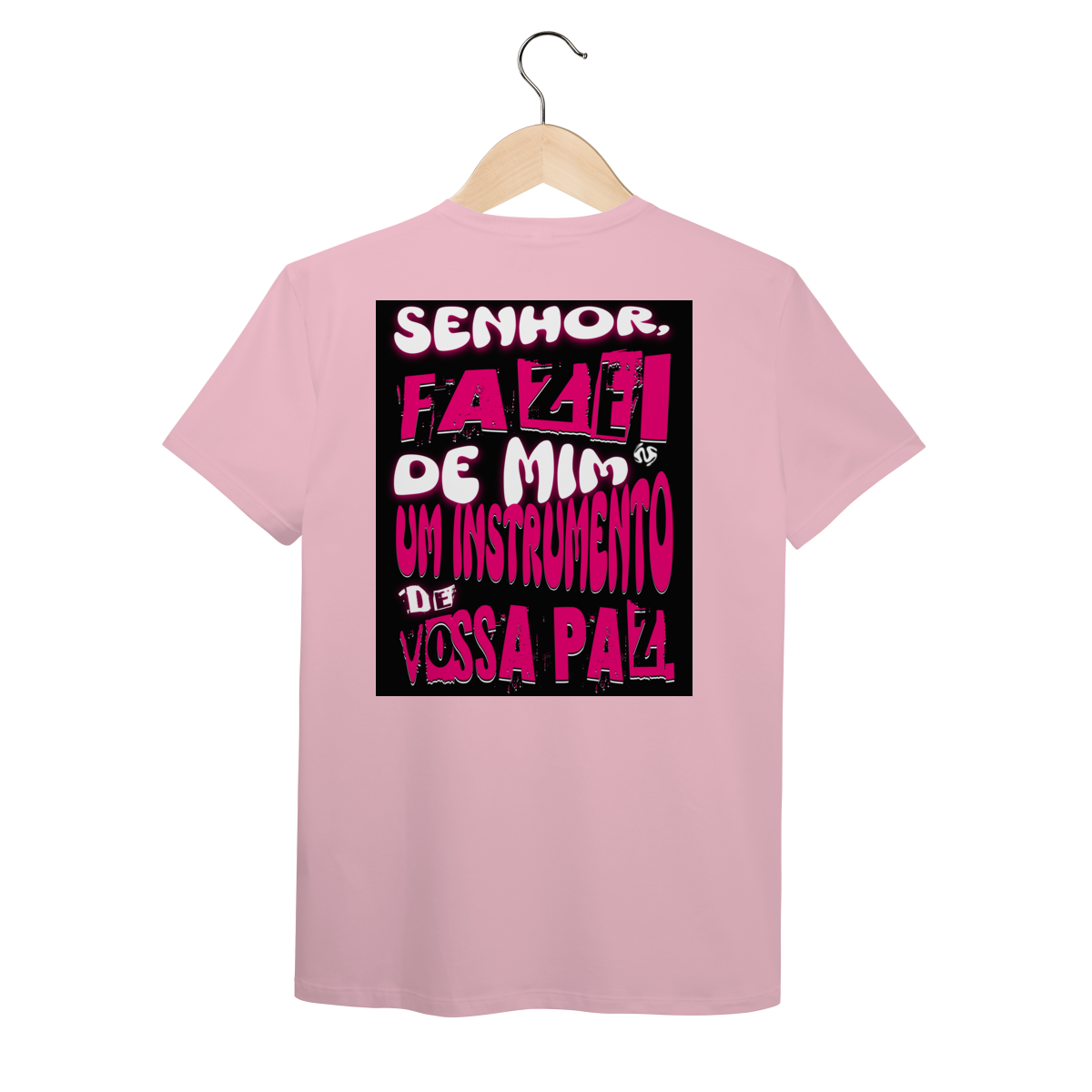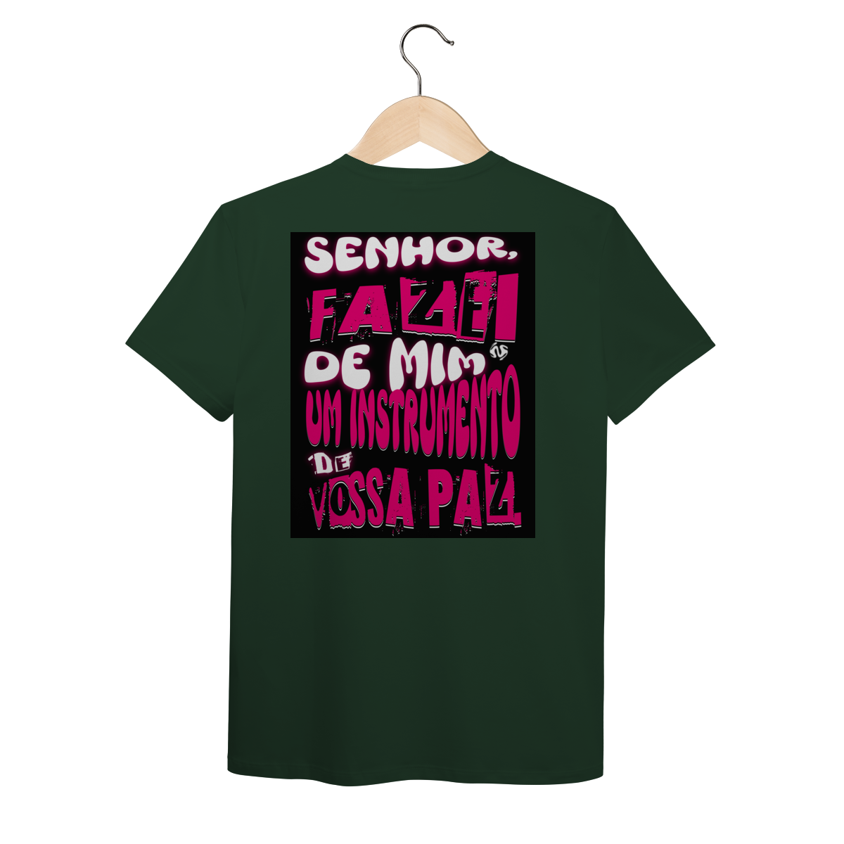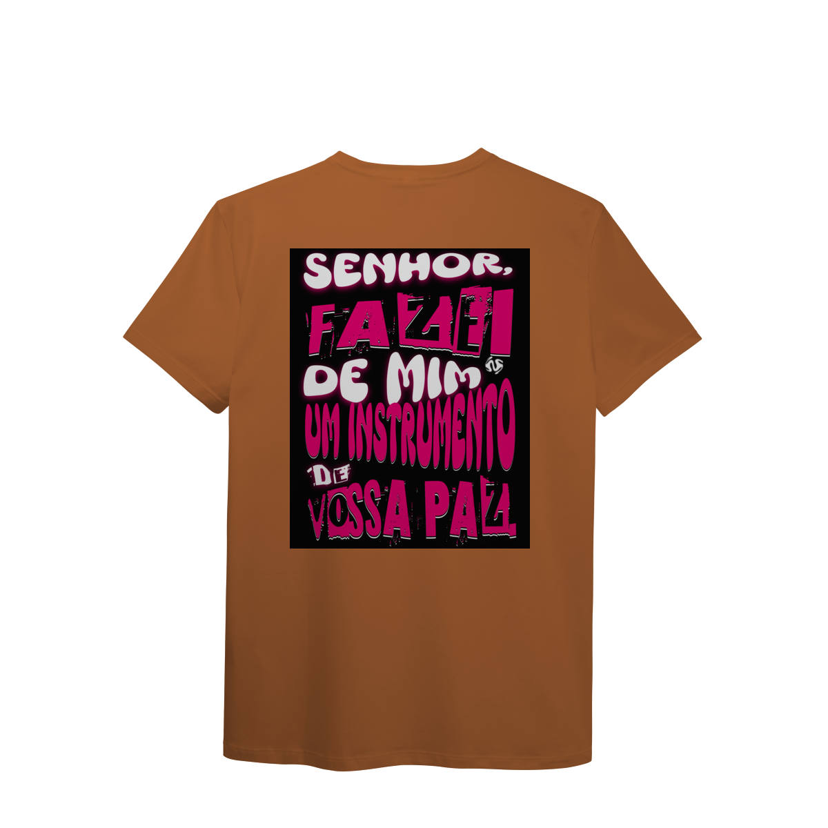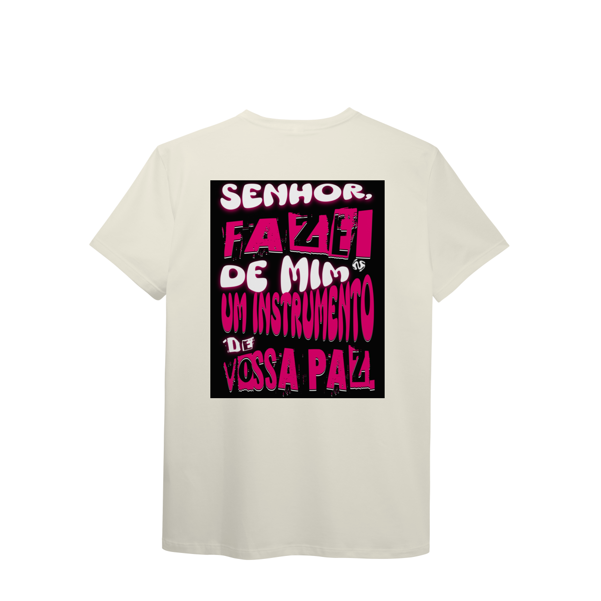 A estampa inspirada na oração de São Francisco — “Fazei de mim instrumento de vossa paz” — traz um símbolo profundo de entrega, amor e missão. Um convite diário para viver a fé de forma ativa e verdadeira.