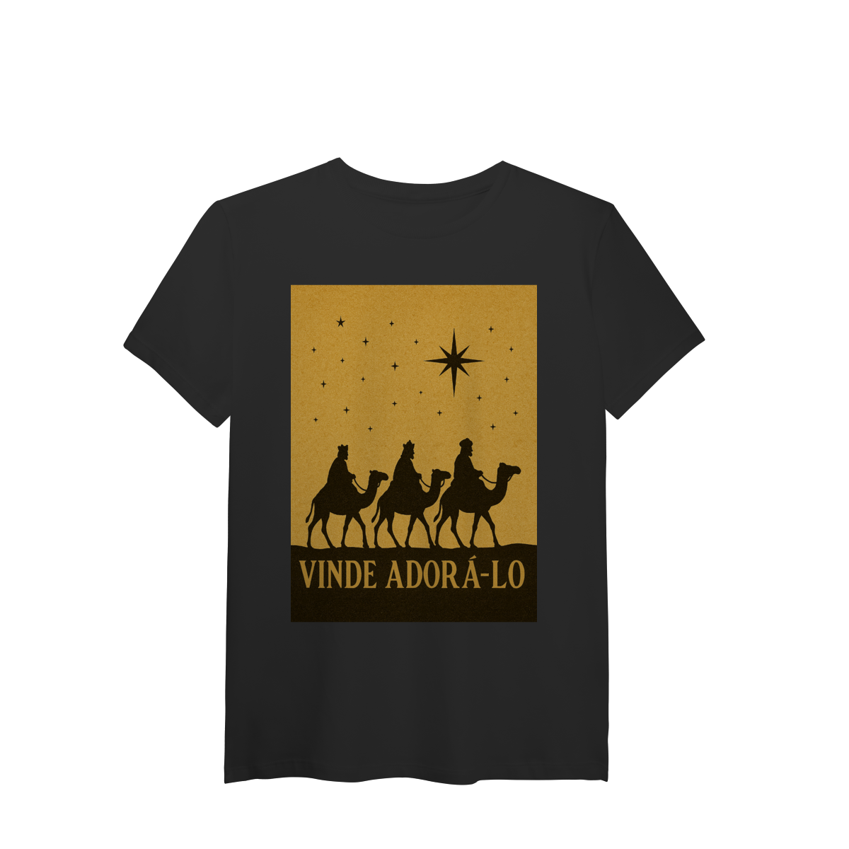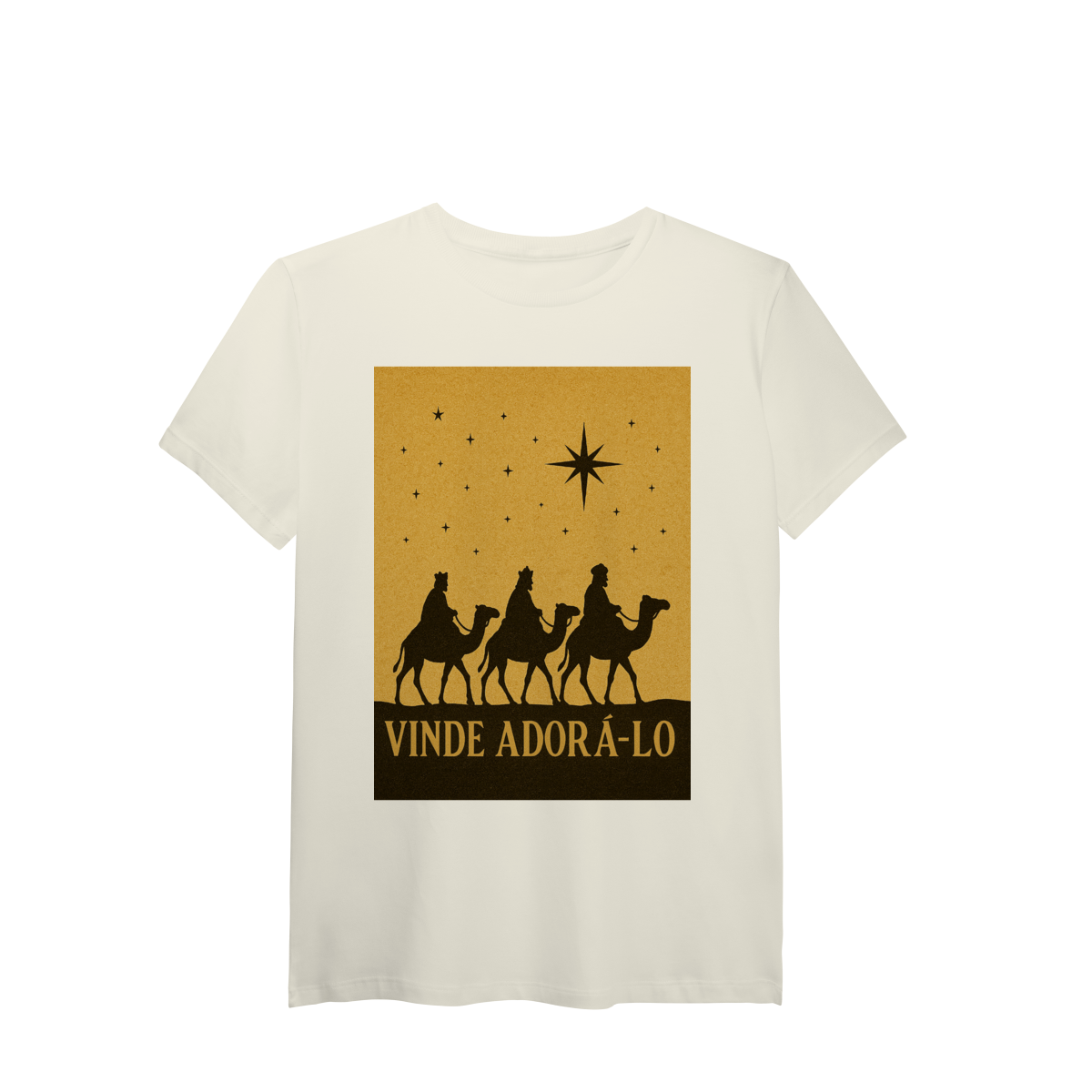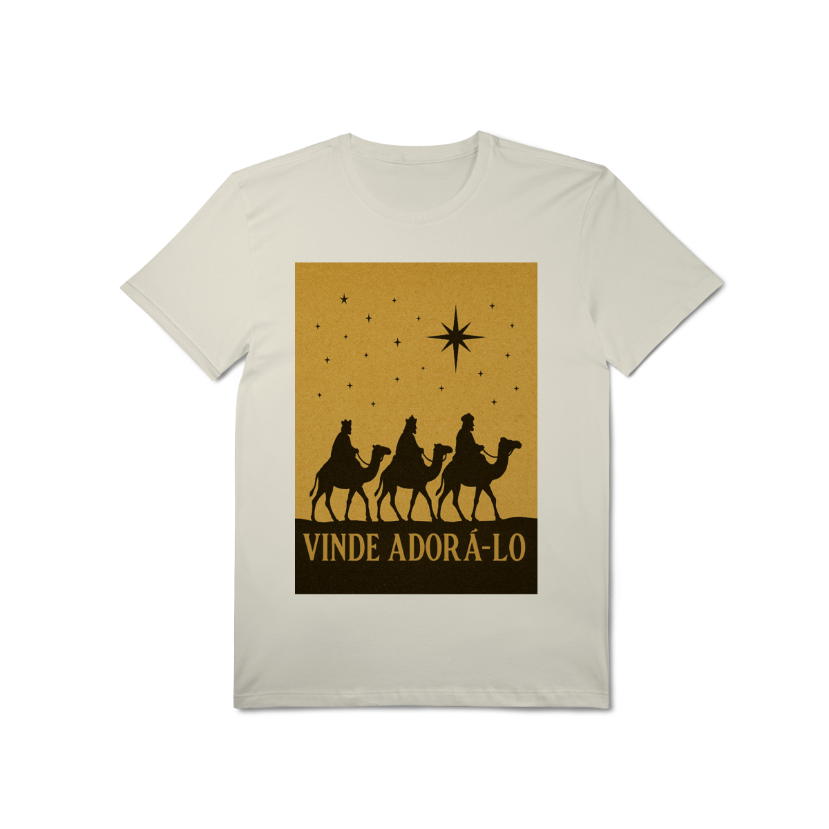 A T-Shirt Pima “Vinde Adorá-Lo” une fé, sofisticação e conforto premium em uma peça atemporal. Inspirada na cena dos Três Reis Magos seguindo a Estrela de Belém, a estampa em silhueta traz um visual clássico e elegante, que transmite reverência, adoração e o verdadeiro significado do Natal.