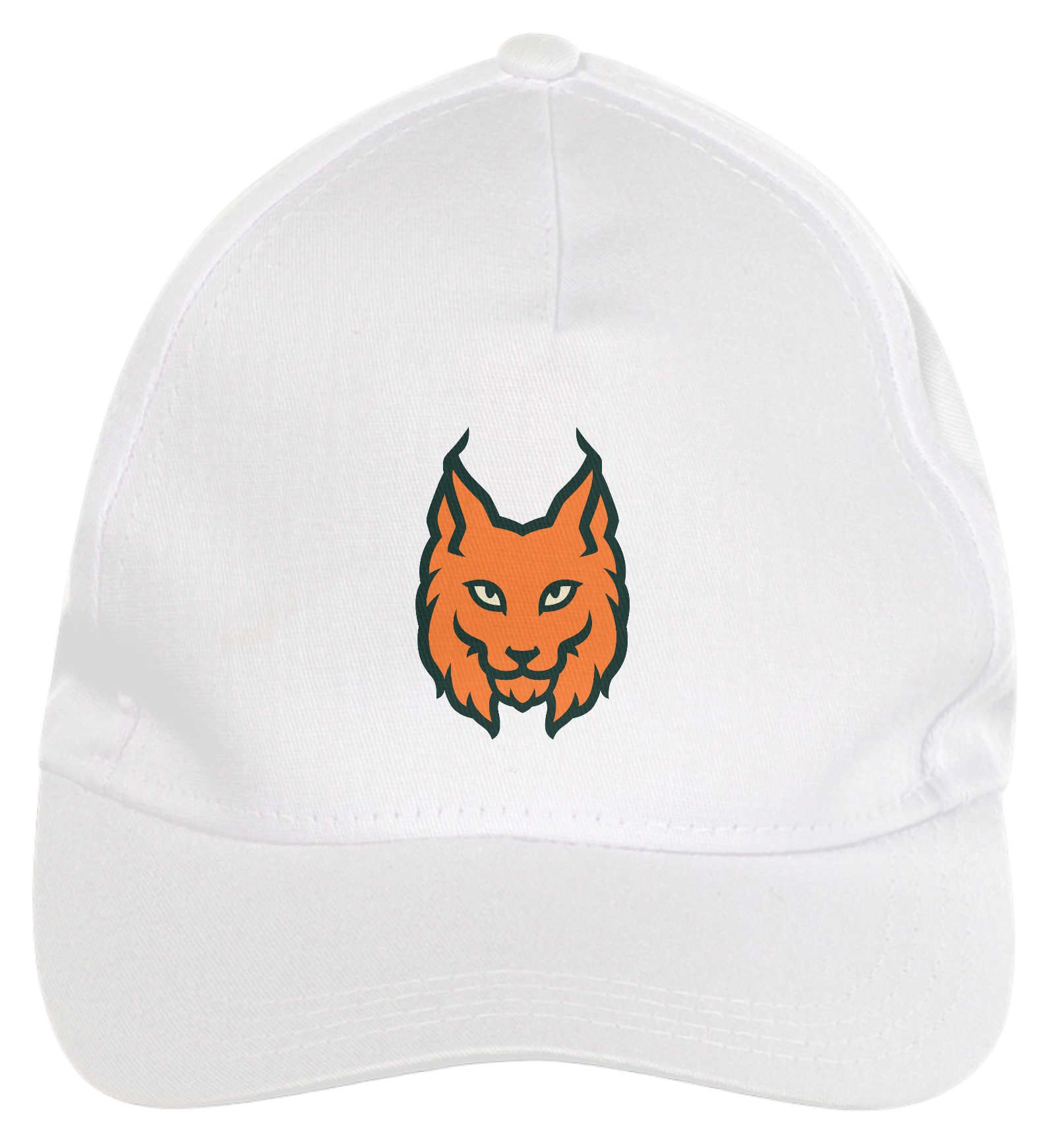 Boné americano com transfer frontal em alta qualidade, aba curva e fecho em tira totalmente regulável com pinos. O modelo veste tamanho "único".