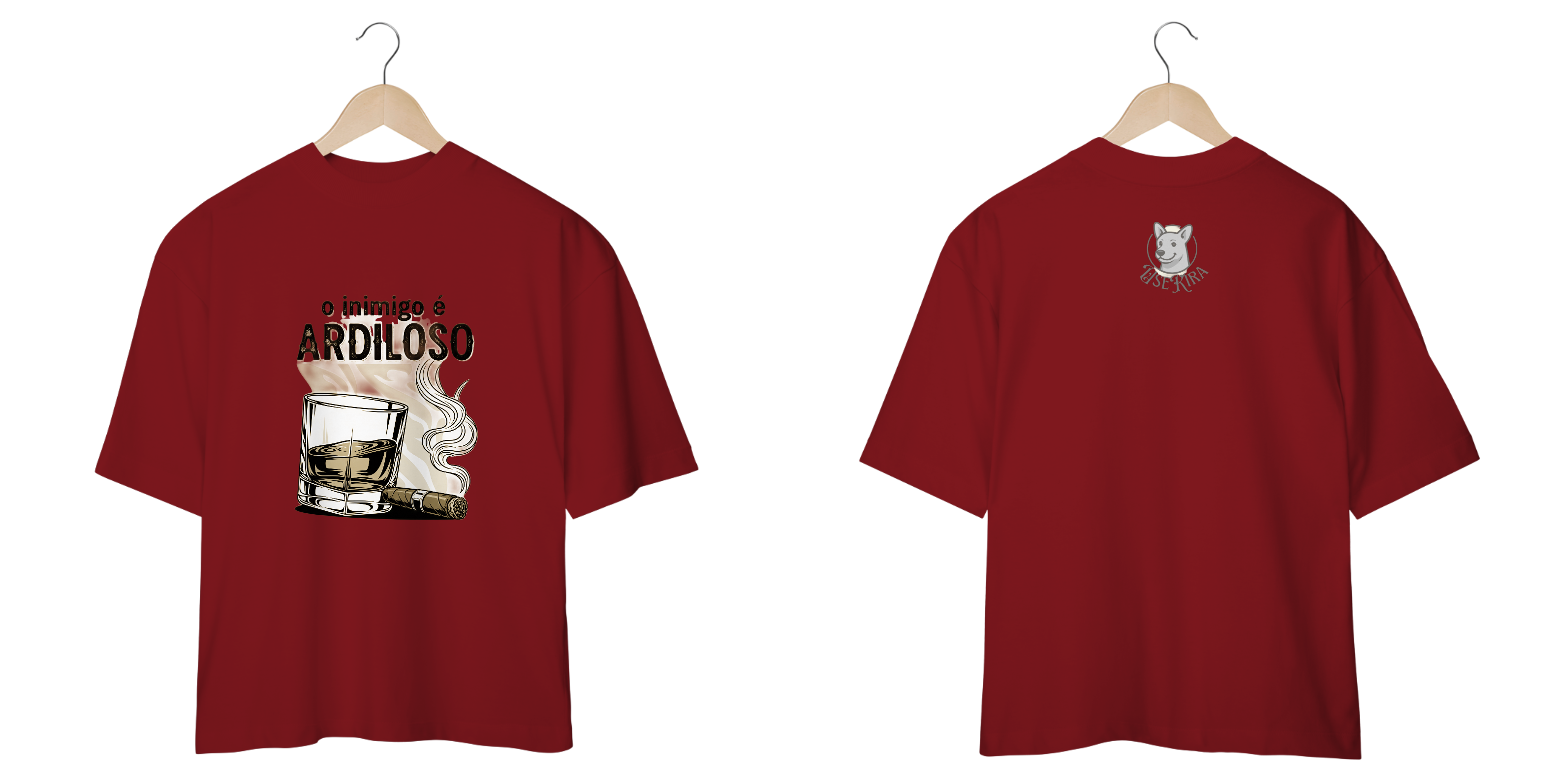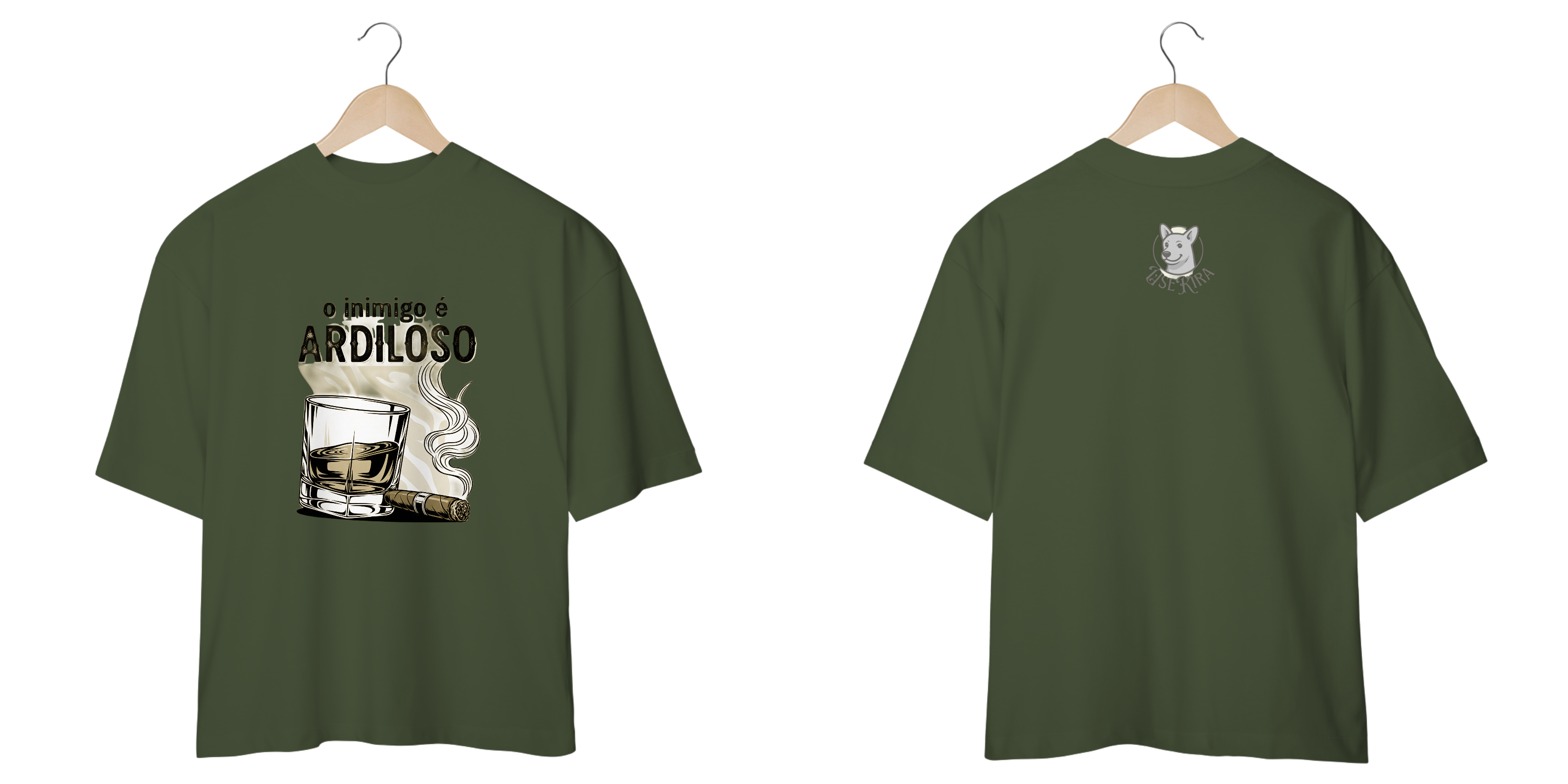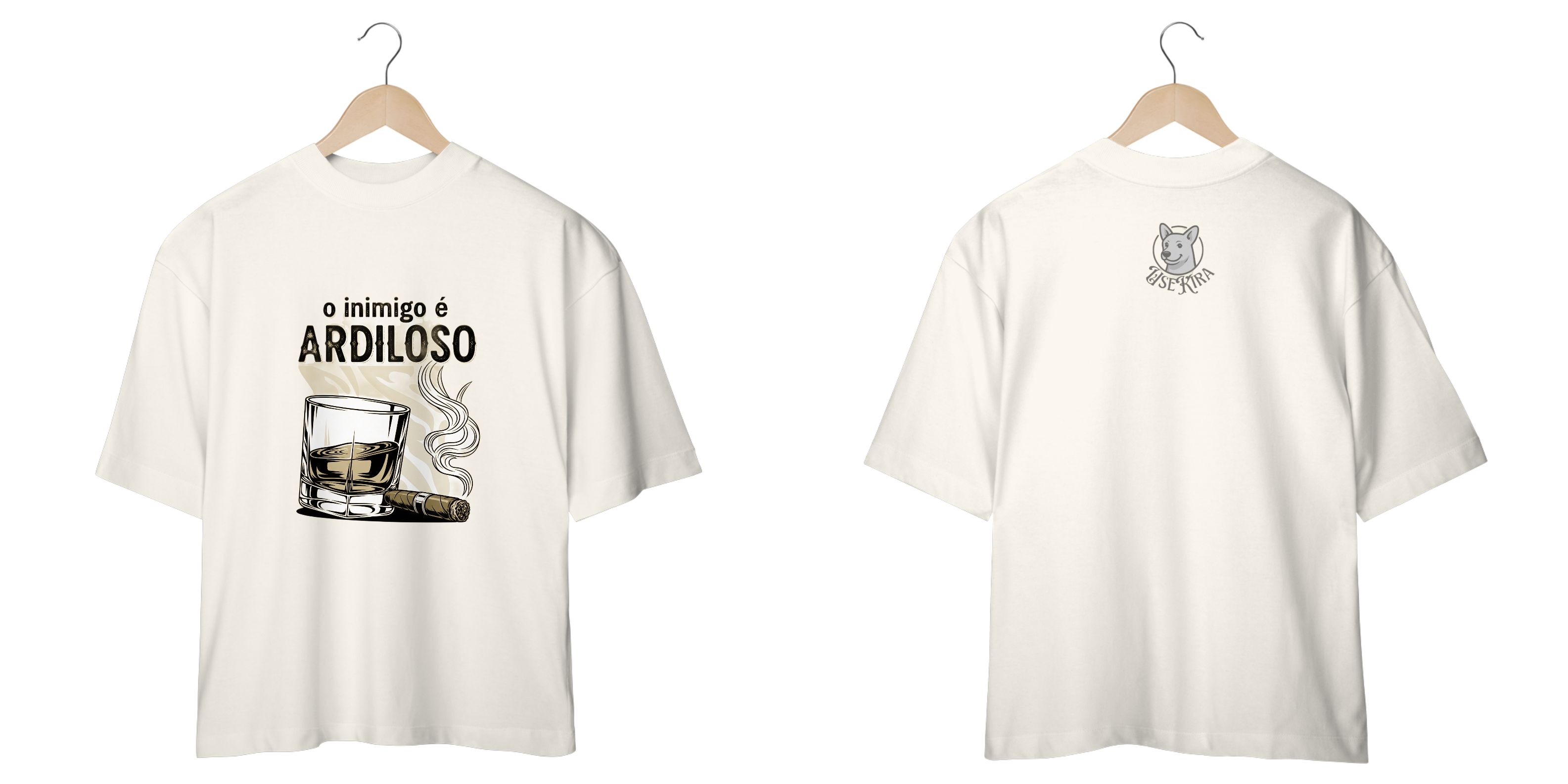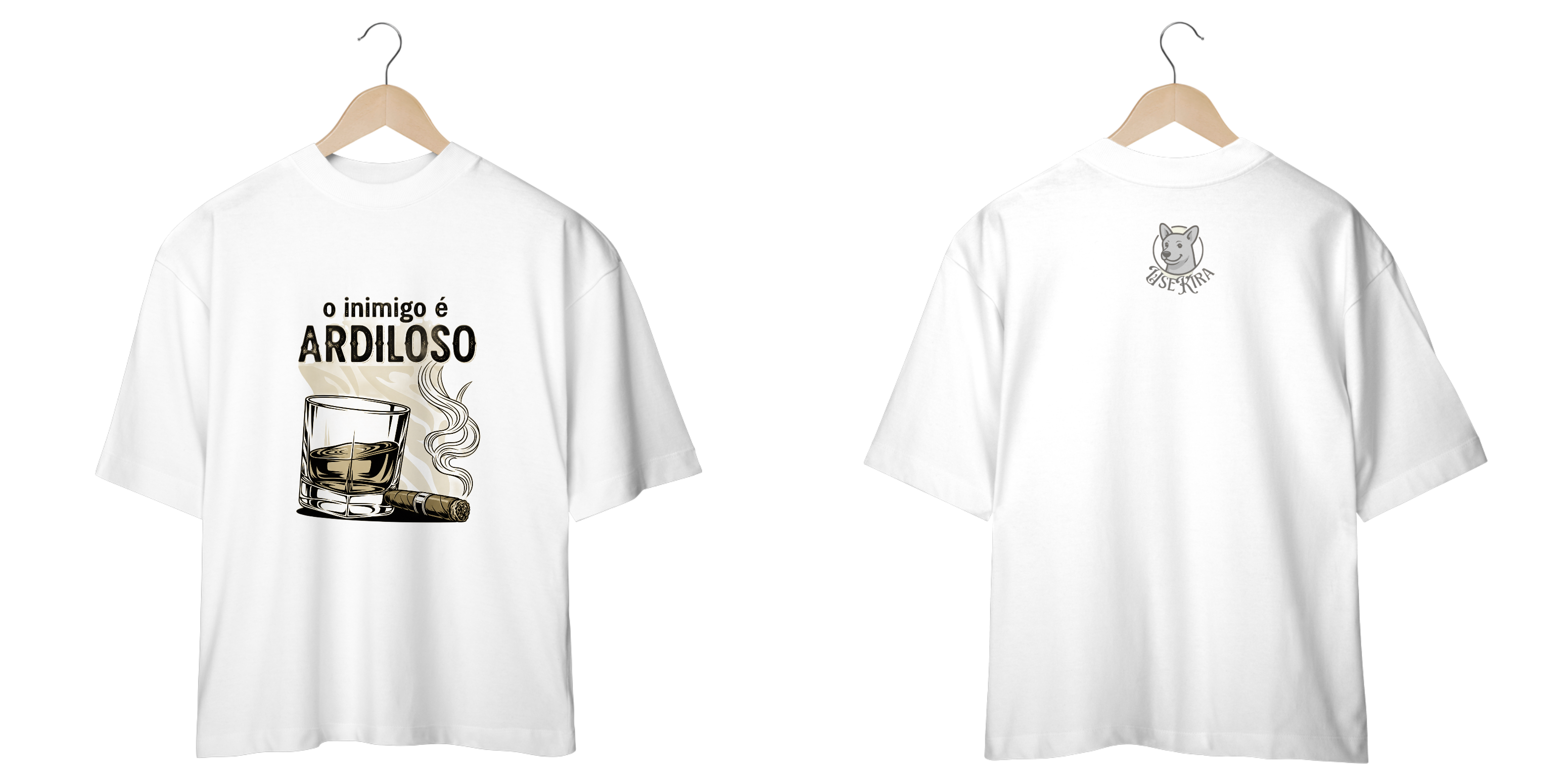 Esta camiseta exclusiva apresenta uma estampa vetorial em preto e branco que combina a intensidade da frase "O inimigo é ARDILOSO" com a sofisticação atemporal do whisky e do charuto.