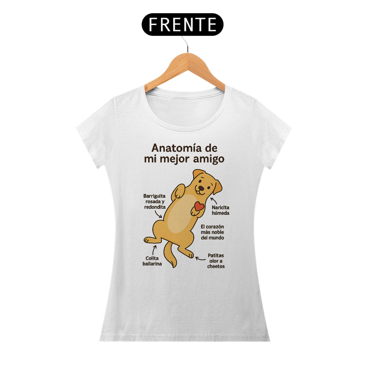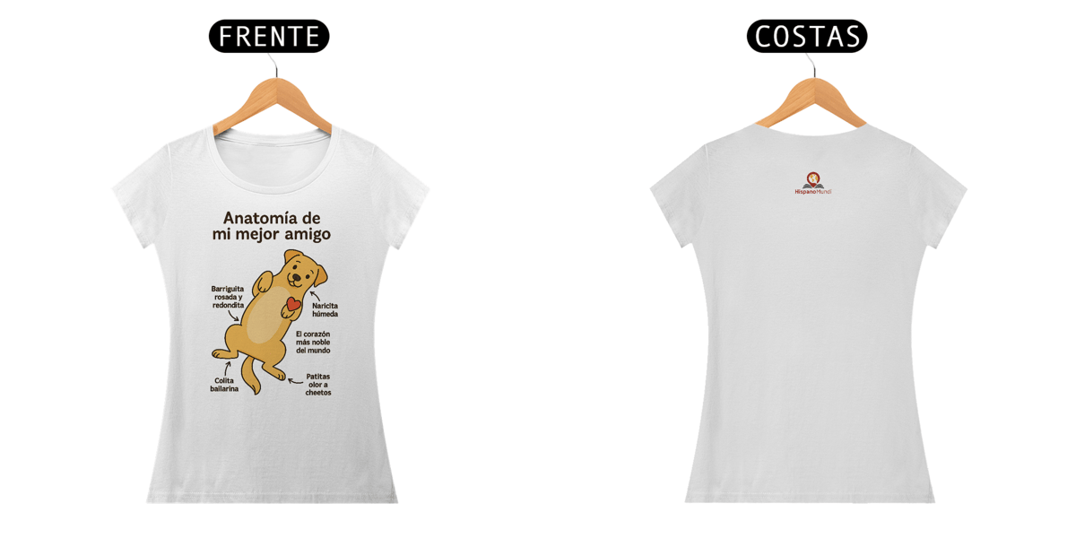 Um tributo divertido e cheio de carinho aos nossos companheiros mais leais. A camiseta “Anatomía De Mi Mejor Amigo” celebra o amor incondicional dos cachorros com uma ilustração fofa e descrições que arrancam sorrisos — da barriguinha rosada à patinha com cheiro de cheetos.