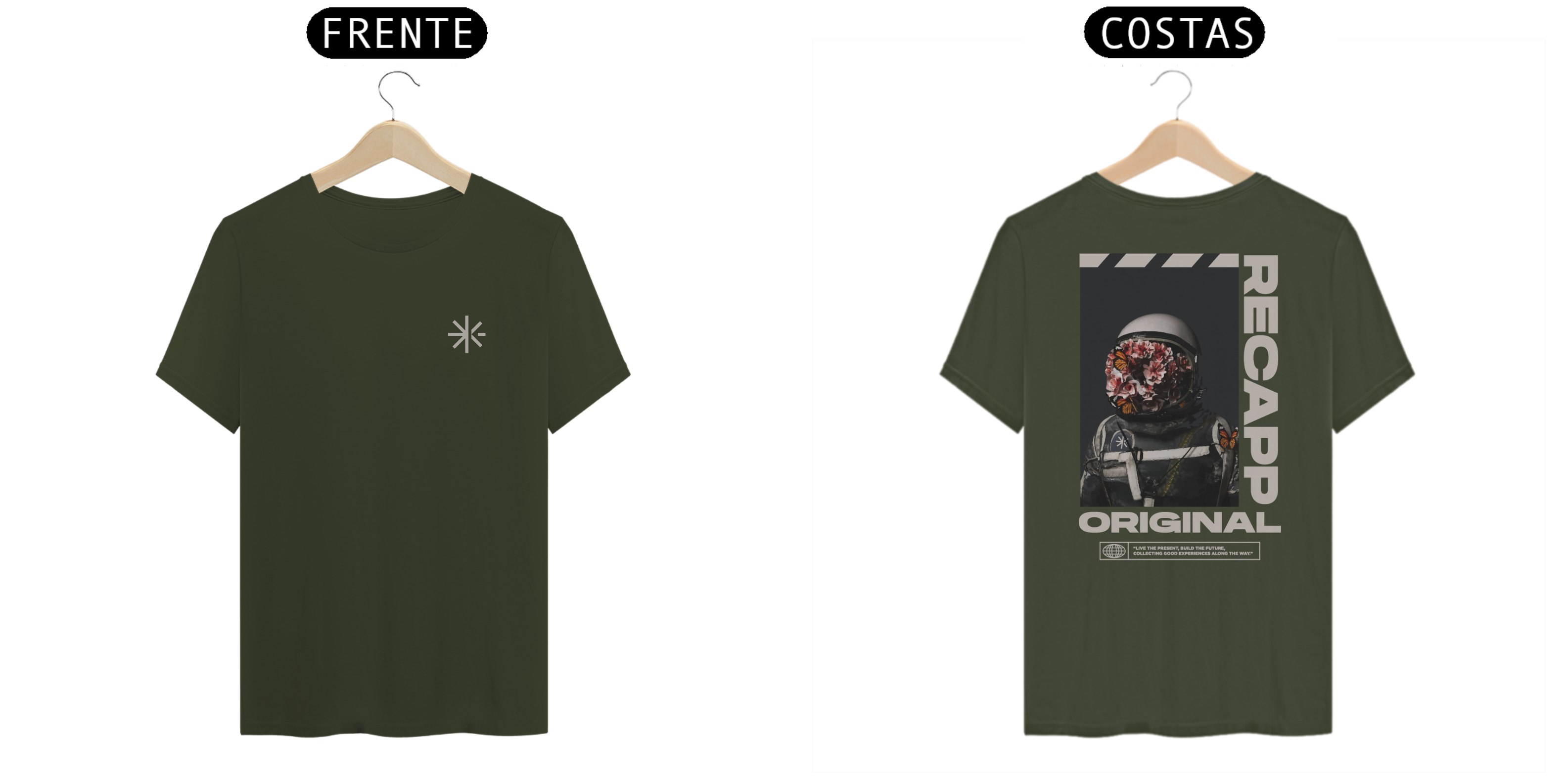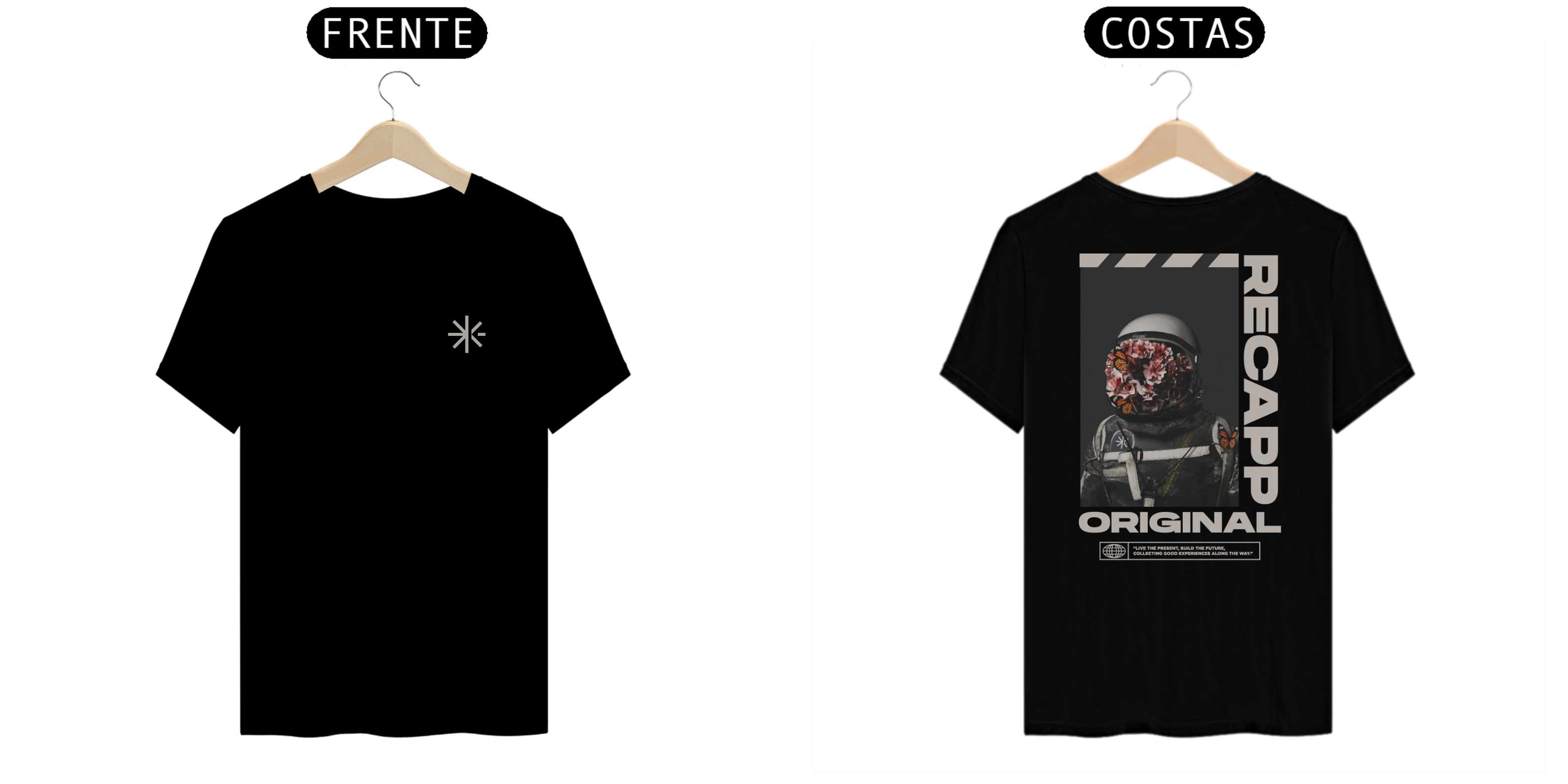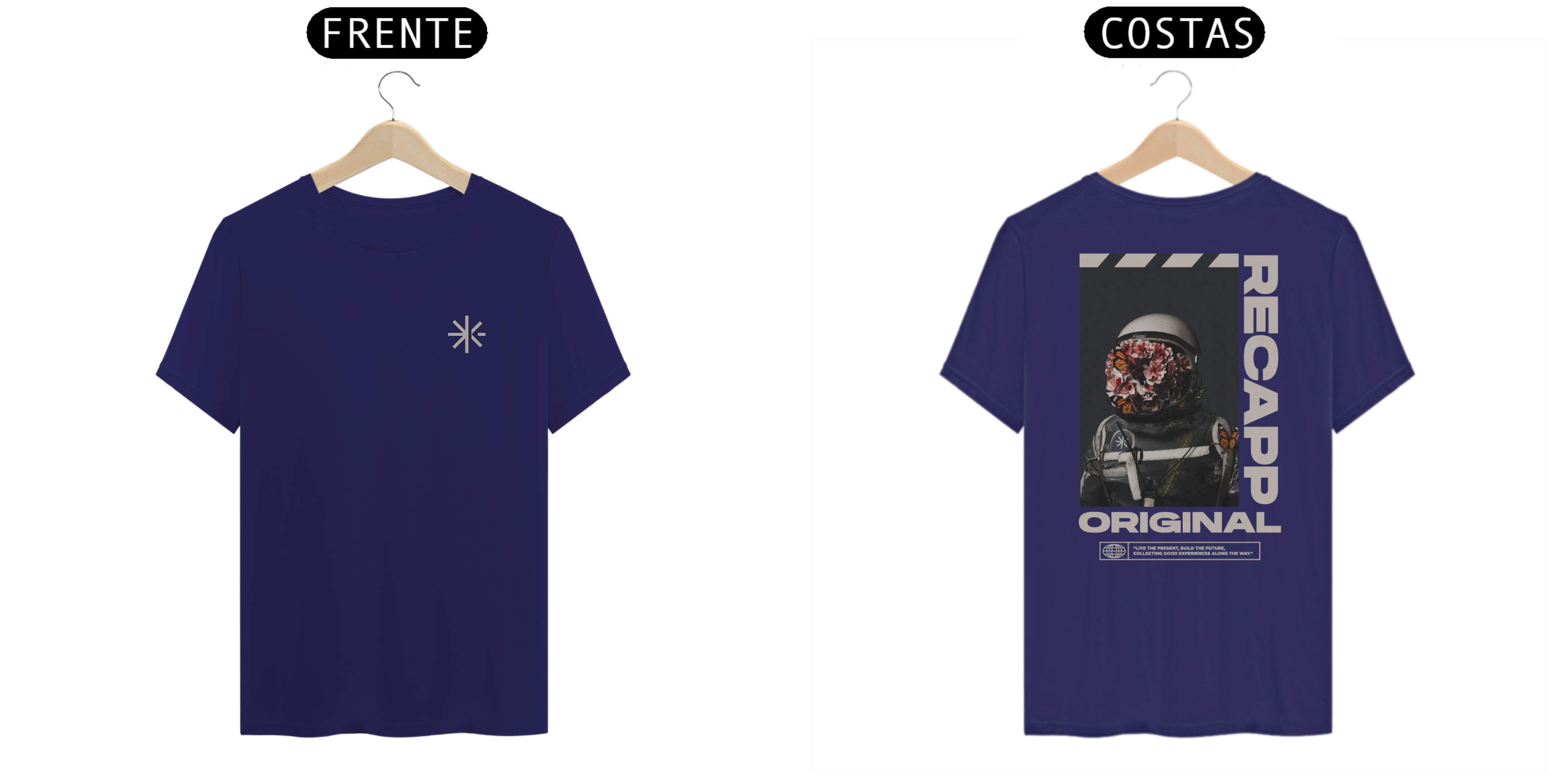 Recapp Space Flowers – Florescendo pelo universo: Somos viajantes no tempo, exploradores do desconhecido. A estampa “Space Flowers” representa essa jornada cósmica, onde o astronauta carrega no capacete não apenas tecnologia, mas também vida, evolução e experiências.