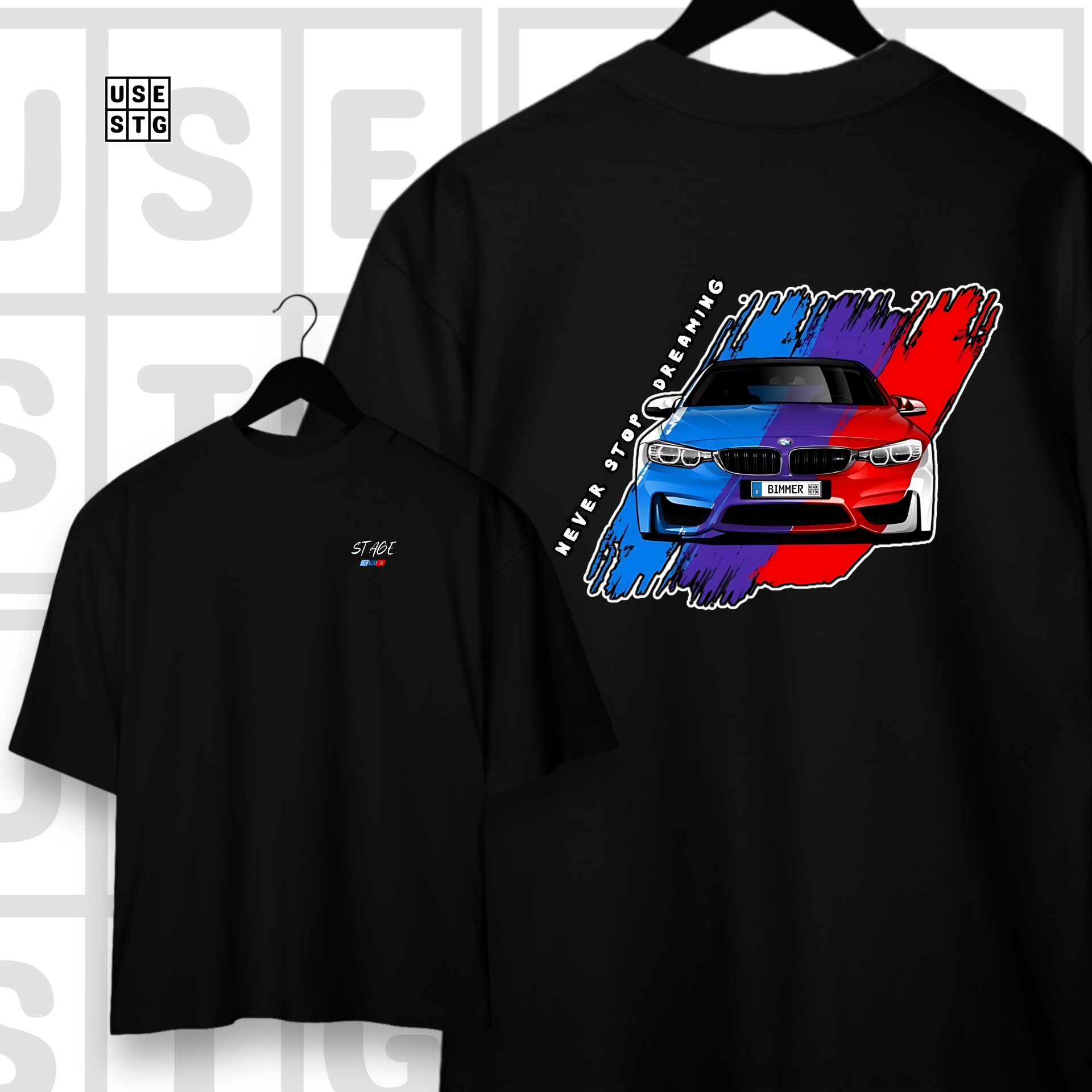 Descubra o toque especial de nossas camisetas oversized STAGE, desenhadas exclusivamente para quem vive e respira o universo automotivo.